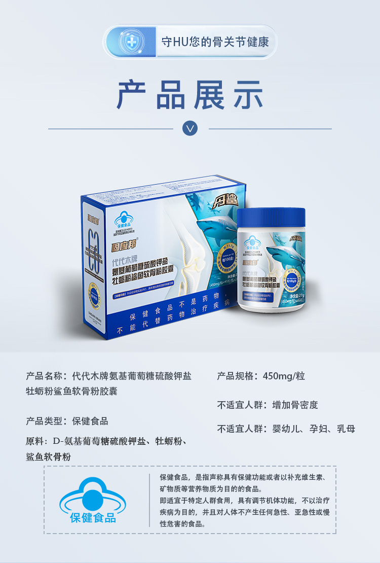 代代木牌 氨基葡萄糖硫酸钾盐牡蛎粉鲨鱼软骨粉胶囊40.5g (450mg/粒x45粒/瓶x2瓶)