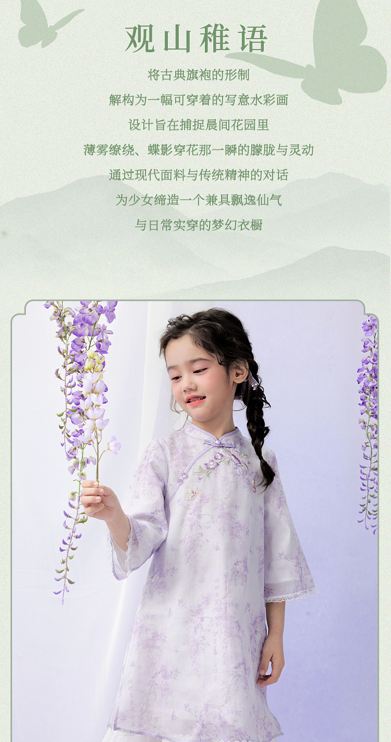 笛莎/Deesha 观山见联名2026年春季新款女童国风连衣裙