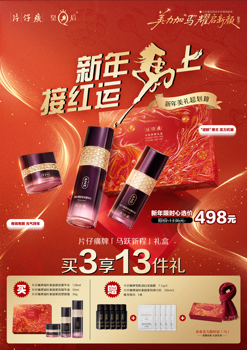 片仔癀 马跃新程礼盒,凝时素颜系列,水乳霜,赠泥膜,弹力乳,送围巾 13件套
