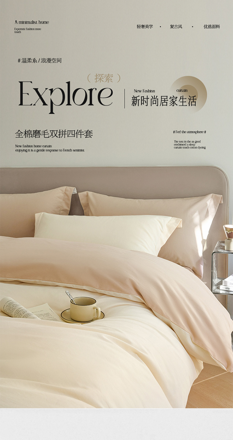 【全棉磨毛双拼四件套】全棉磨毛四件套秋冬厚款纯棉床品件套双拼标准床单款 良品
