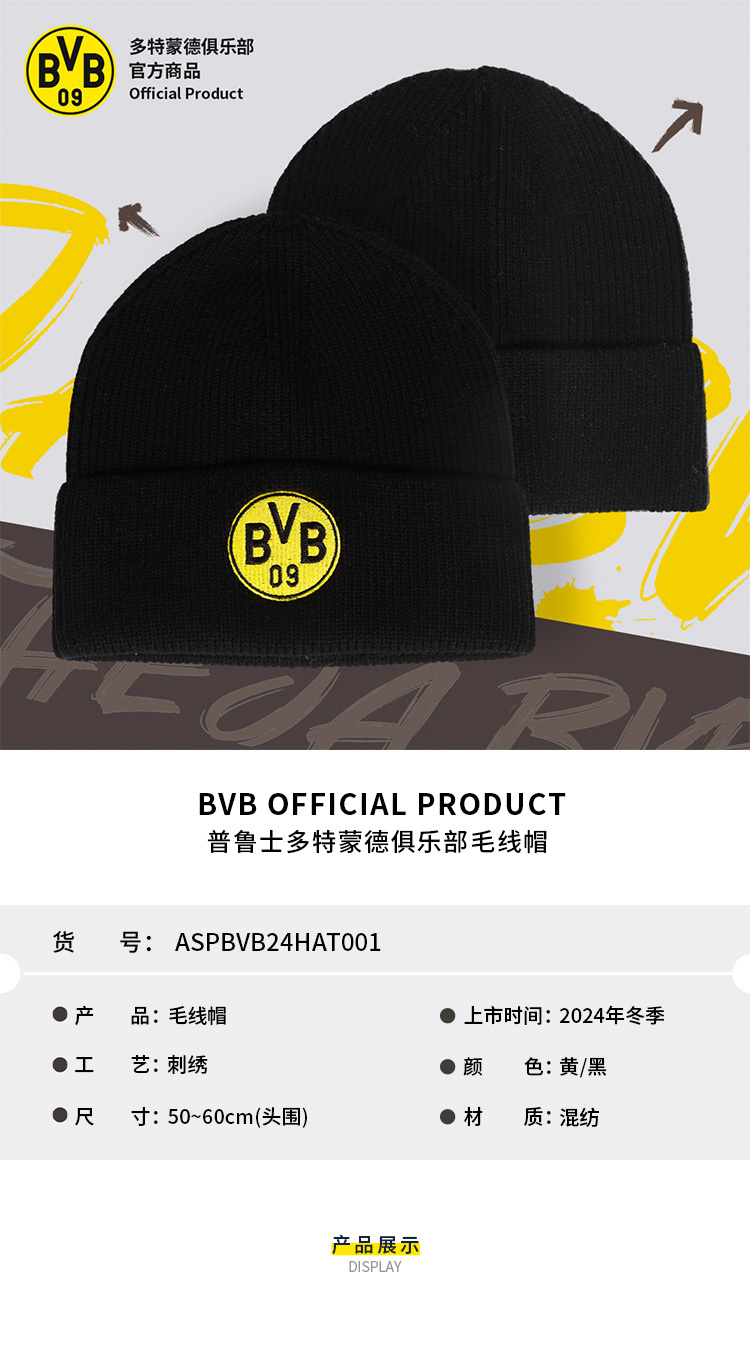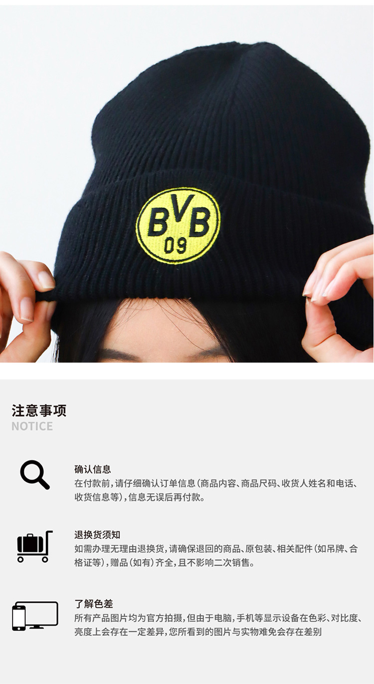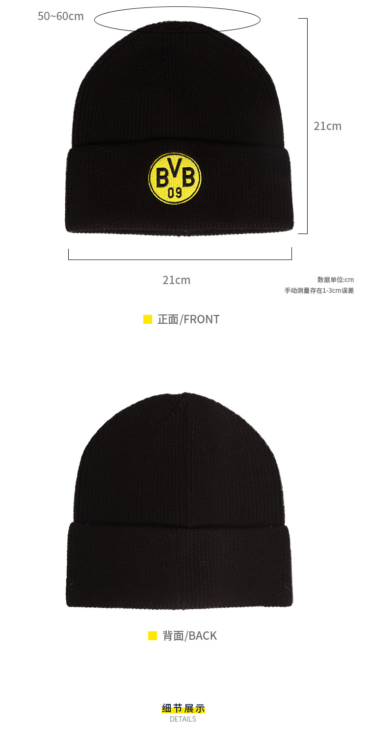 【官方正版】多特蒙德足球俱乐部|BVB黑毛线帽球迷秋冬保暖帽