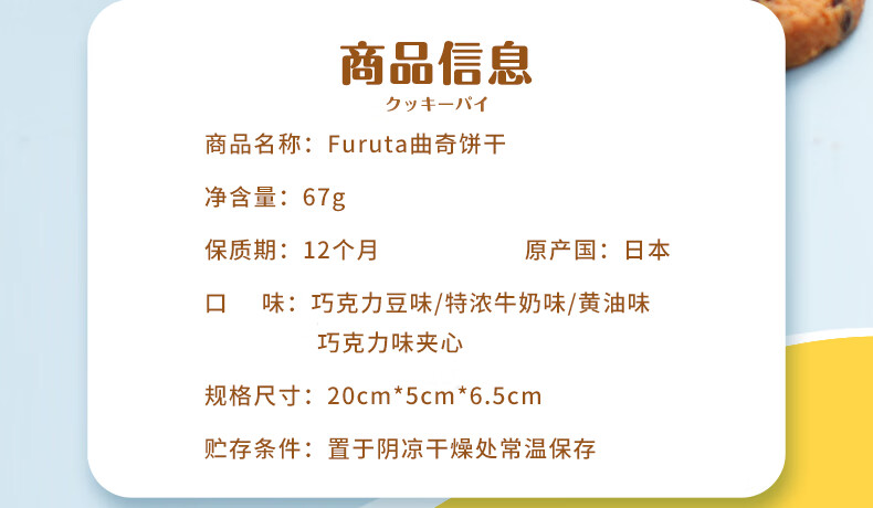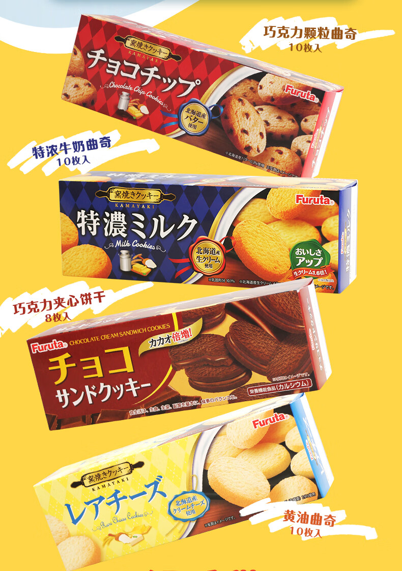 Furuta特浓牛奶味/代可可脂巧克力豆/黄油味饼干67g/151197/151198/151199 丝滑香甜 酥脆可口