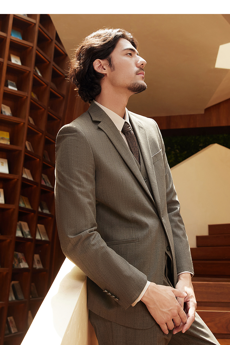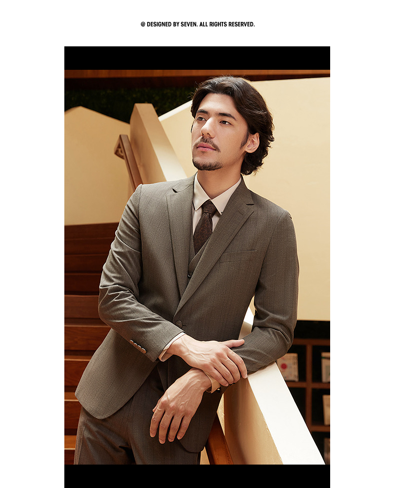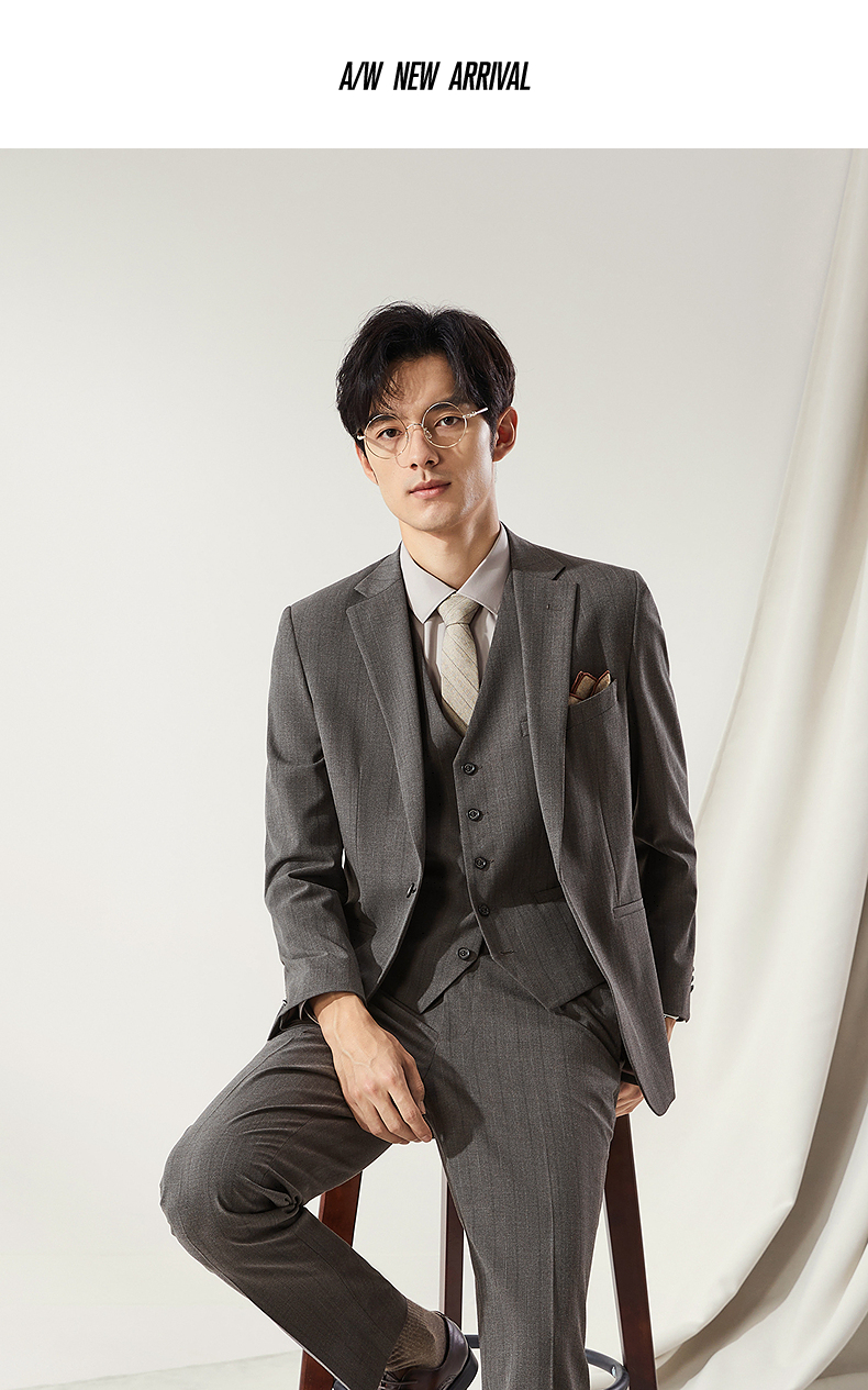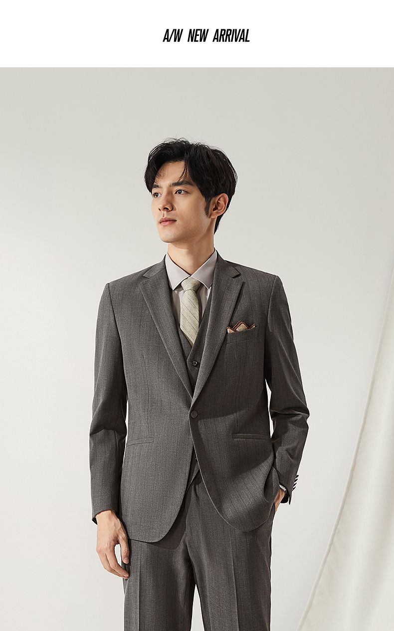 【高端系列】柒牌西装马甲三件套男秋冬新款商务百搭男士条纹礼服 127C70300