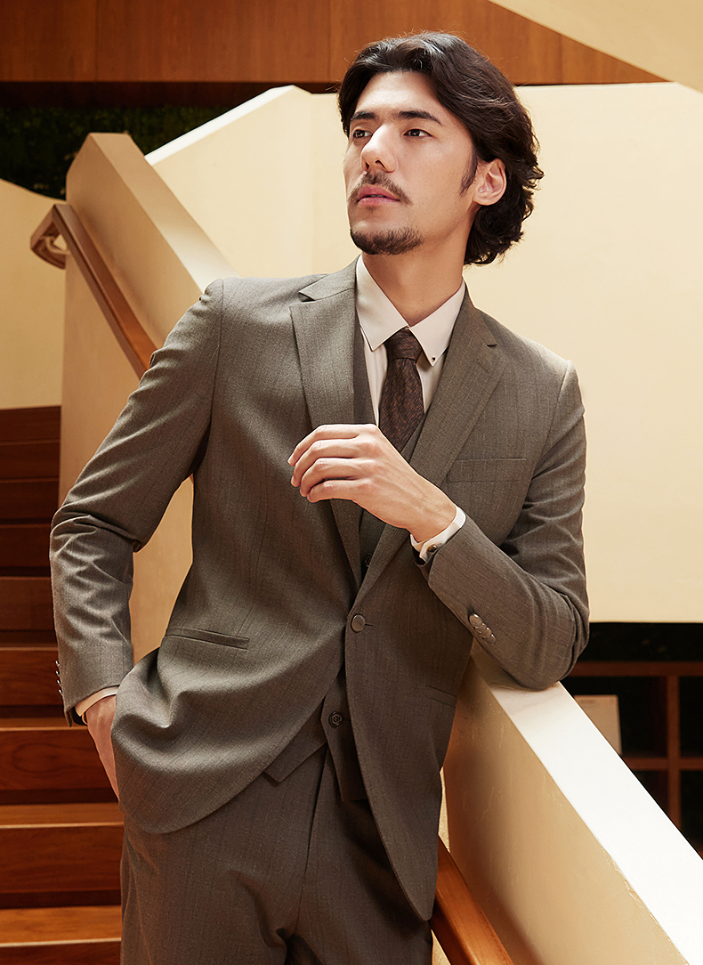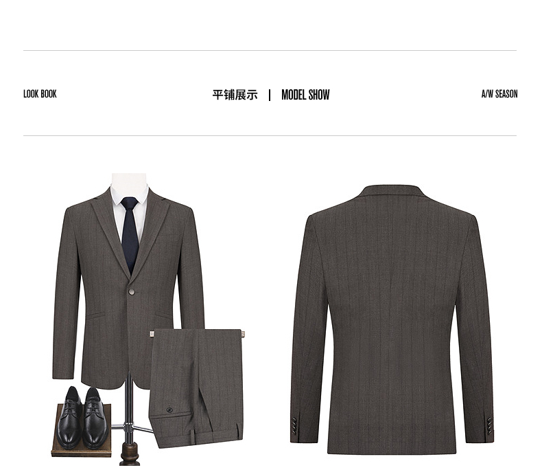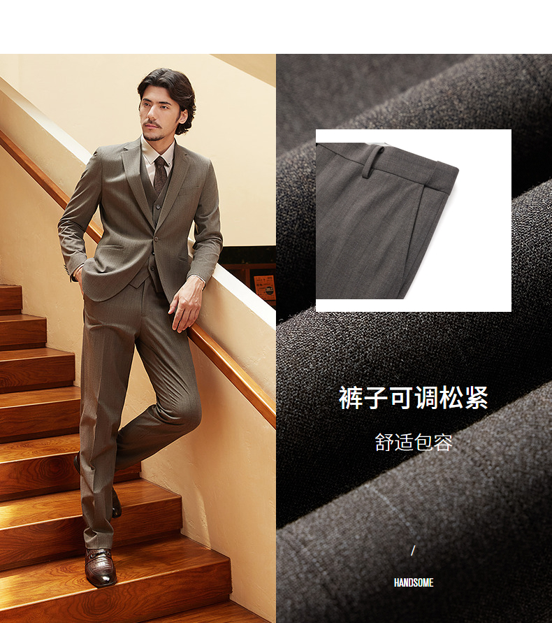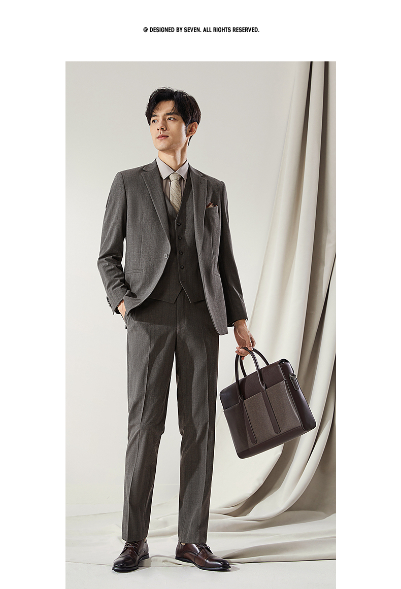 【高端系列】柒牌西装马甲三件套男秋冬新款商务百搭男士条纹礼服 127C70300