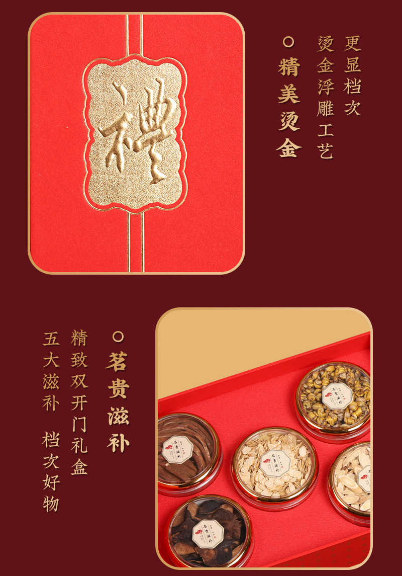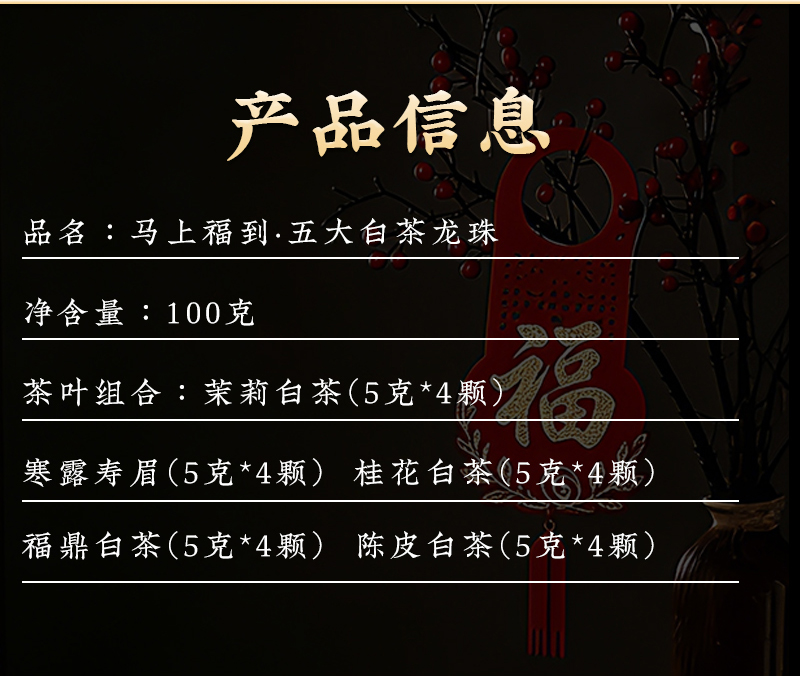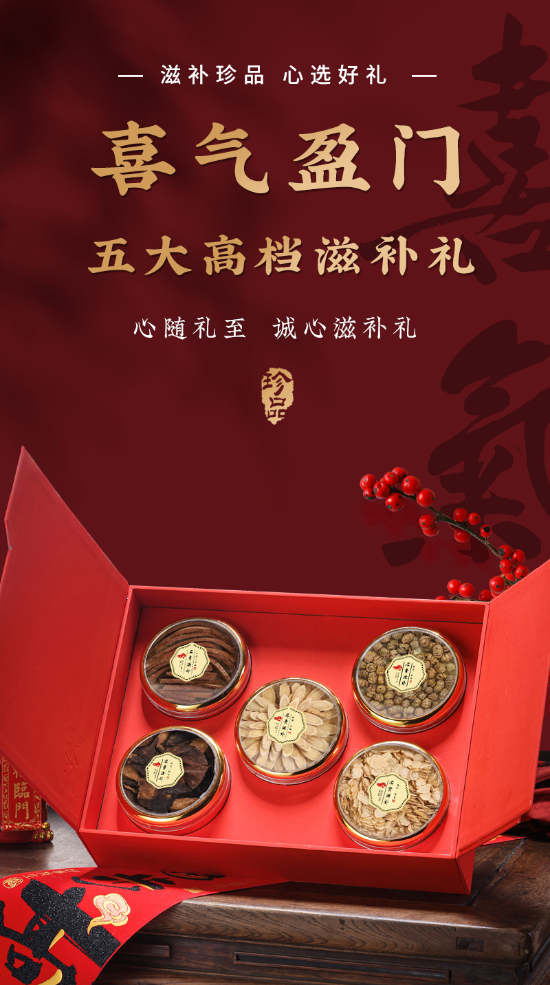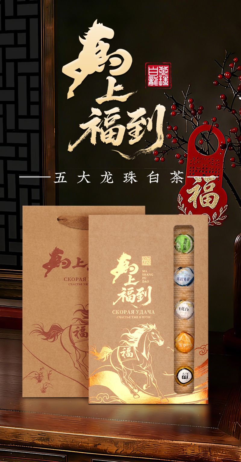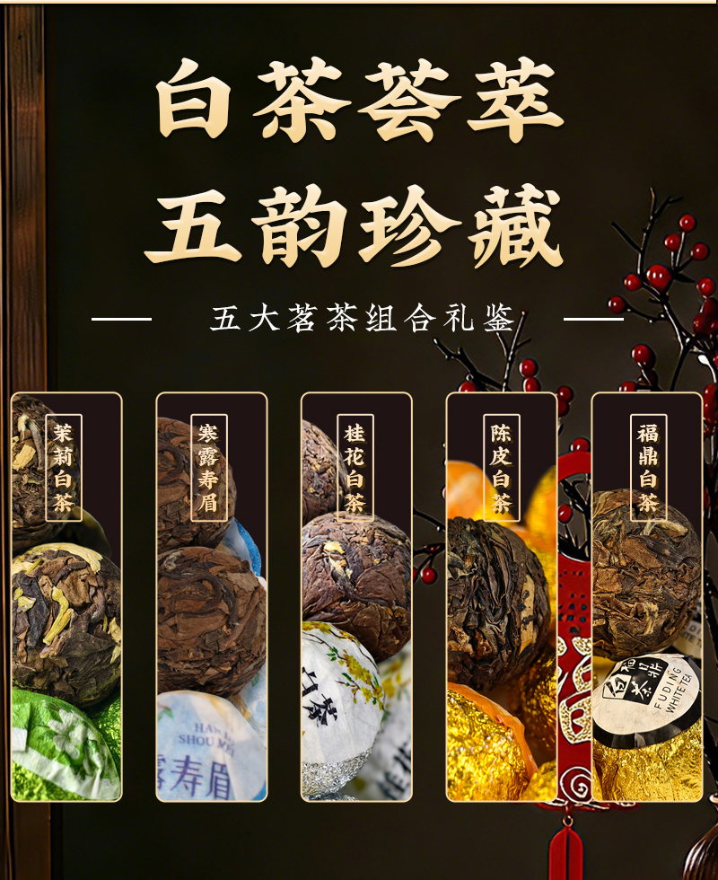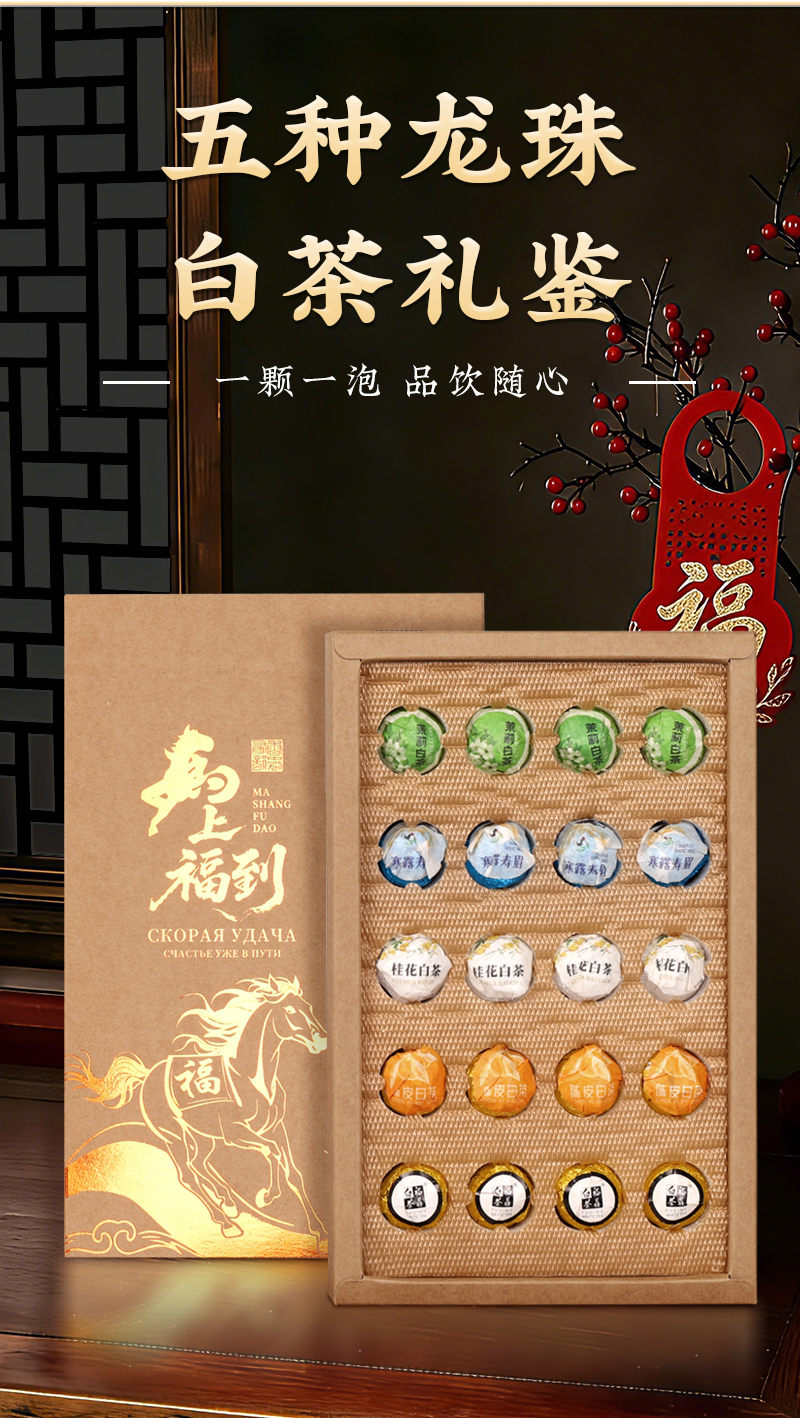 喜气五大茗补五宝礼盒+马上福到五大龙珠白茶 春节新年送礼佳品滋补养生礼盒