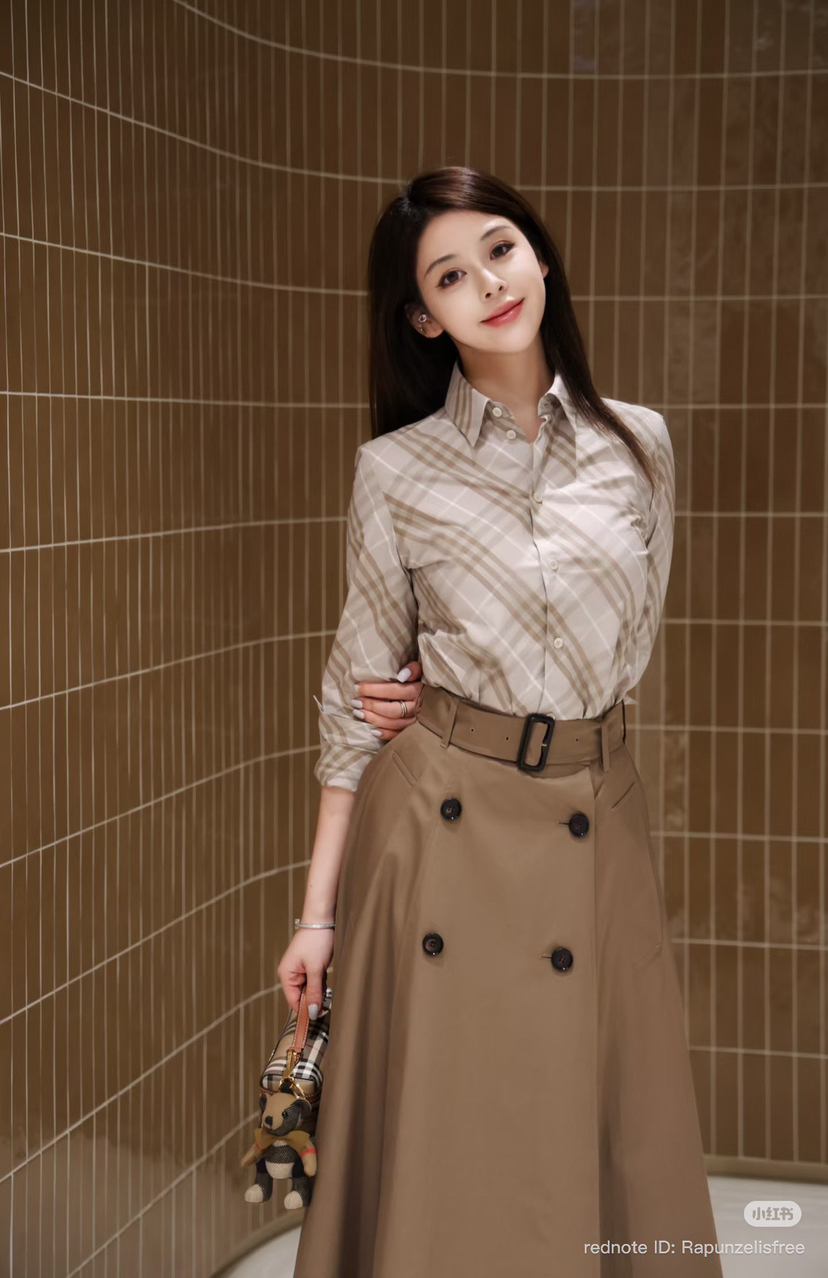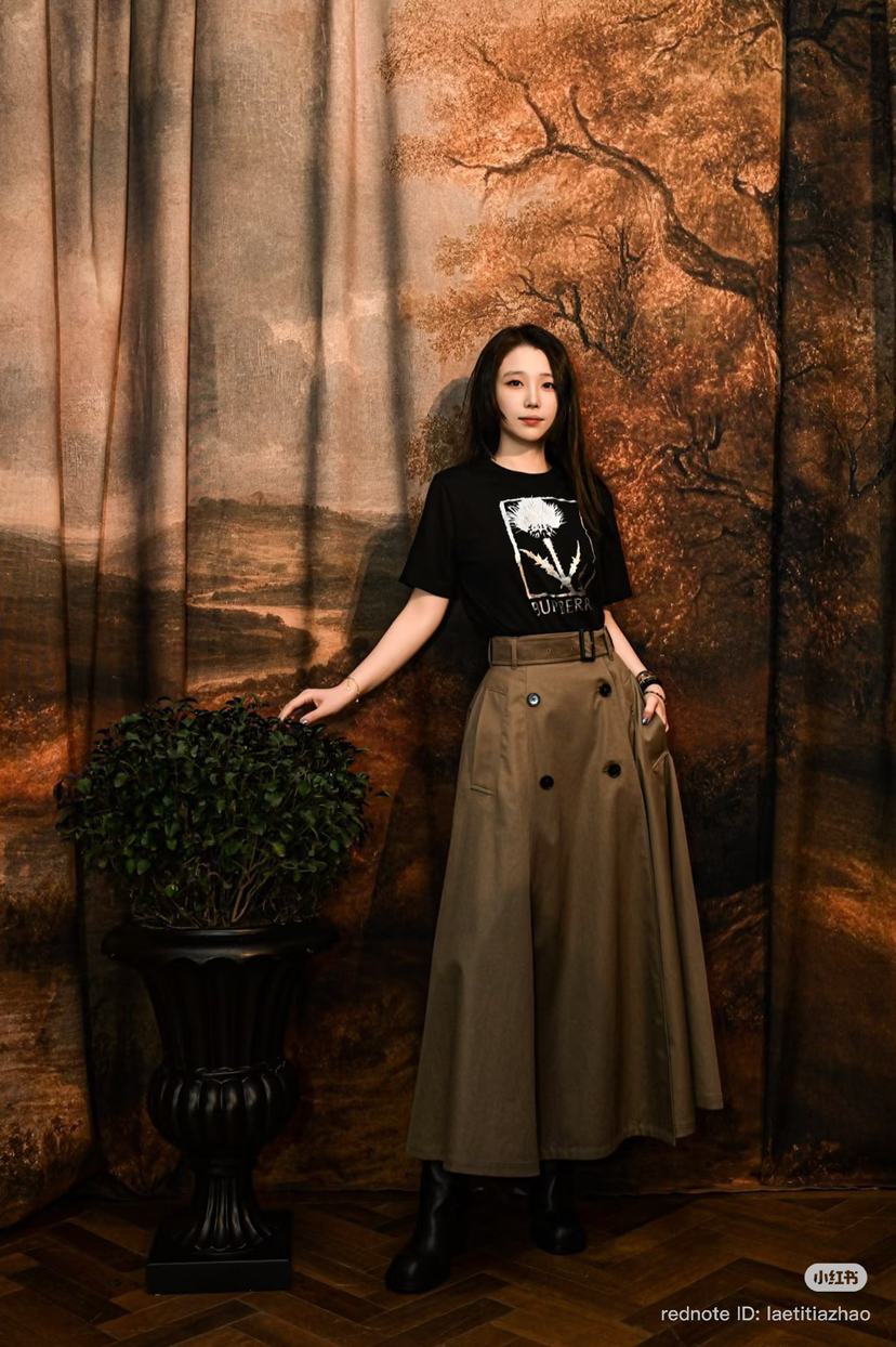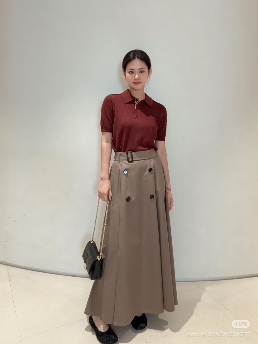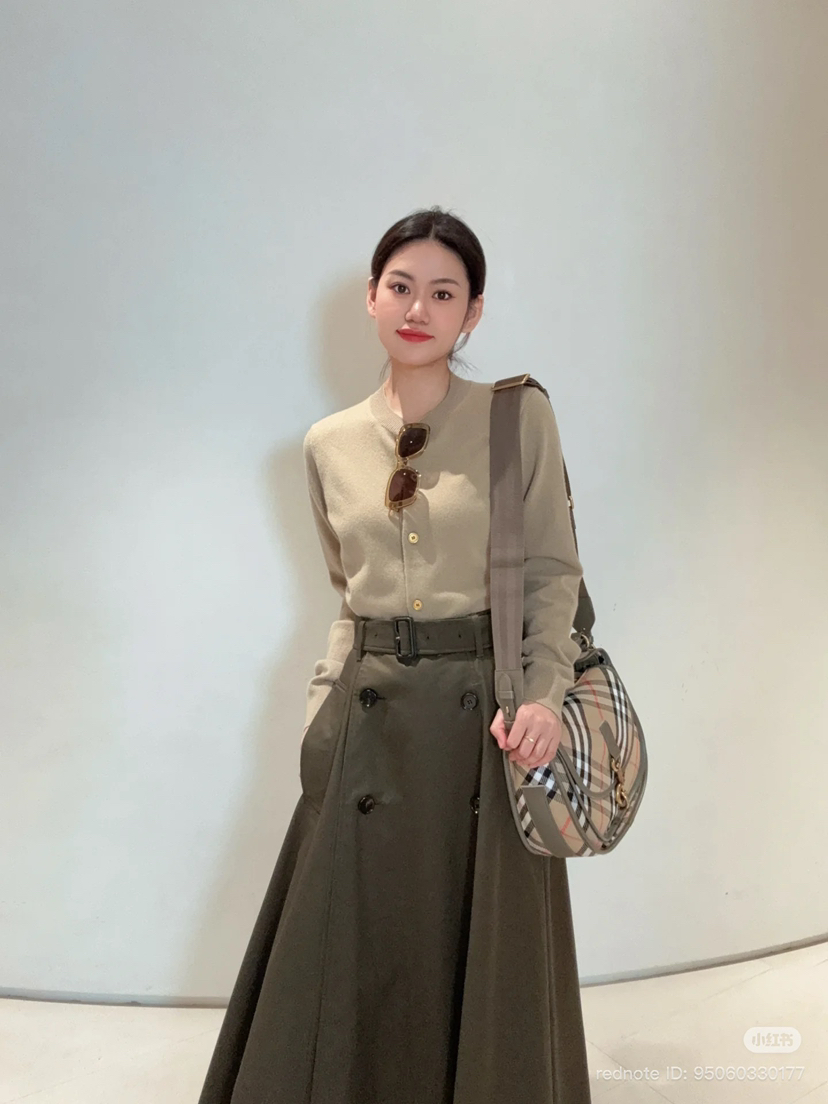 33-6 独家圆正 BBR高智感 半身长裙 嘎巴甸棉质 皮带扣风衣面料