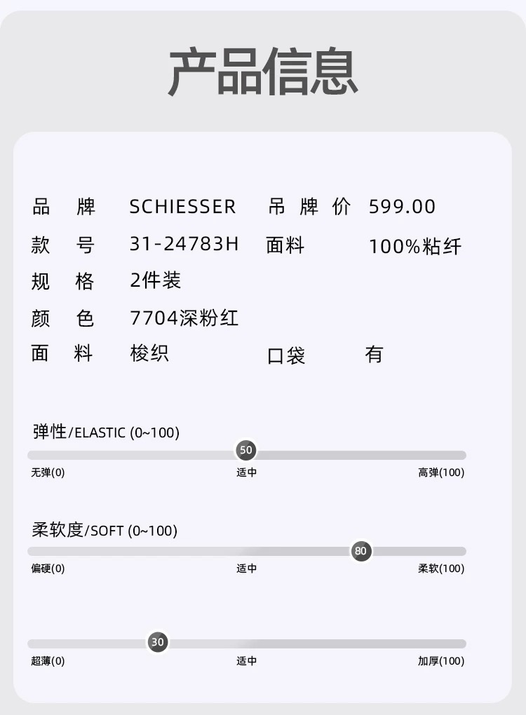 - 来自德国的SCHIESSER舒雅,专注做内衣一百四十余年,不遗余力的材料创新,因材而异的专业剪裁,健康环保的加工技术以及充满文化关注的时尚主题,做你认识之外的舒适内衣。