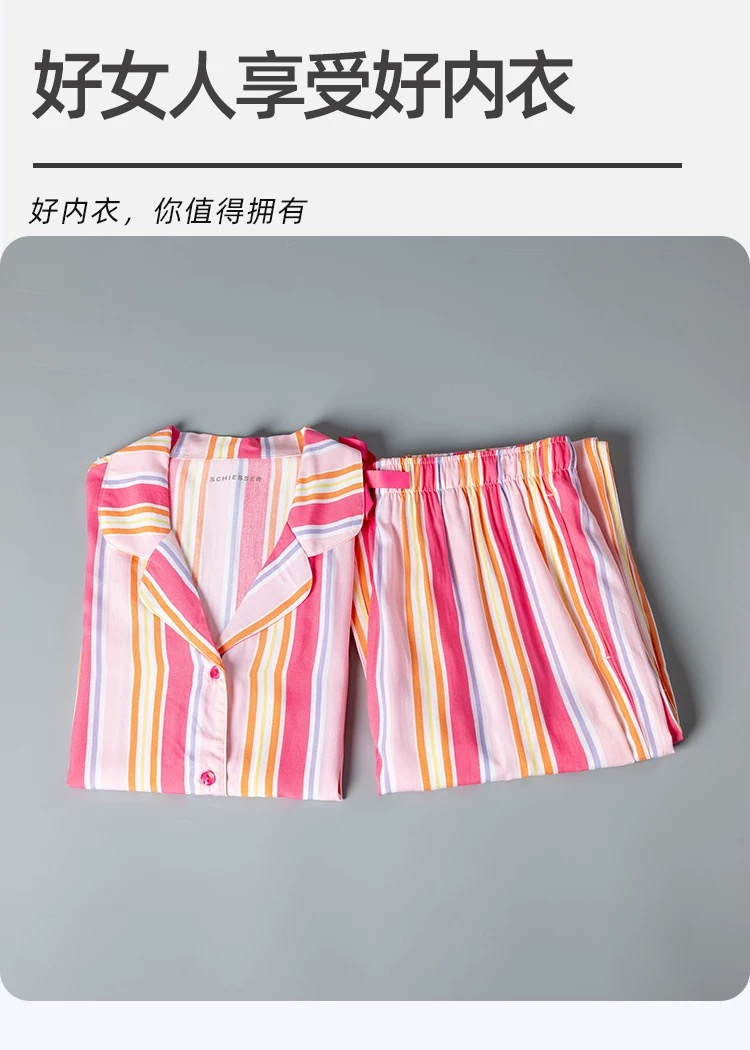【粘纤梭织】SCHIESSER德国舒雅女士七分袖100%粘纤梭织套装31/24783H