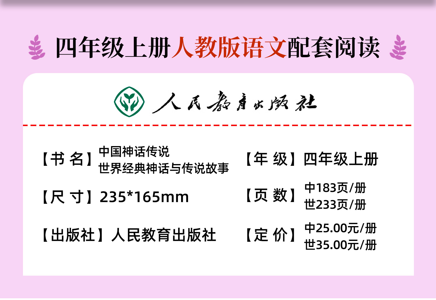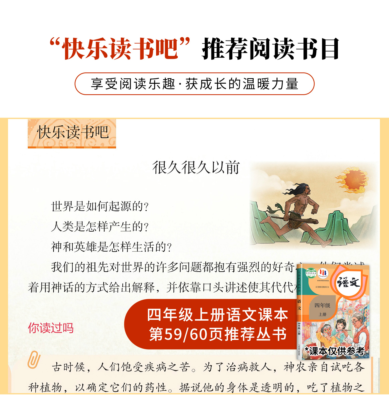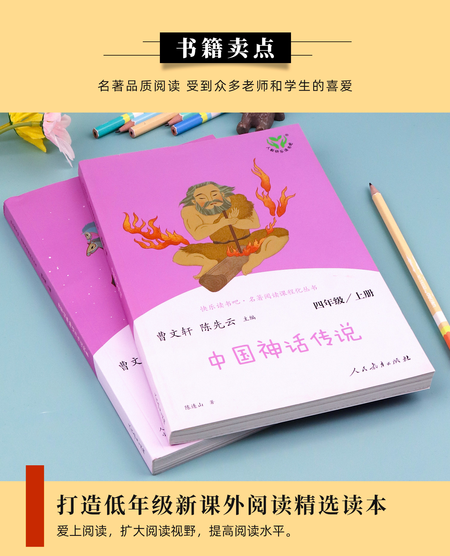 中国古代神话传说四年级上册阅读课外书必读全套快乐读书吧 人教版和世界经典神话与传说故事上下册 人民教育出版社 曹文轩的书籍