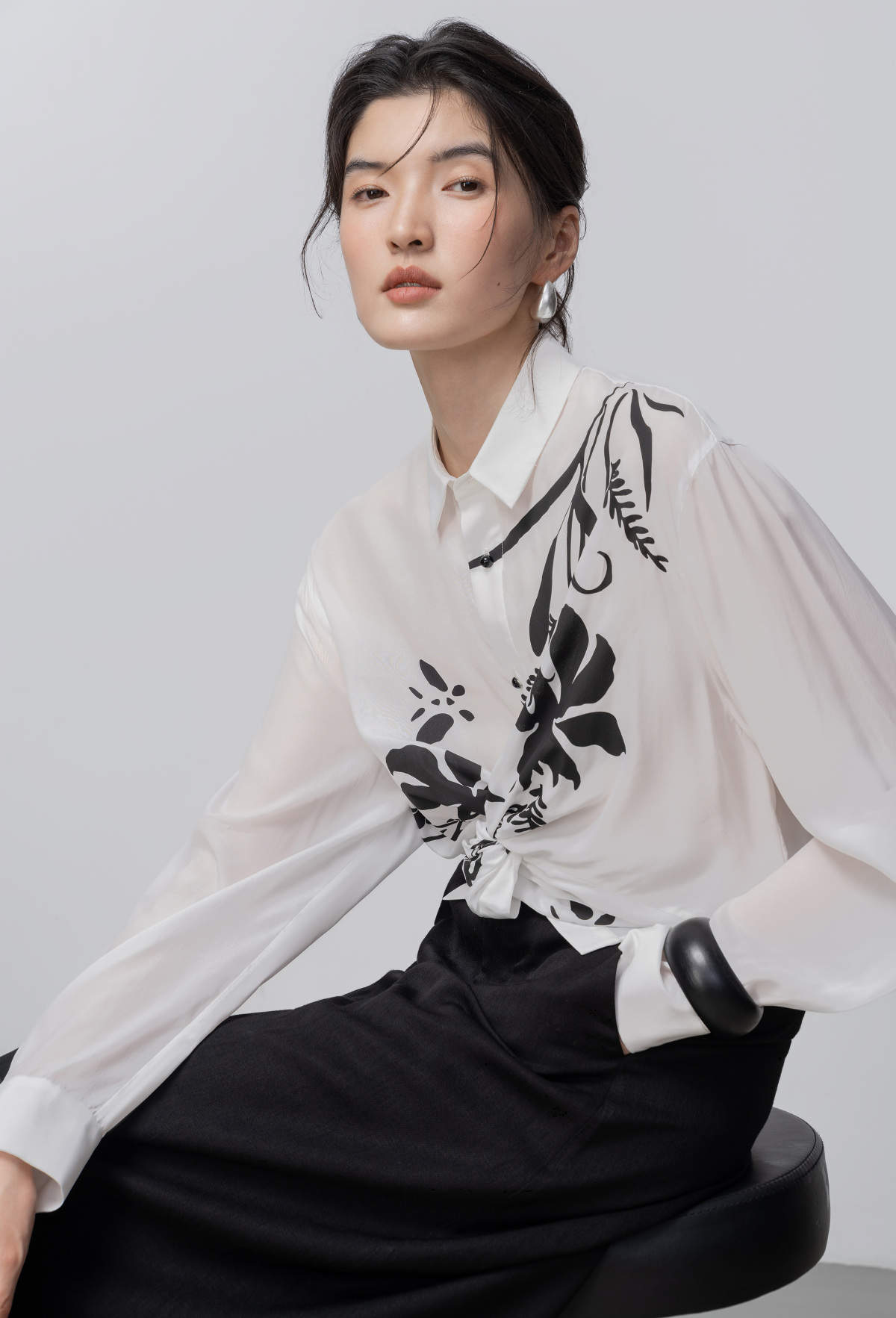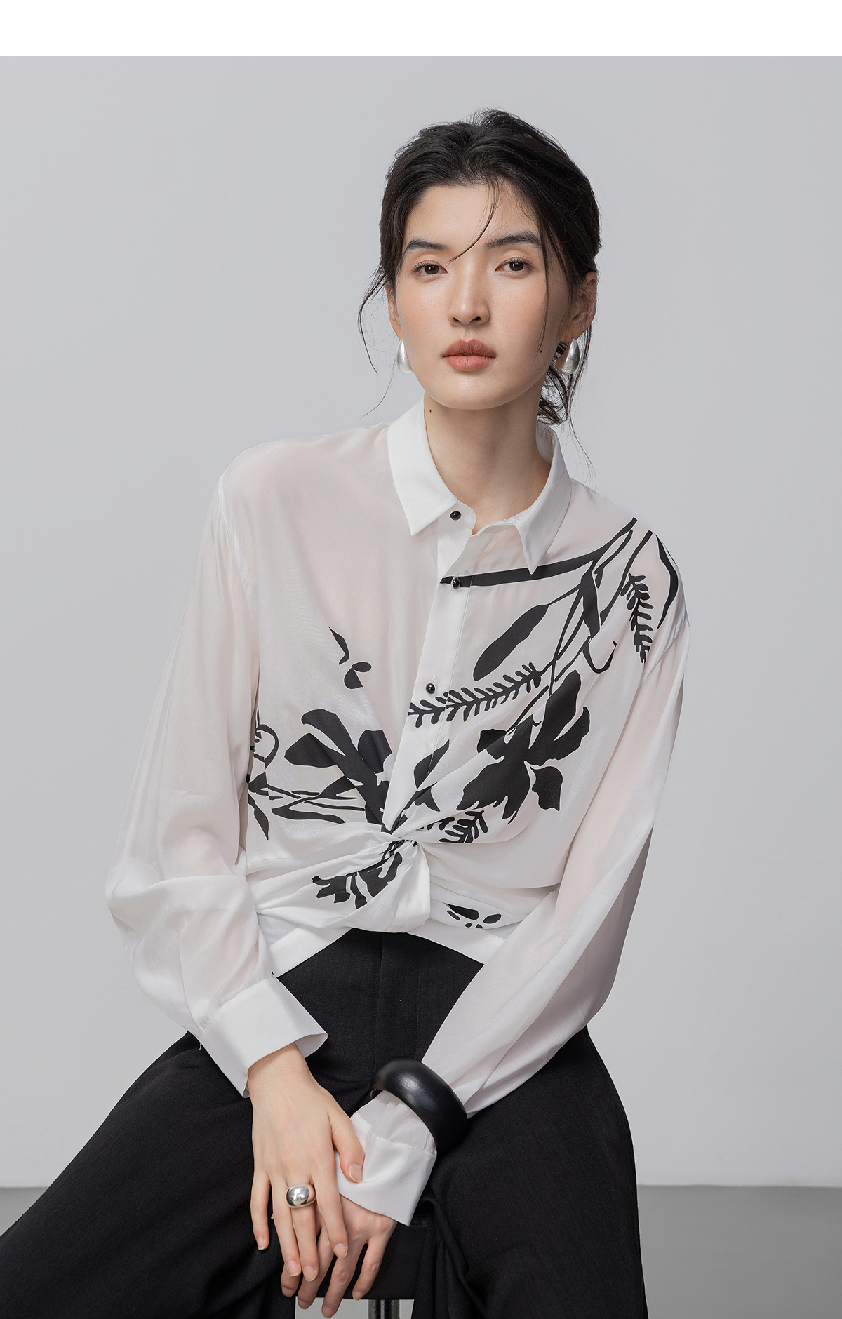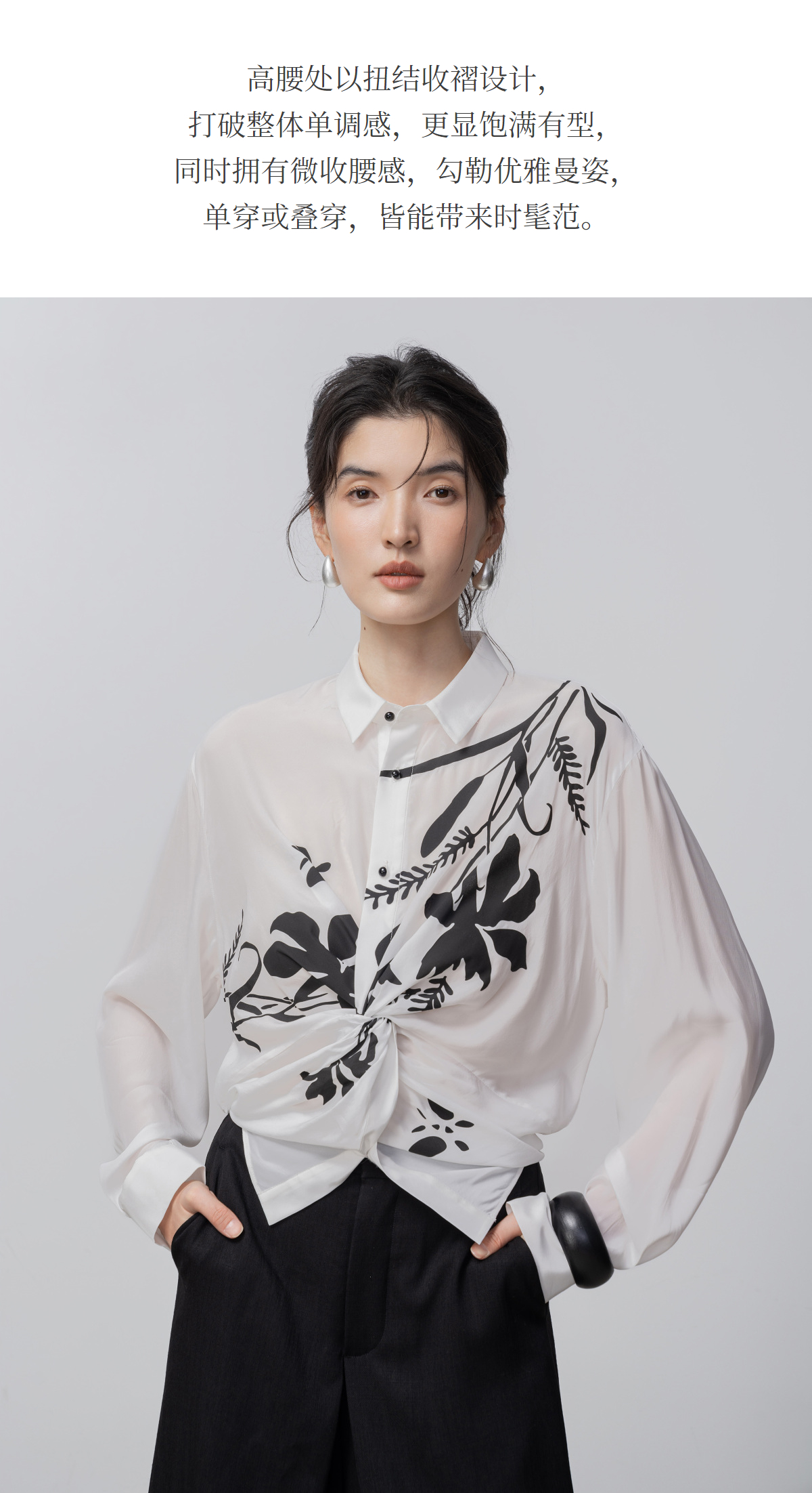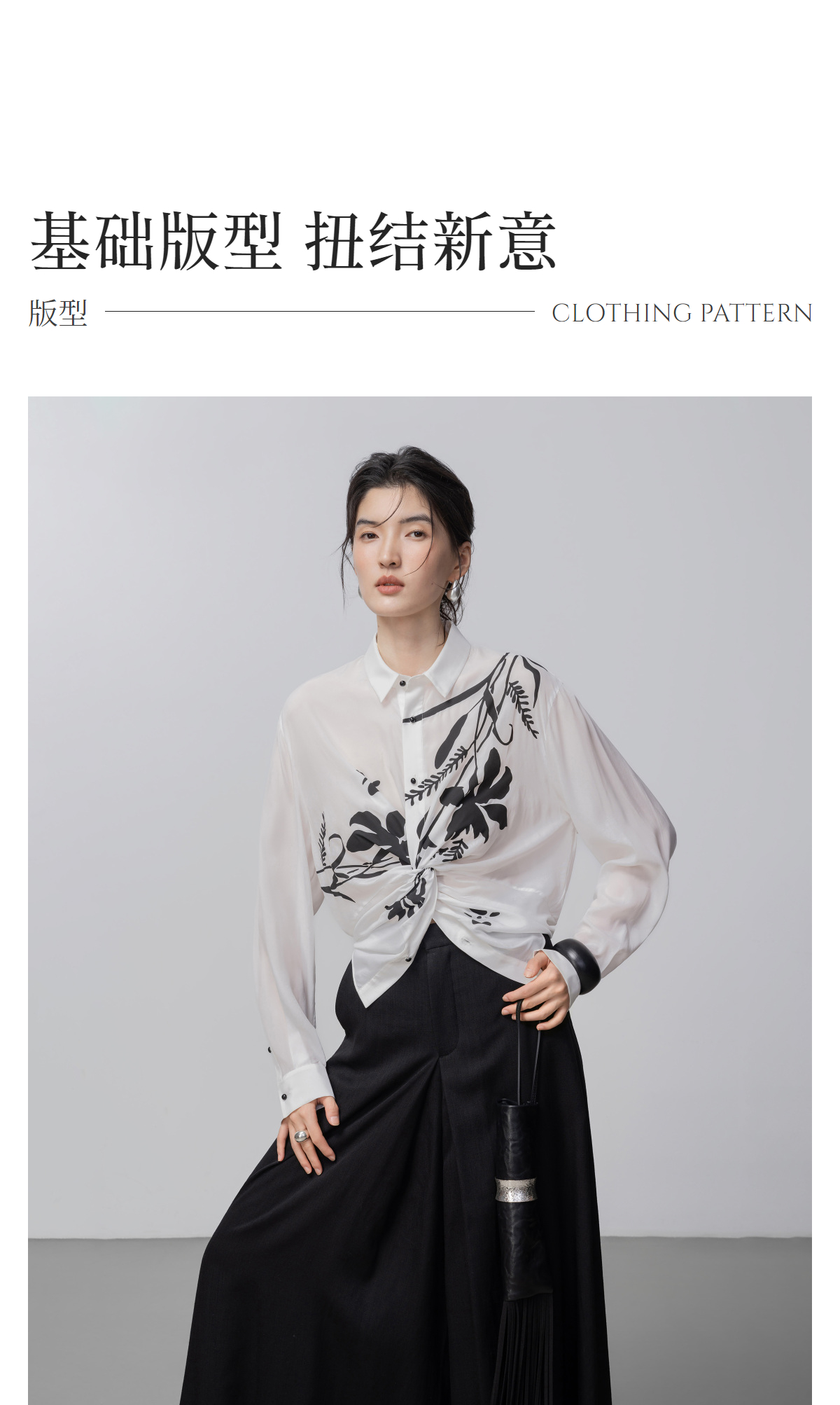【林栖设计小店】生活在左笔墨花事印花衬衣优雅百搭扭结设计感修身显瘦2026早春新款上衣女1961177