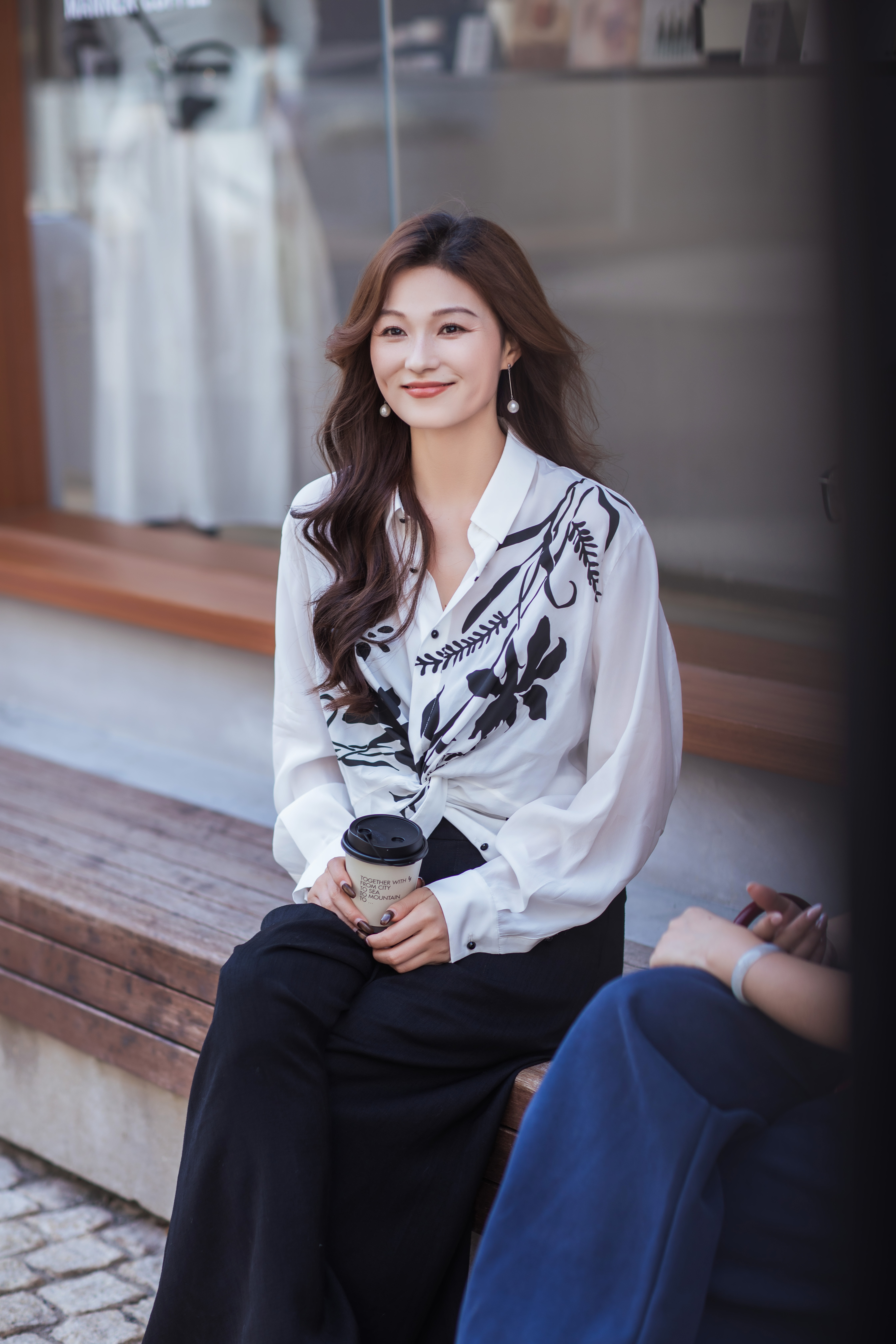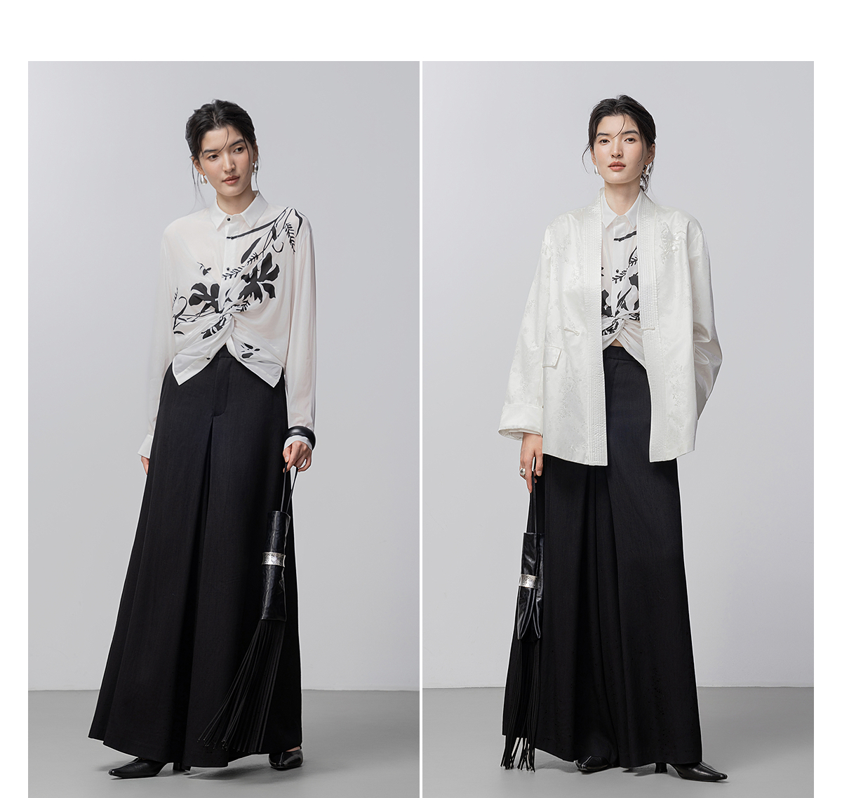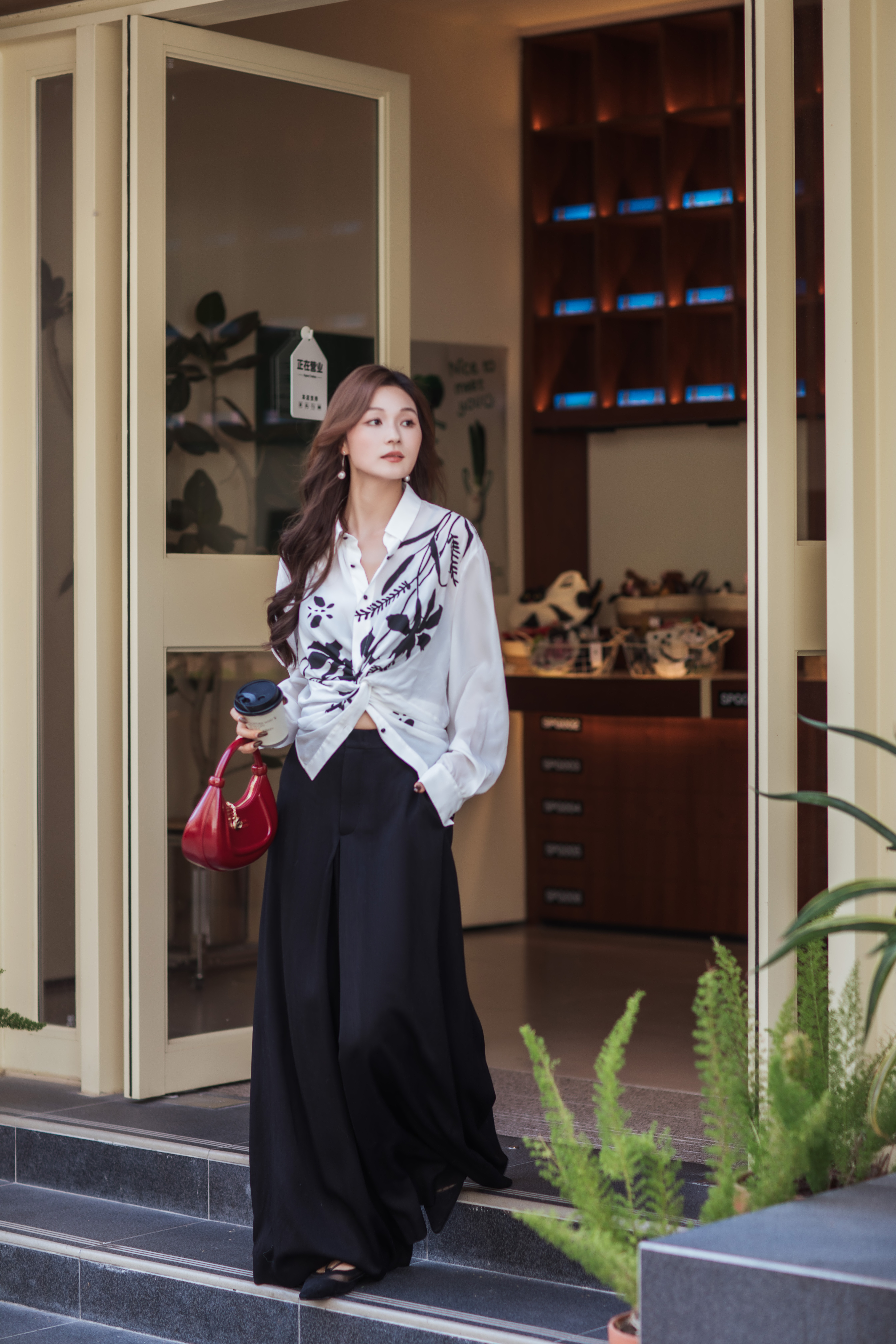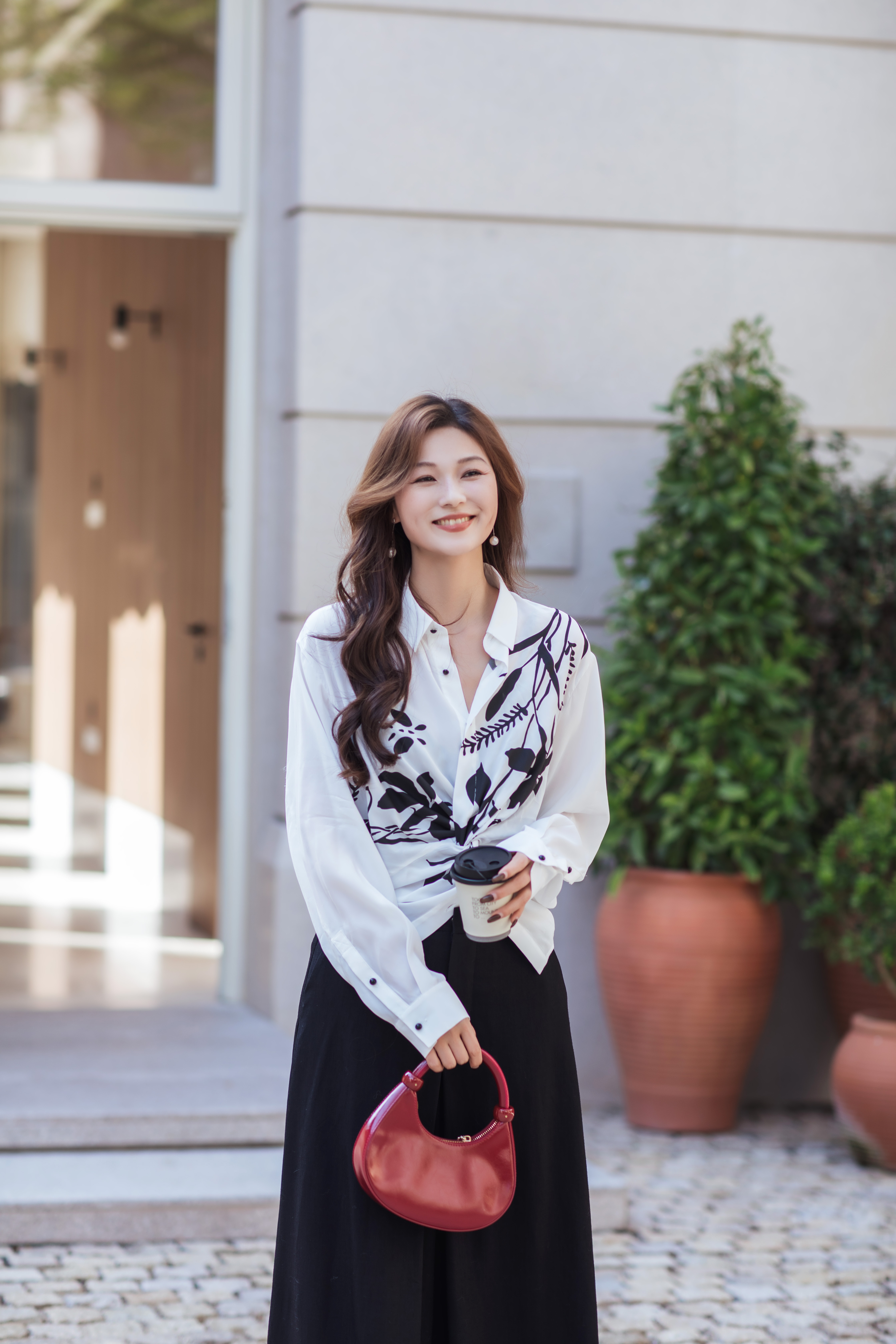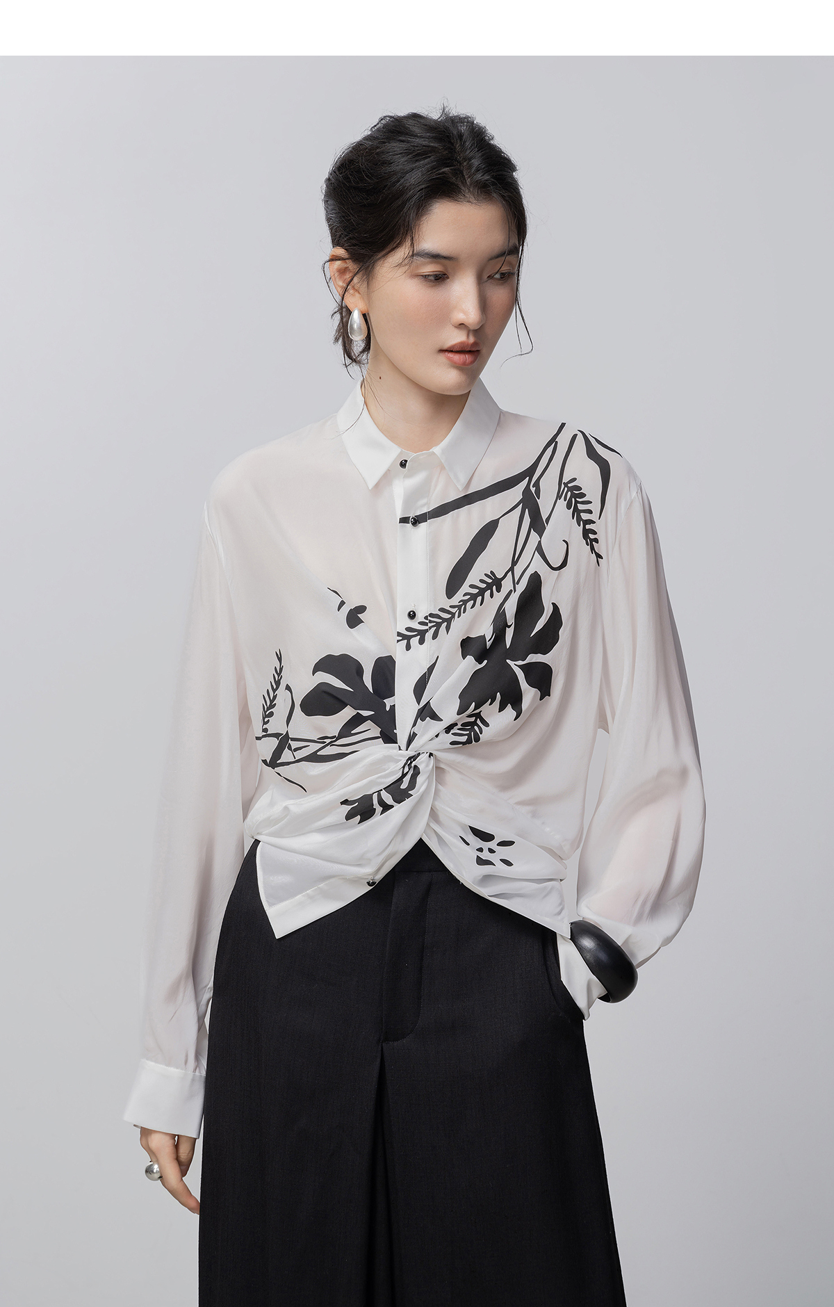 【林栖设计小店】生活在左笔墨花事印花衬衣优雅百搭扭结设计感修身显瘦2026早春新款上衣女1961177