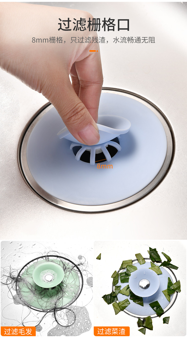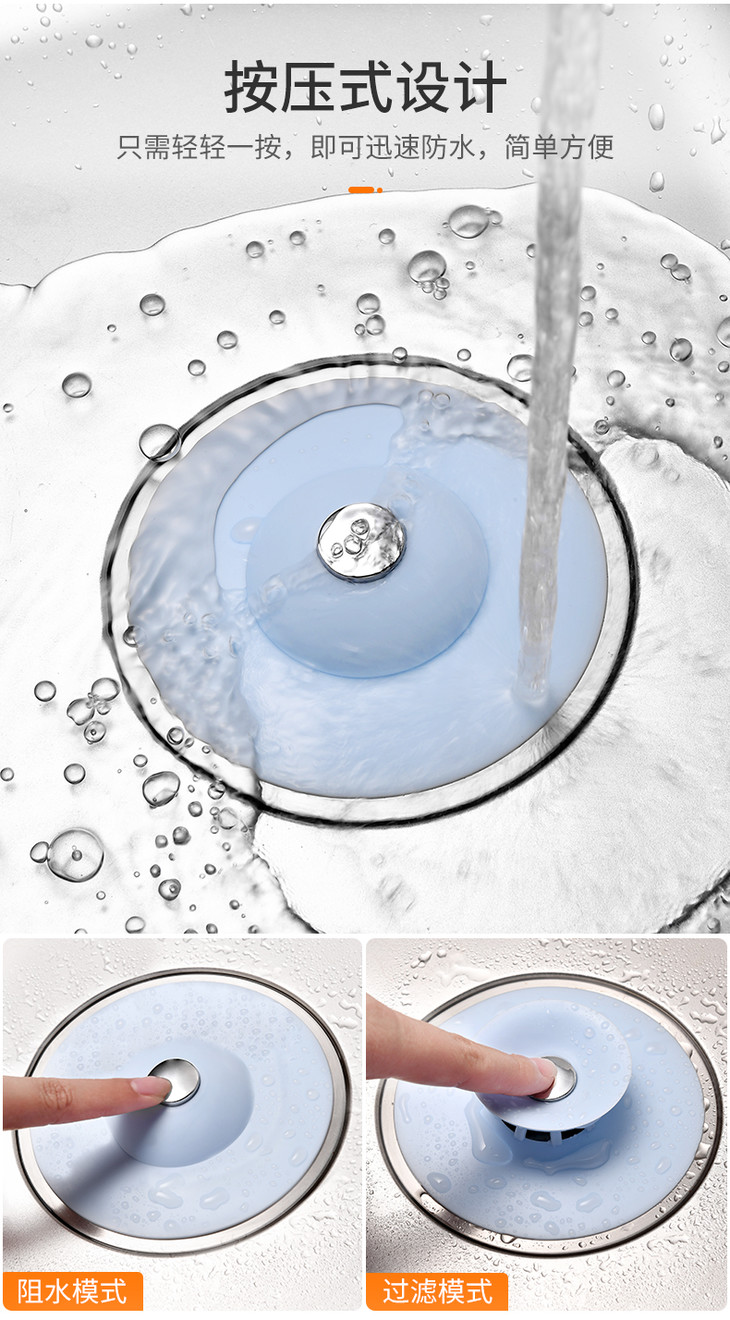 12个超值!【买一次用三年!按压式地漏】适用大部分下水口,告别堵塞!厨房水槽过滤,下水道防臭盖,防止头发异味堵住,卫生间洗脸盆水池漏塞子