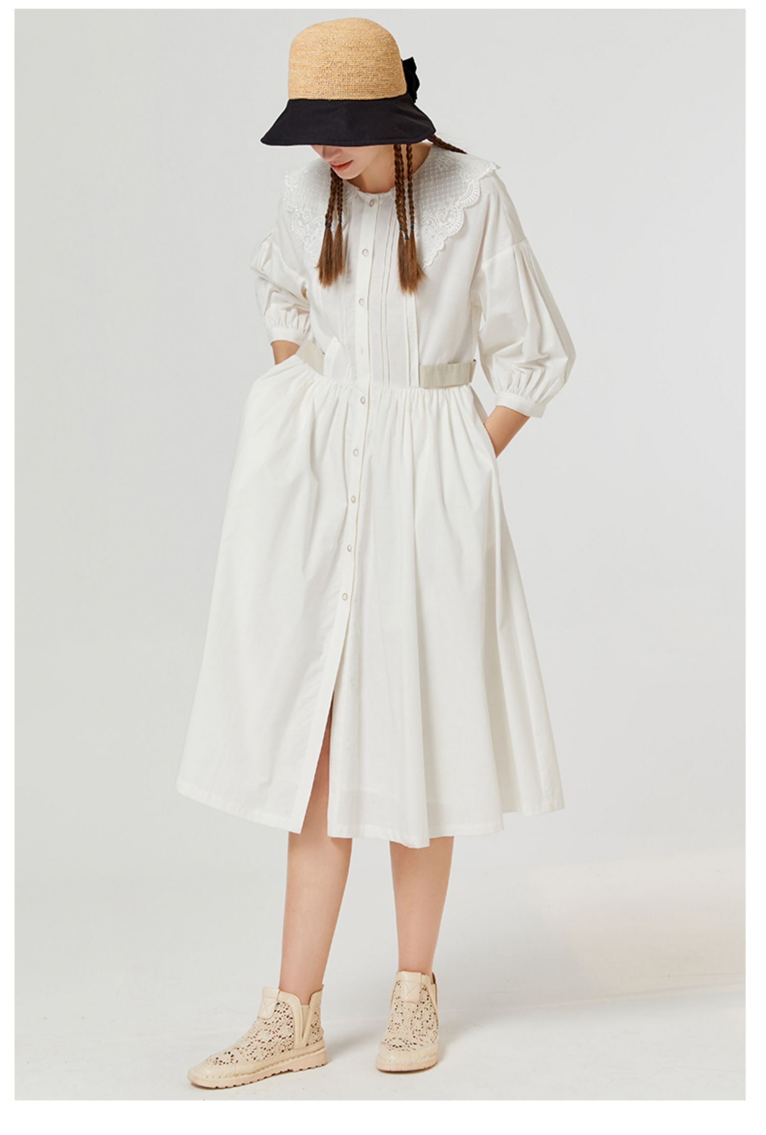 Famecoco范可儿别致惊艳连衣裙夏季高级感女装冷淡风气质修身裙子F223FA016
