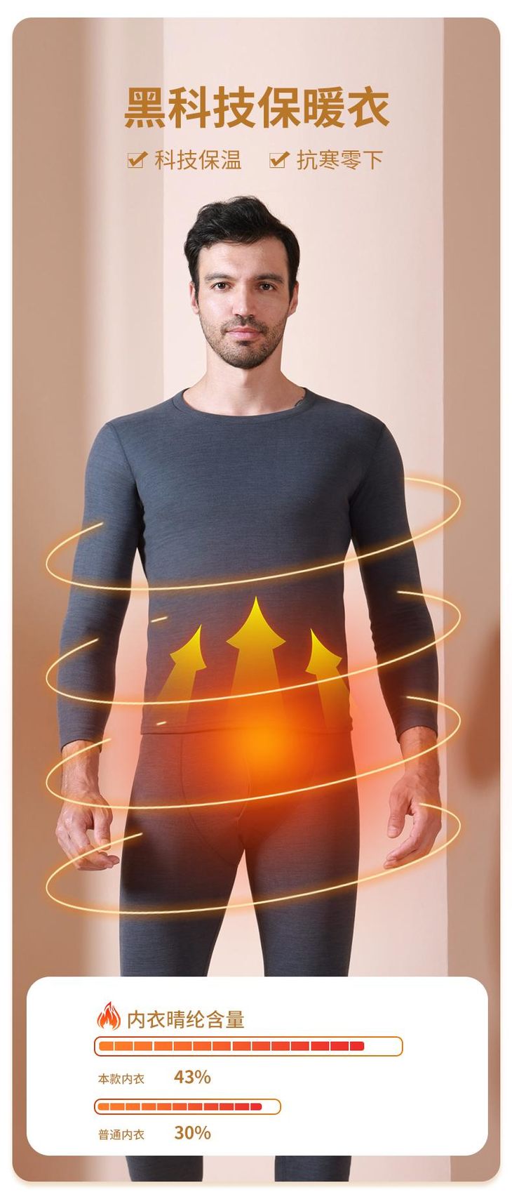 【89元/2套】黑金沸腾贴片 莱赛尔天丝羊绒蚕丝 保暖内衣(需自行设置满减,满138-49)