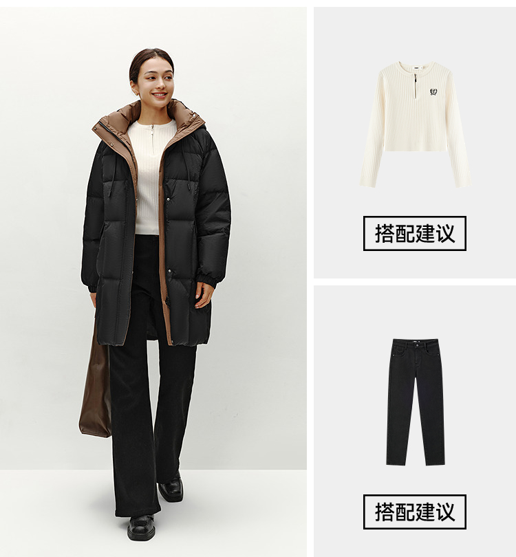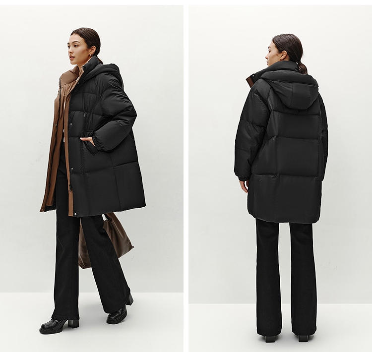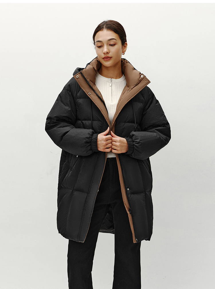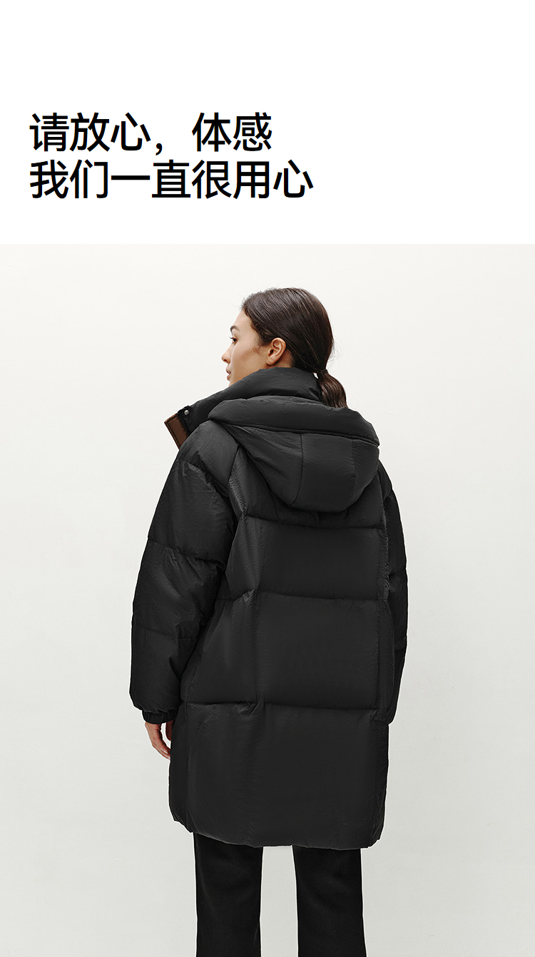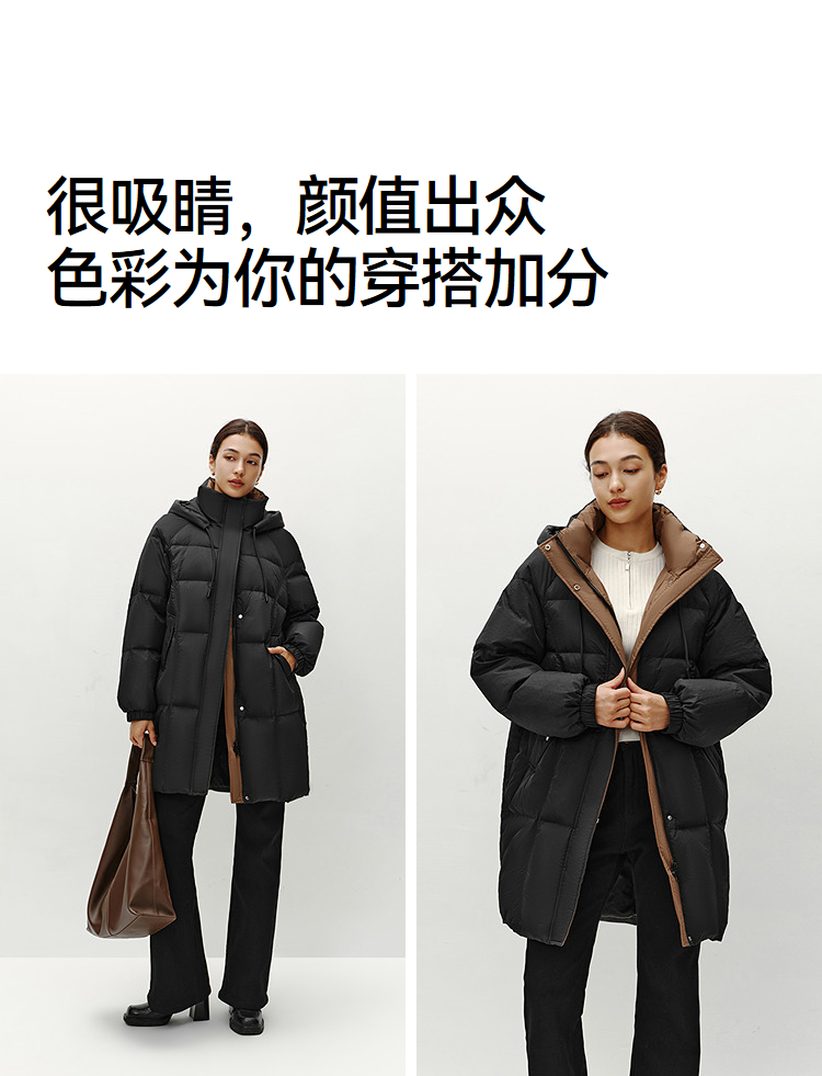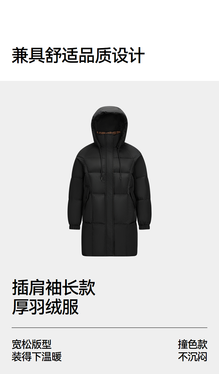 森马羽绒服女冬长款插肩袖撞色宽松连帽80绒子休闲简约百搭厚外套