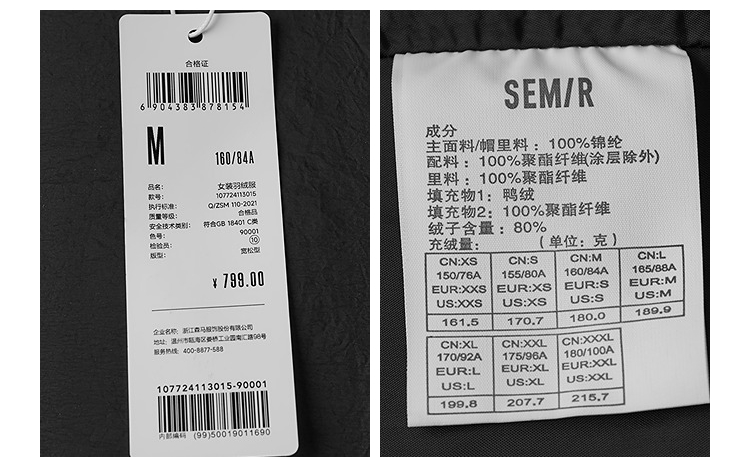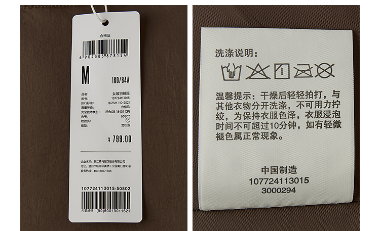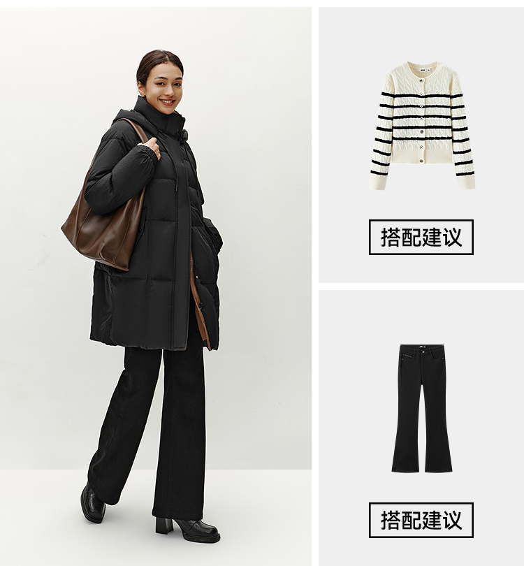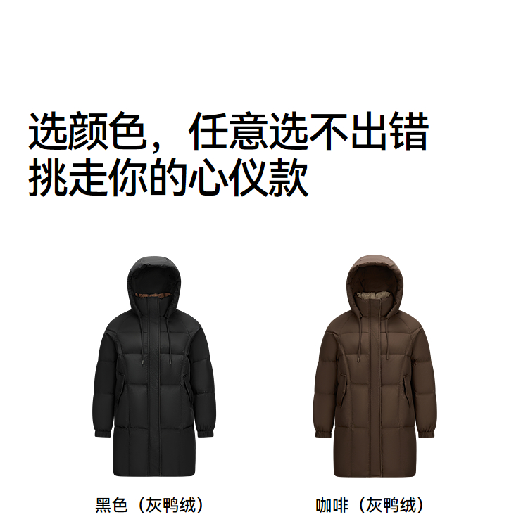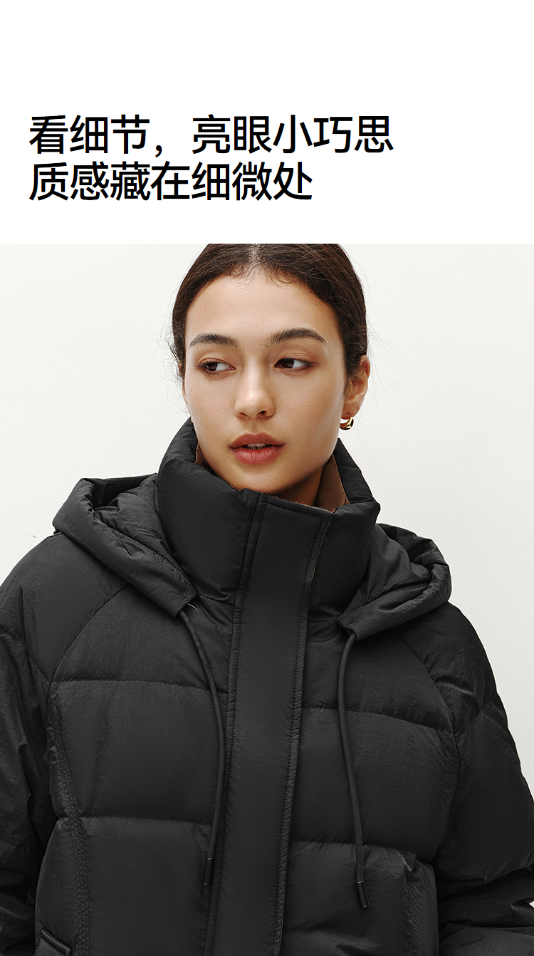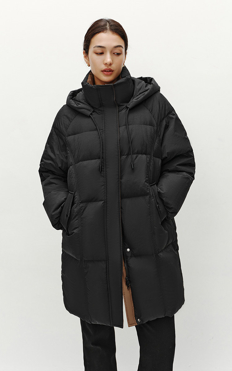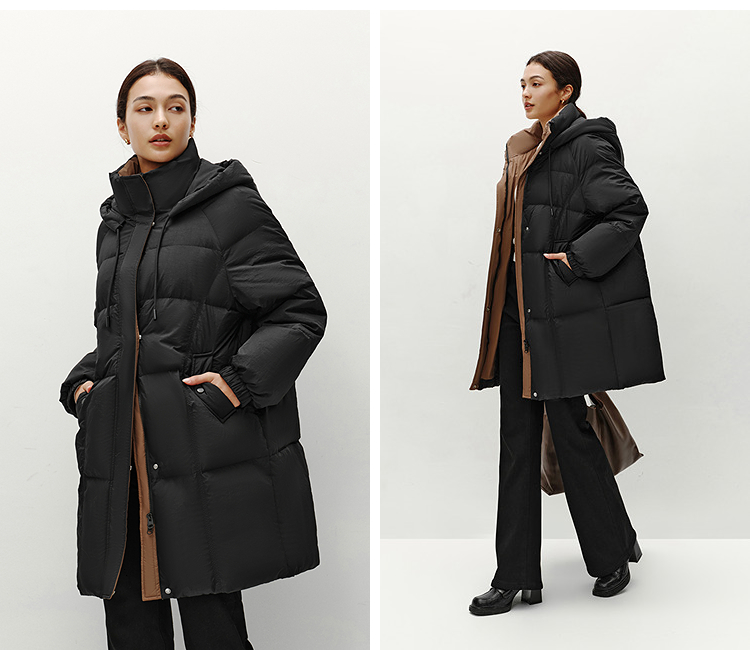 森马羽绒服女冬长款插肩袖撞色宽松连帽80绒子休闲简约百搭厚外套