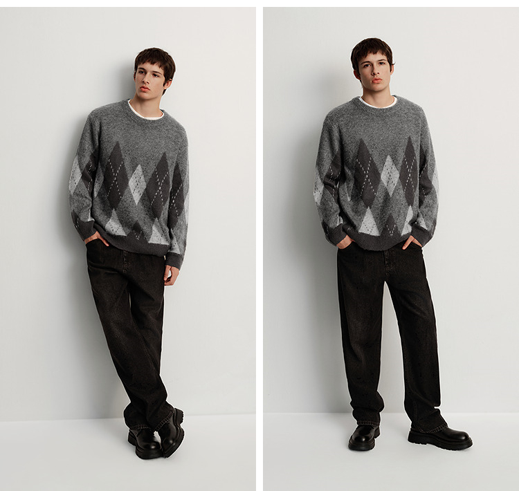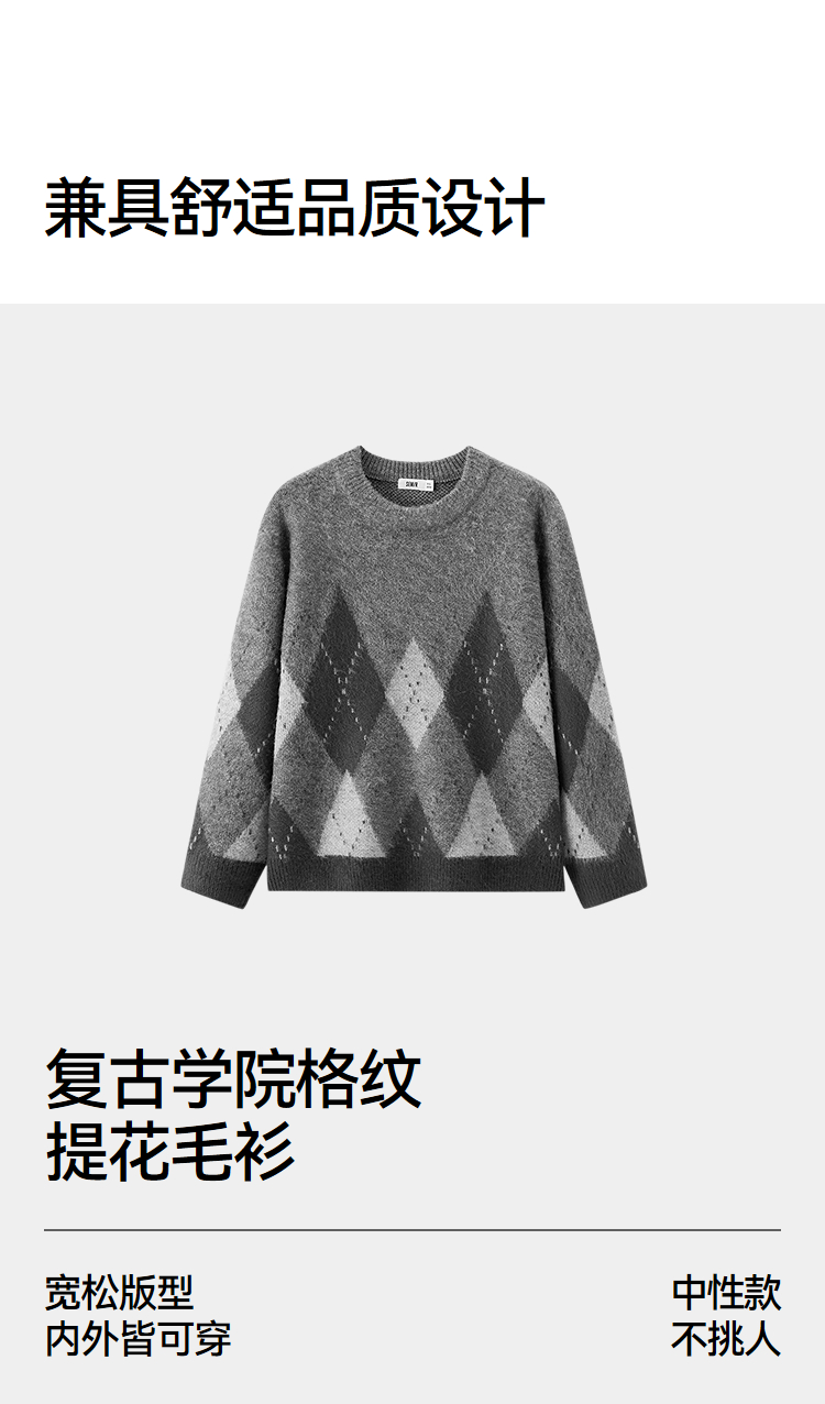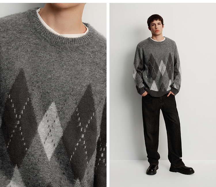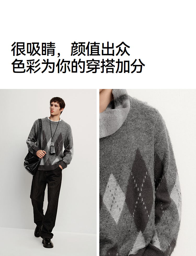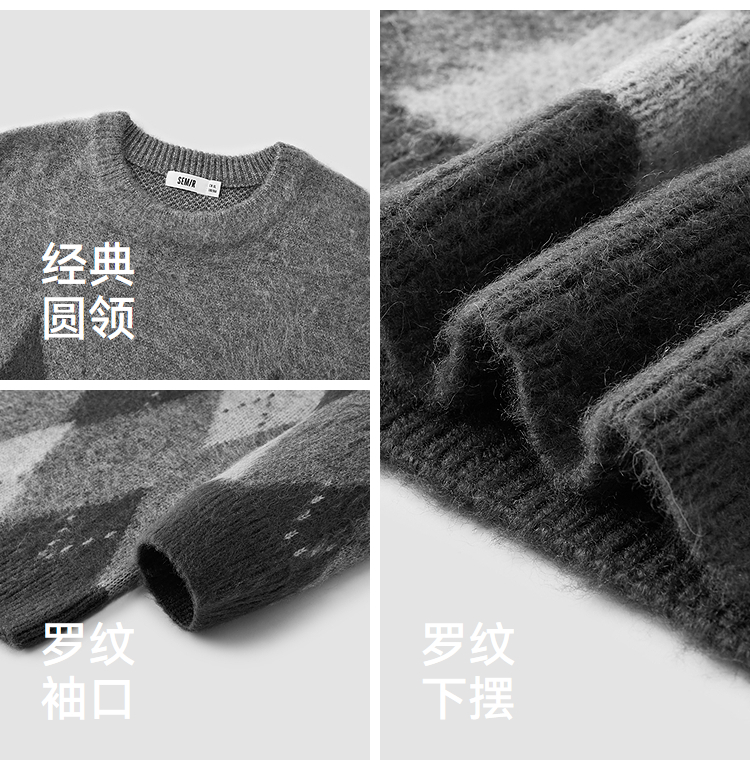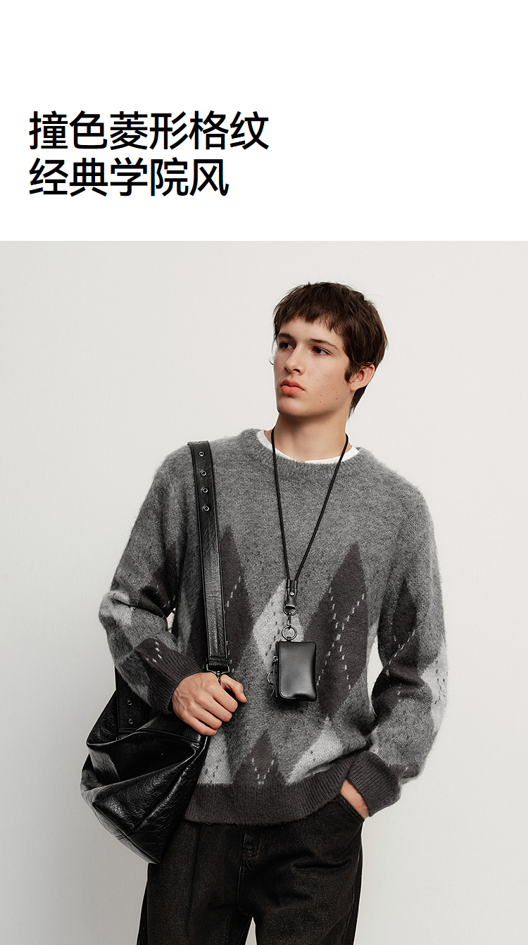 森马毛衫男冬季仿马海毛格纹提花针织衫2025新款复古学院风情侣装