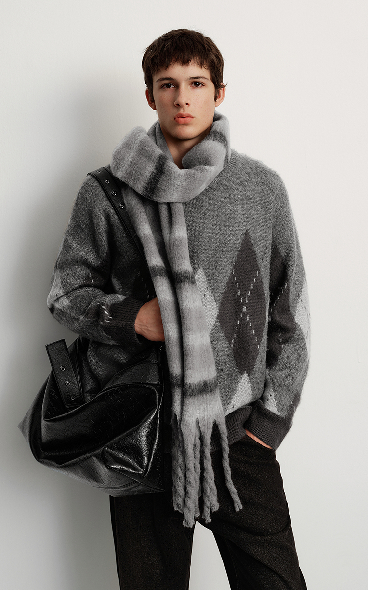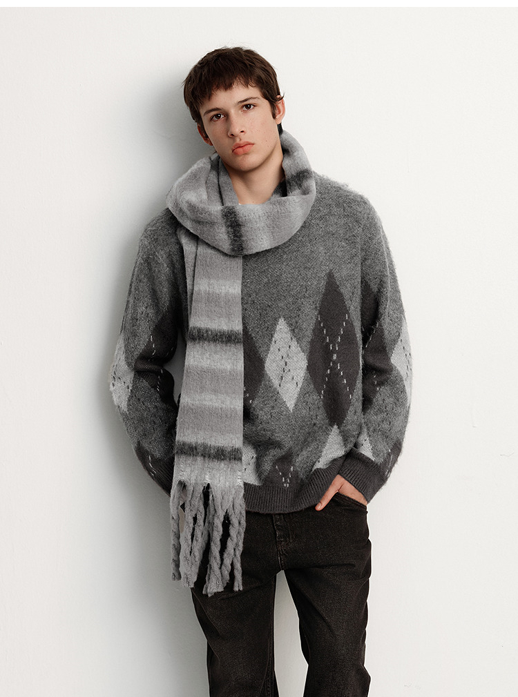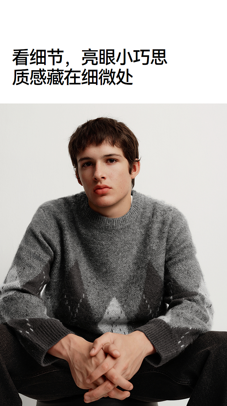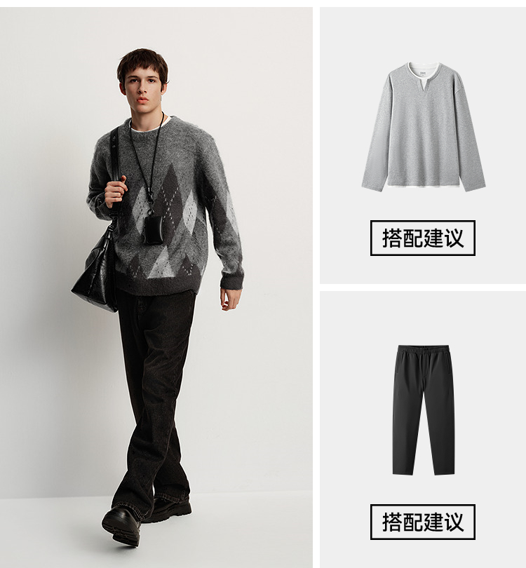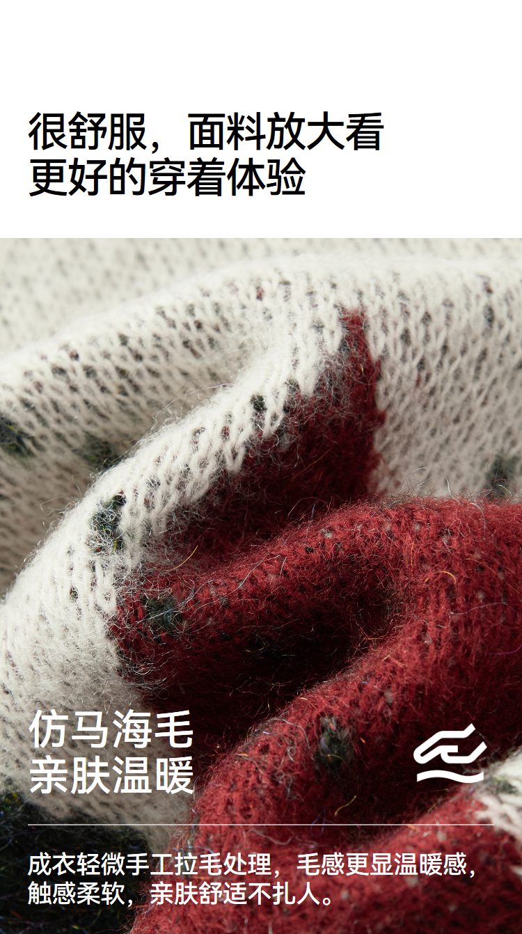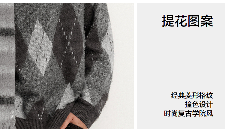 森马毛衫男冬季仿马海毛格纹提花针织衫2025新款复古学院风情侣装