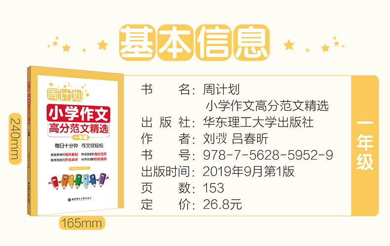 周计划 小学作文高分范文精选 1年级/一年级 小学生同步作文优秀写作素材题库大全 小学作文写作指导写作技巧 华东理工大学出版社