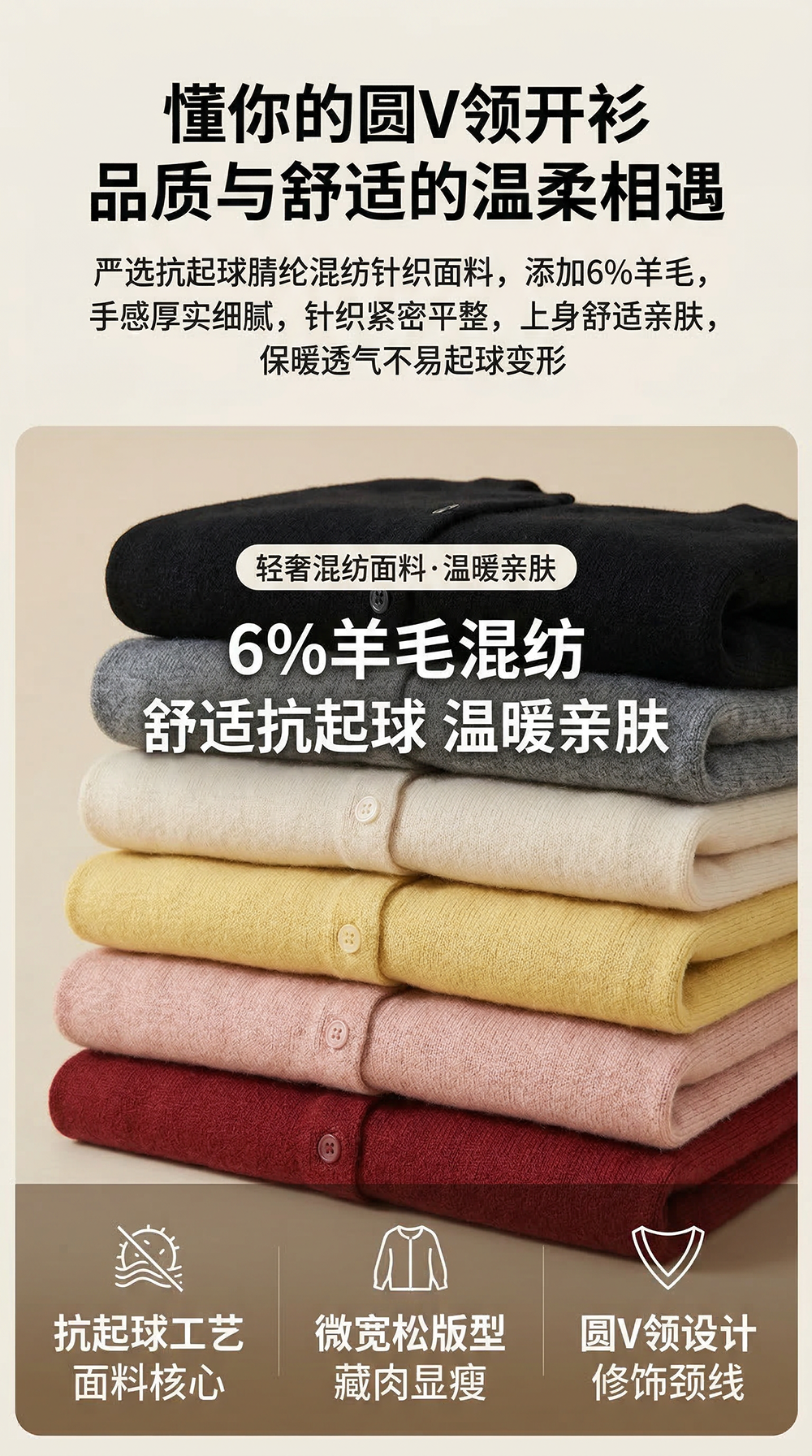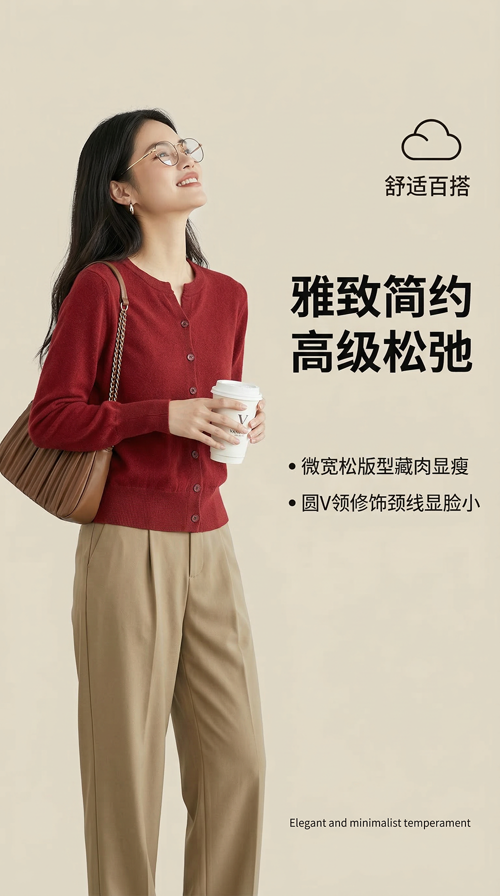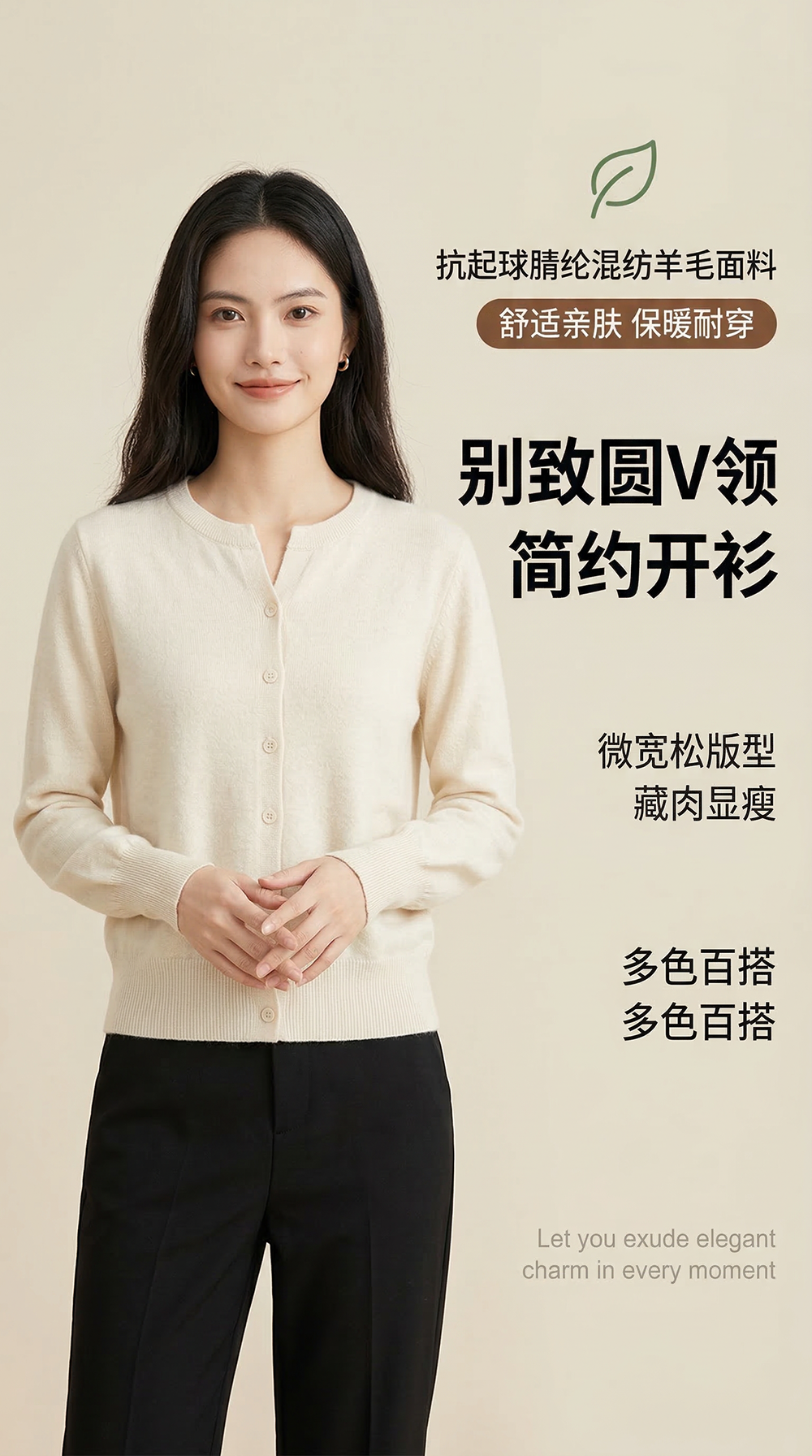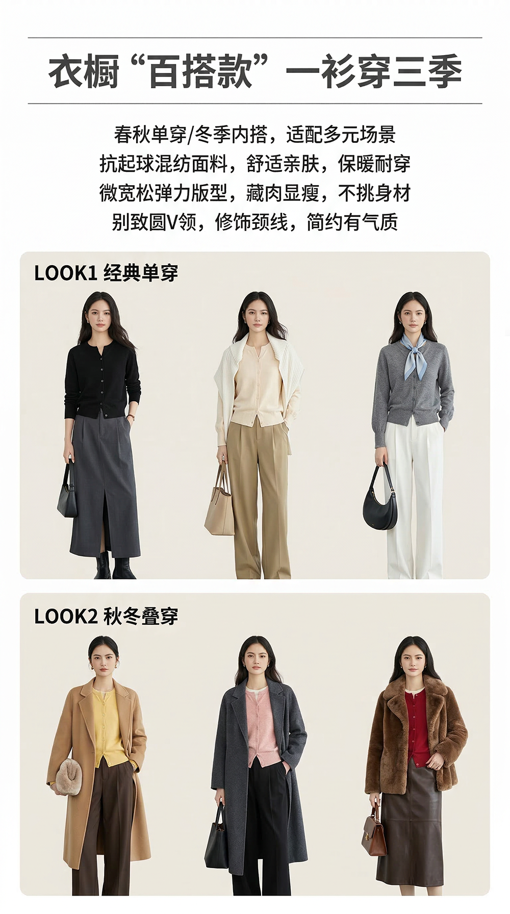 Grace&Glam 精纺羊毛舒柔减龄菱形开衫