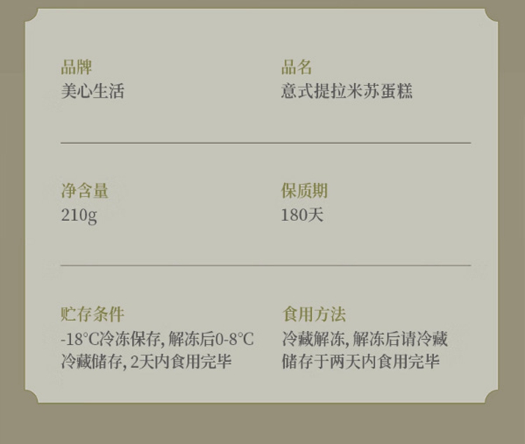 美心生活 意式提拉米苏蛋糕盒装 210g(包邮直发)