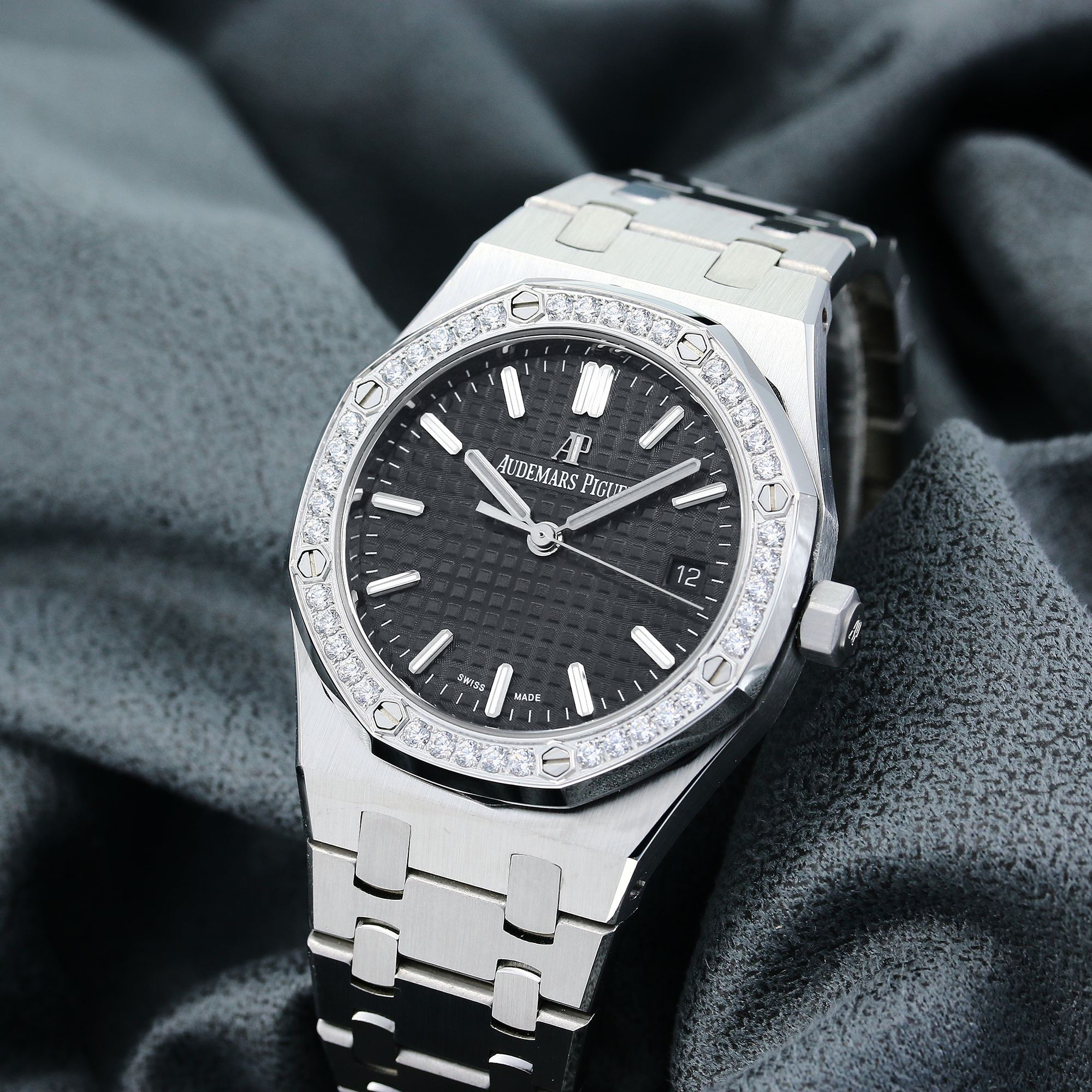 Noob official➕新女款AP 爱彼皇家橡树系列77350 77351型号机械腕表!直径34mm。搭载Calibre 5800自动上链机芯,采用该款式特别设计的玫瑰金自动摆陀(零故障)!整个手表 基于正品original原版como的super copy版本 做工精细 打磨细腻乃精品中的精品‼️全新表壳搭配防炫目蓝宝石水晶镜面。表盘格纹细节清晰,搭配荧光立体表针,采用进口夜光填充,更持久。钢带每个细节确保吻合正品,最人性化的对标正品头粒缓冲。 所有参数、材质皆采用正品扫描打磨而成!再现传奇!为佩戴者演绎出别样的优雅格调!Noob official ➕ New AP Audemars Piguet Royal Oak Series 77350 77351 Mechanical Watch for Women! Diameter 34mm. Equipped with Calibre 5800 automatic winding movement and specially designed rose gold automatic pendulum (zero malfunction) for this style! The entire watch is based on the super copy version of the authentic original COMO, with fine craftsmanship and delicate polishing, making it one of the finest pieces in the world ‼️ New case with anti glare sapphire crystal mirror. The dial pattern details are clear, paired with fluorescent three-dimensional hands, and filled with imported night light for longer durability. Every detail of the steel strip ensures that it matches the genuine product, providing the most humanized benchmark for genuine product head cushioning. All parameters and materials are scanned and polished using genuine products! Revive the legend! Interpret a unique elegant style for the wearer!
