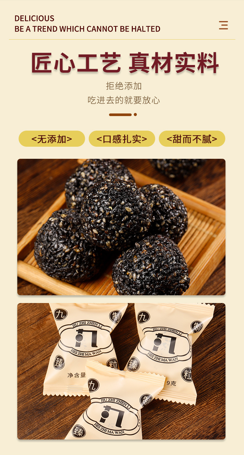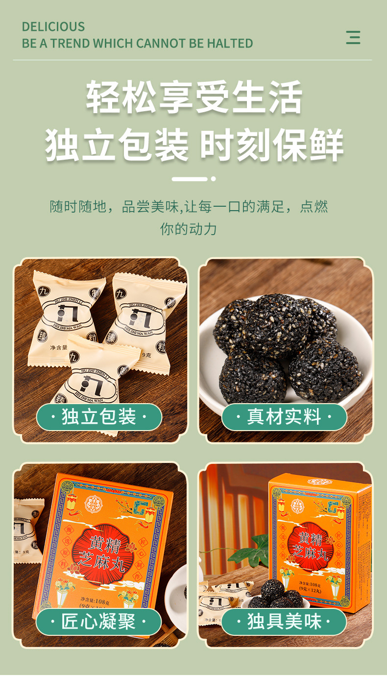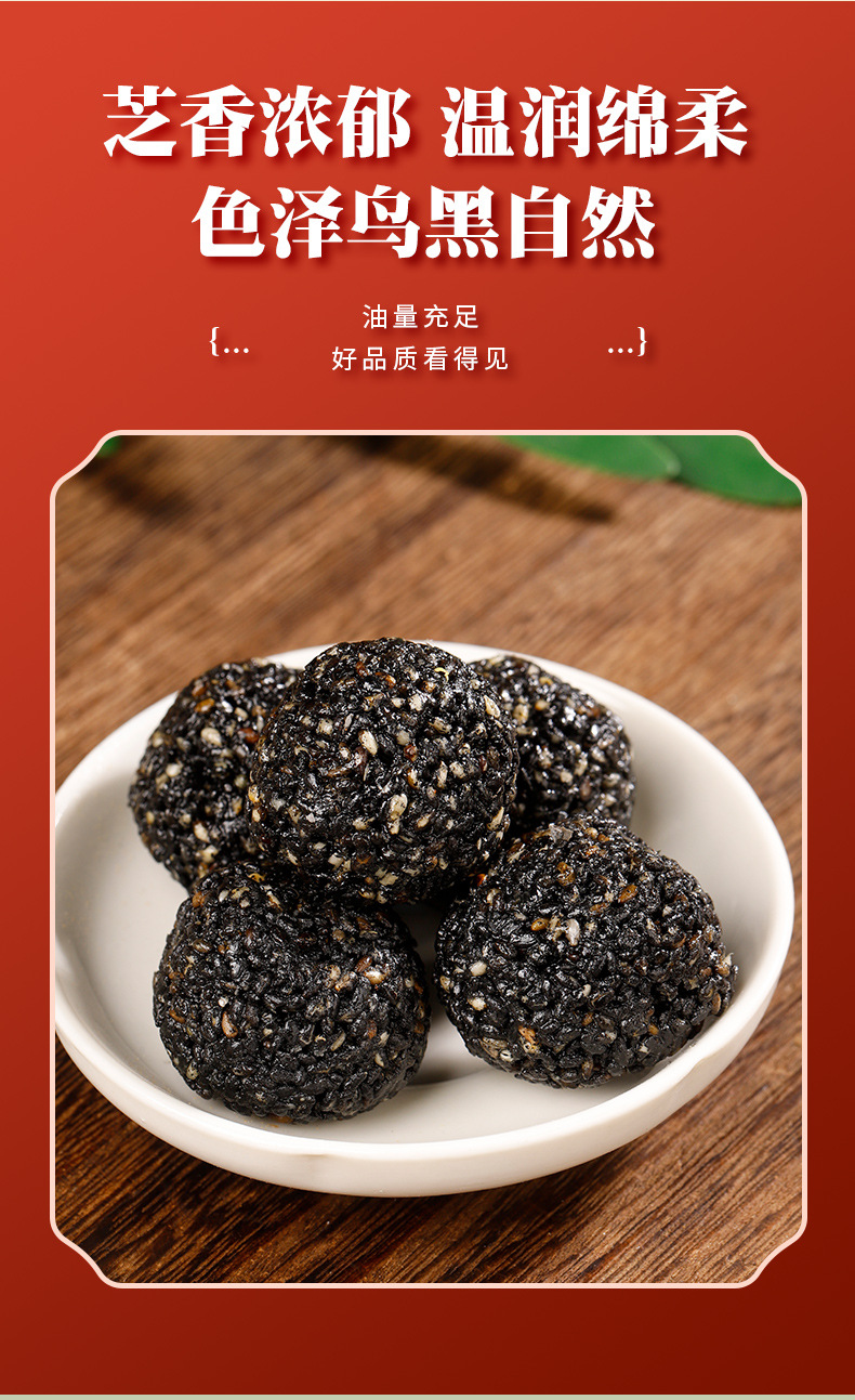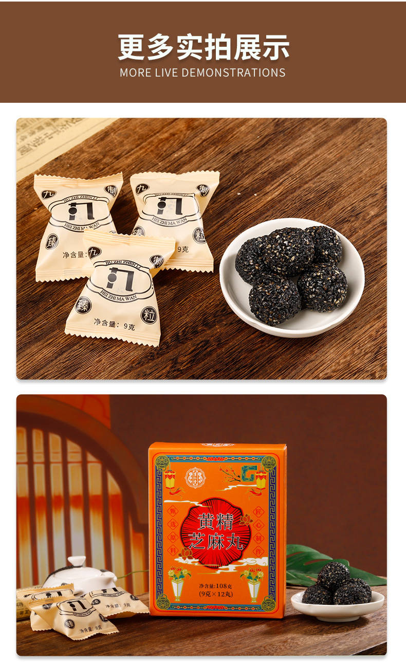 【第二盒半价!九蒸九晒 黄精芝麻丸】口感醇厚方便携带,口感扎实甜而不腻,芝香浓郁温润绵柔,色泽乌黑自然,黑芝麻丸粒芝麻球辟谷丸即食代健康