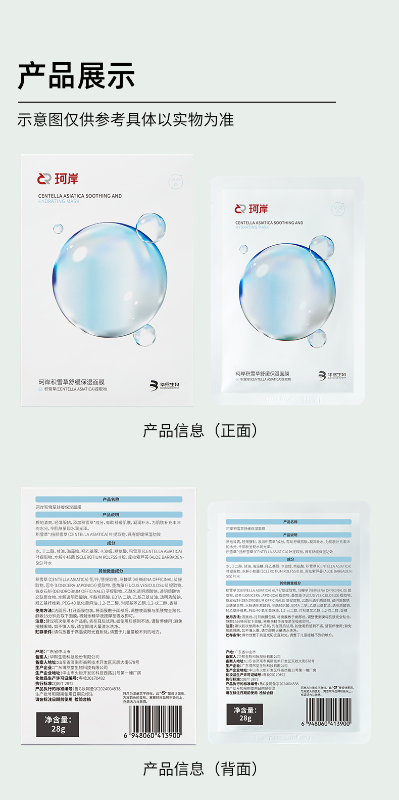 【华熙生物】珂岸积雪草面膜舒缓保湿6盒 4片/盒