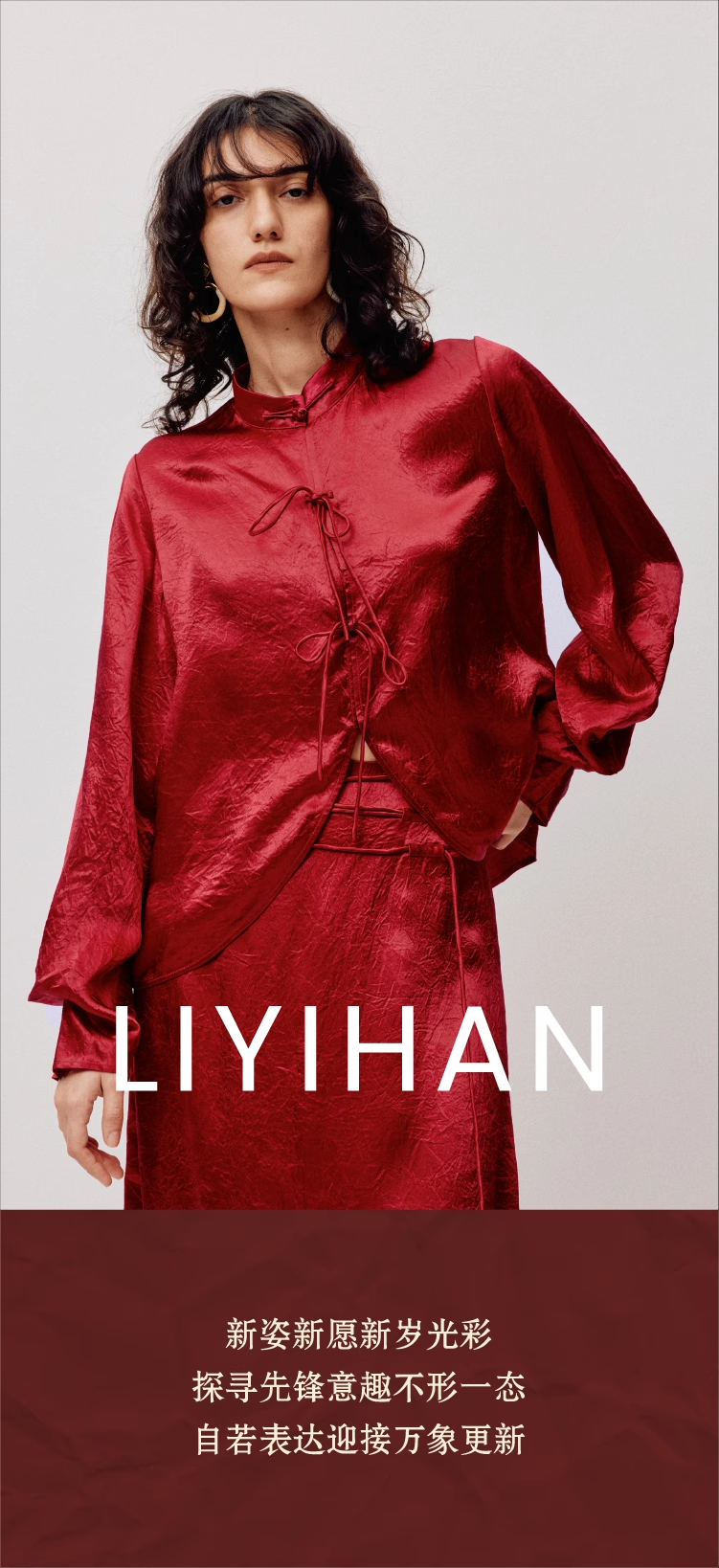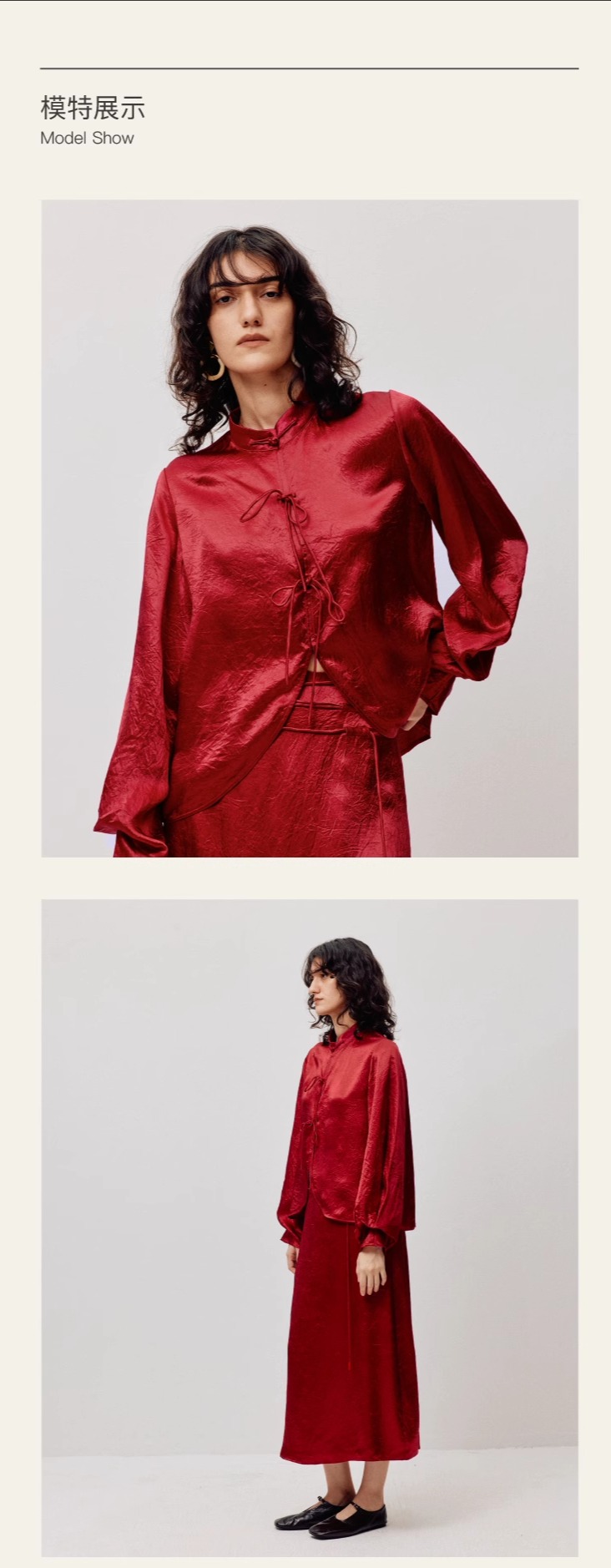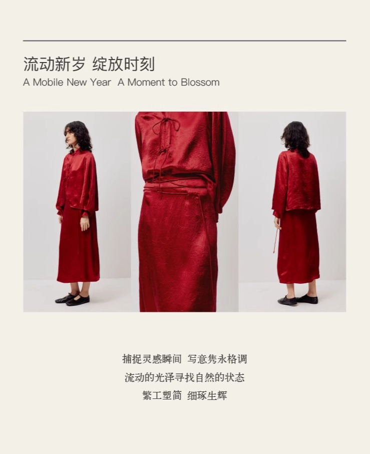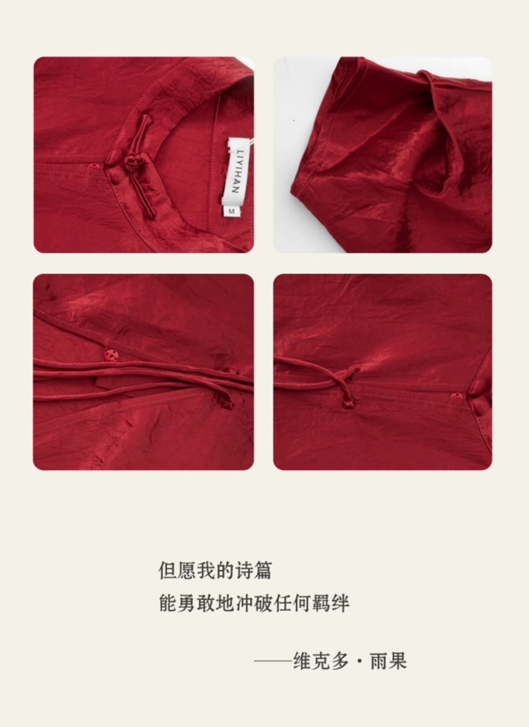 LIYIHAN红之绸丨25春新年新中式醋酸立领上衣缎面压褶垂感衬衫