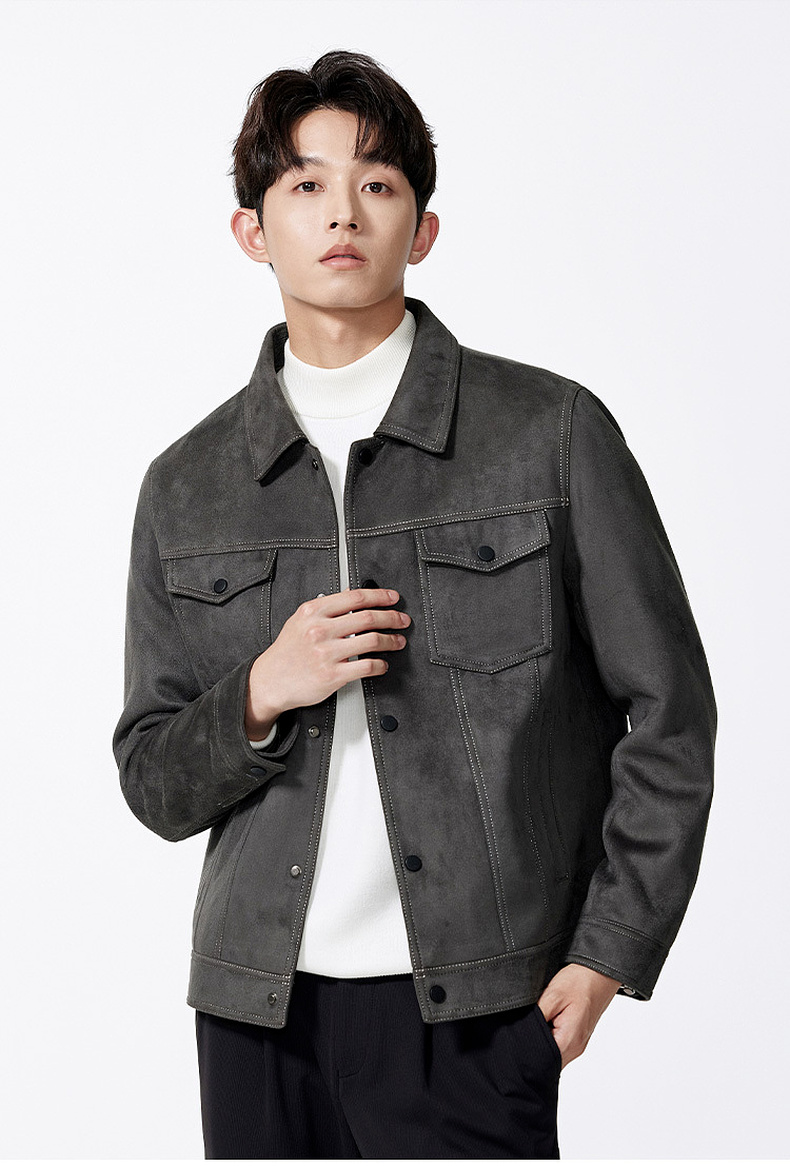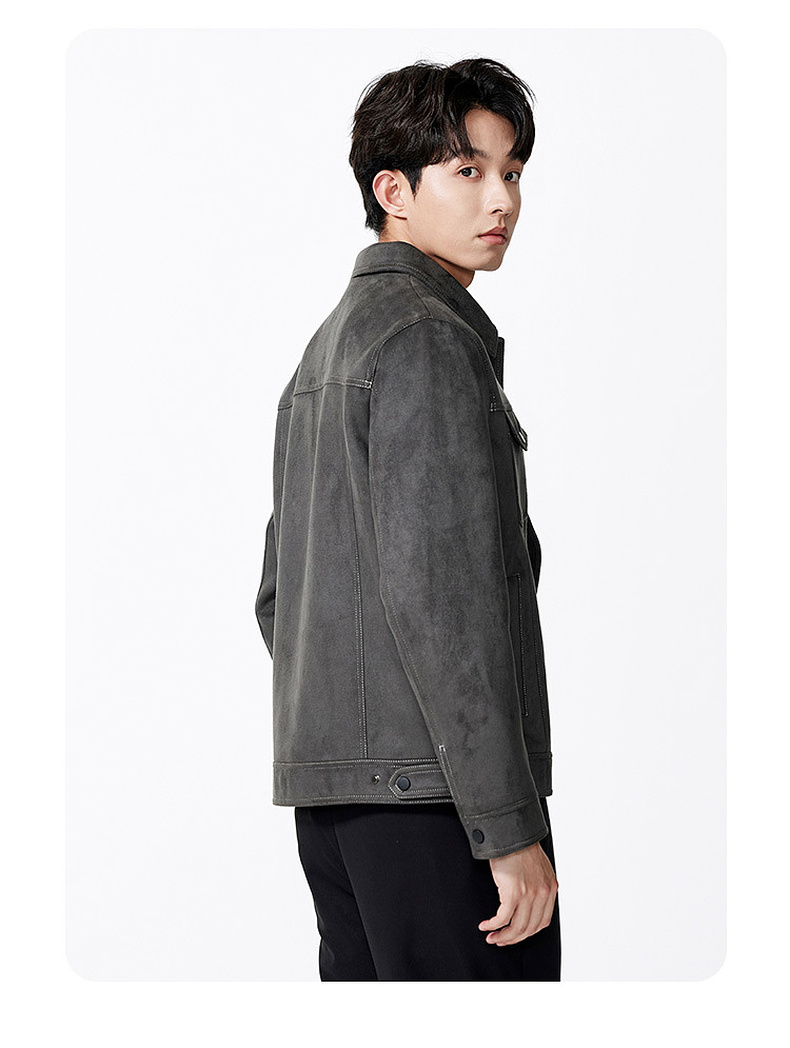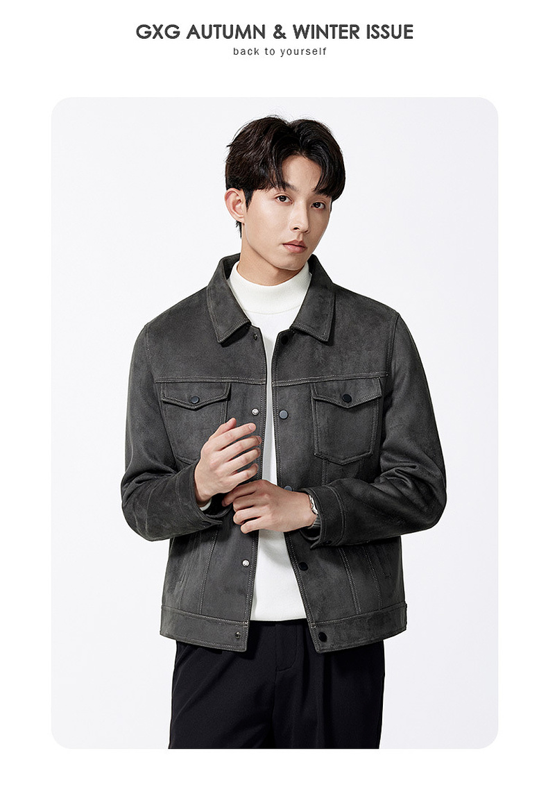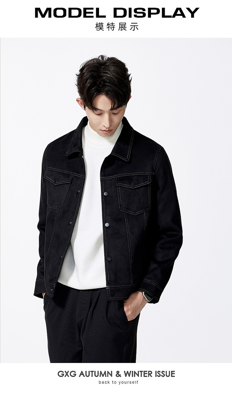 GXG男装秋季经典工装通勤仿麂皮绒面料翻领休闲男式短款夹克K&C
