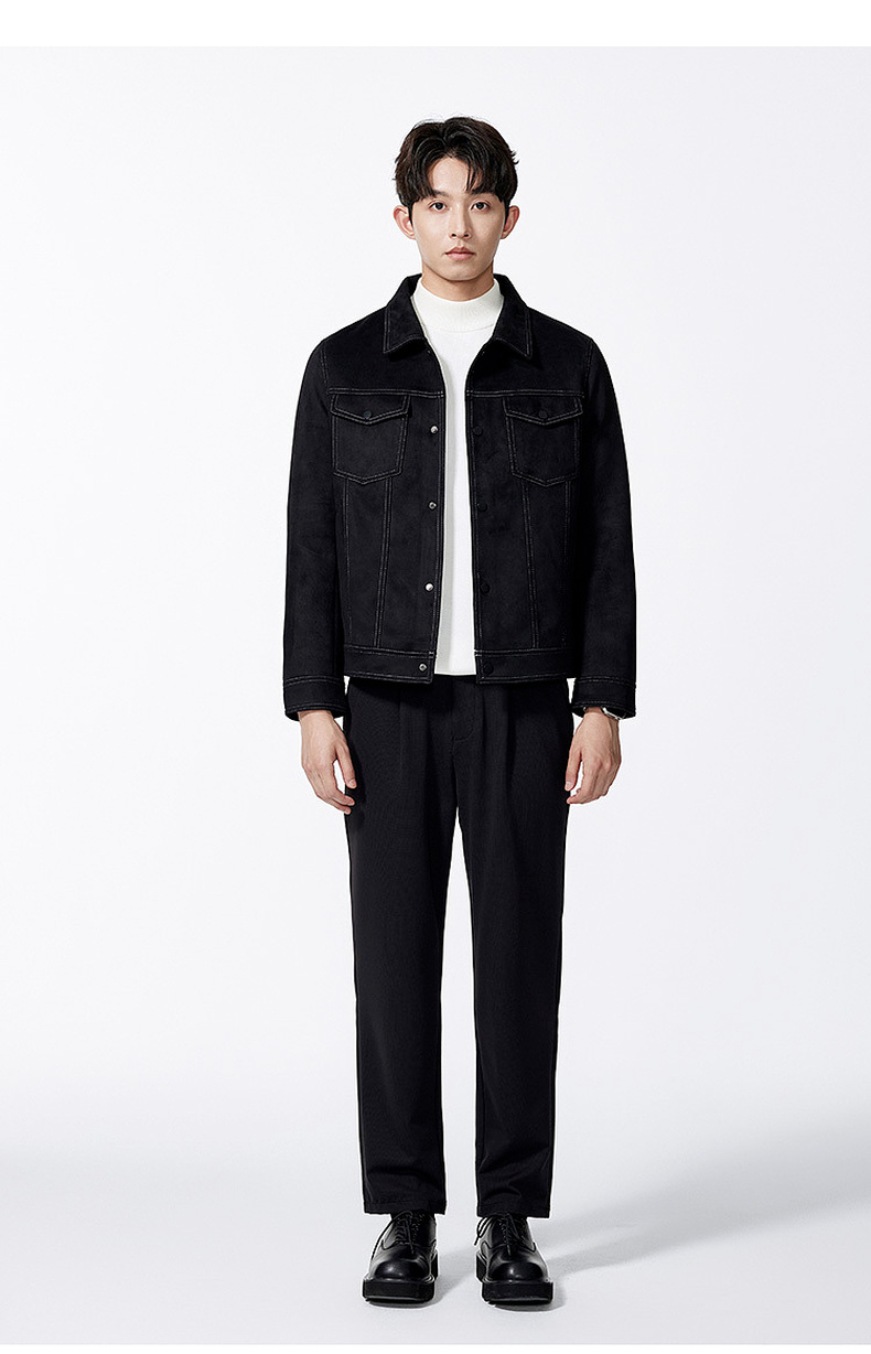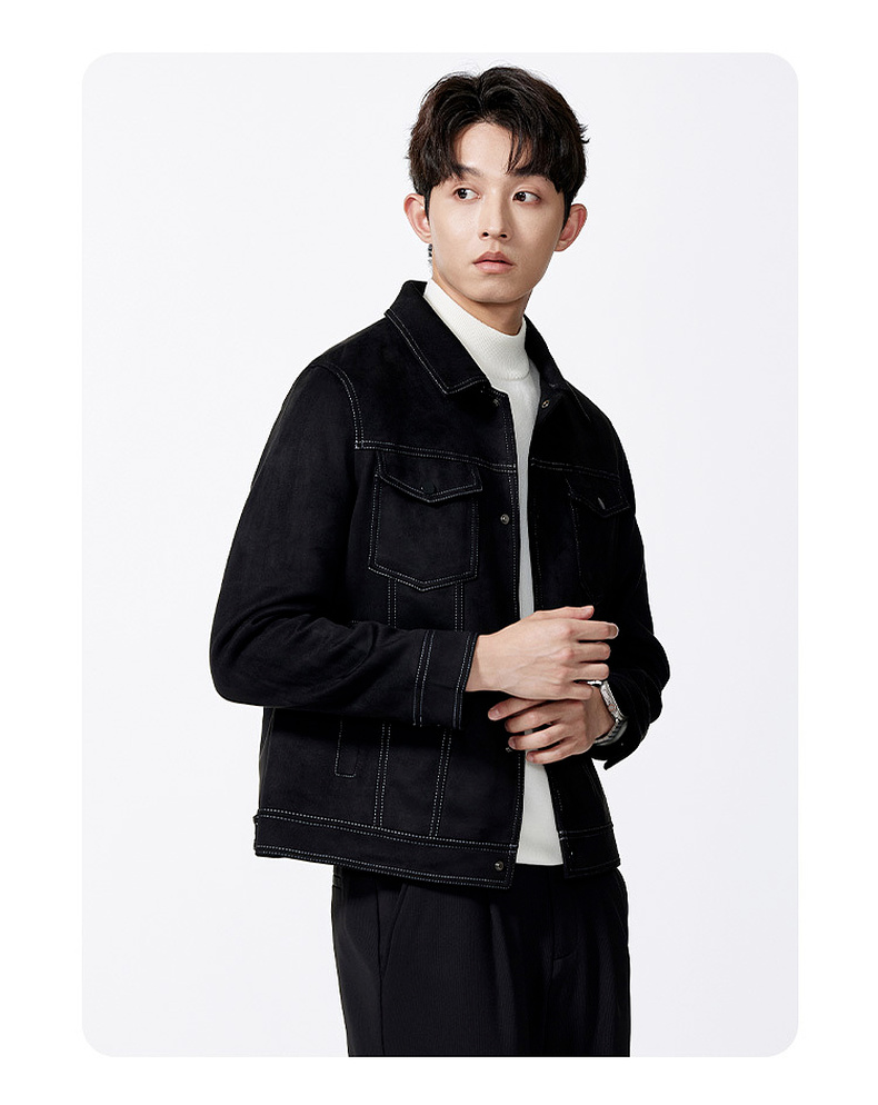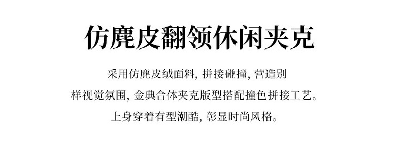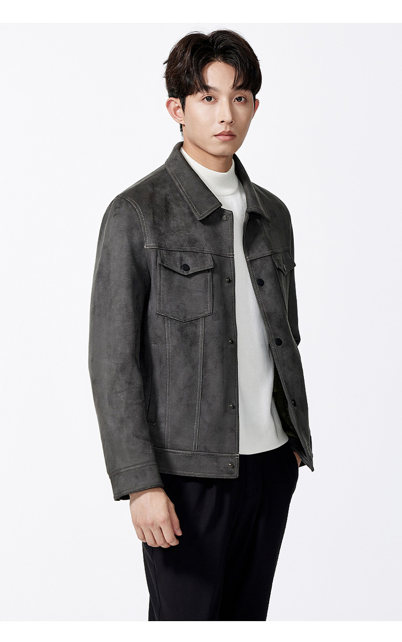 GXG男装秋季经典工装通勤仿麂皮绒面料翻领休闲男式短款夹克K&C