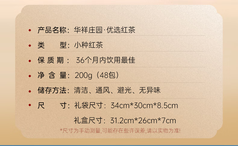 华祥苑红茶 华祥庄园优选红茶礼盒 过年送礼200g