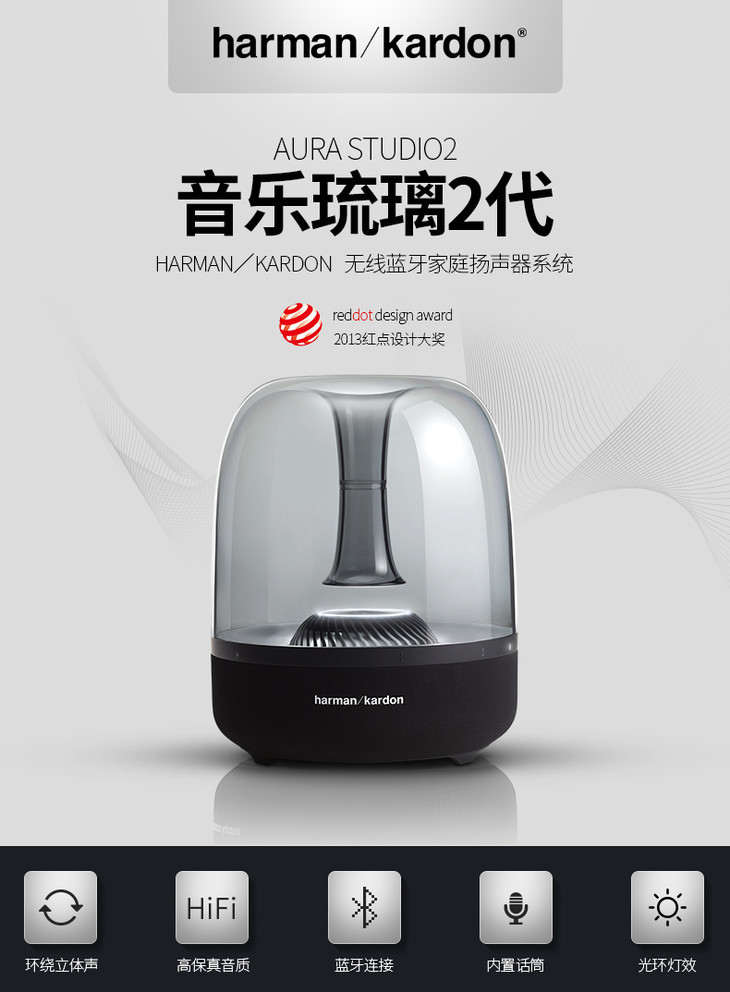 HarmanKardon Aura 二代琉璃无线 2.0音箱 黑色