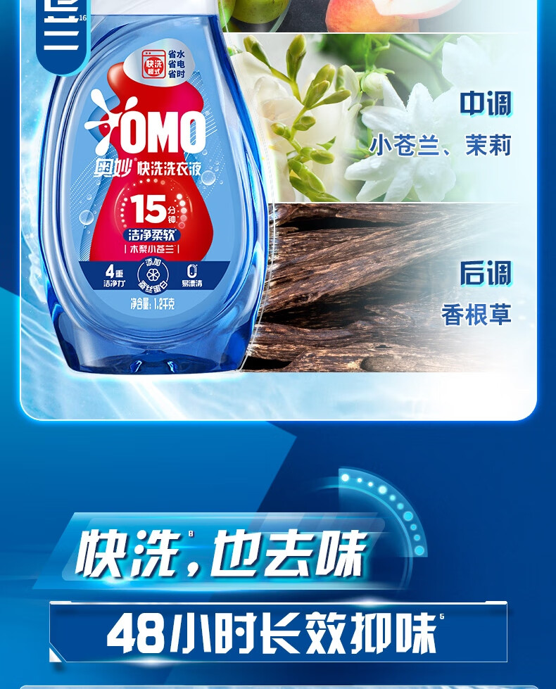 【ZY25】奥妙(OMO)快洗洗衣液洁净柔软/护衣留香/洁净除味1.2kg