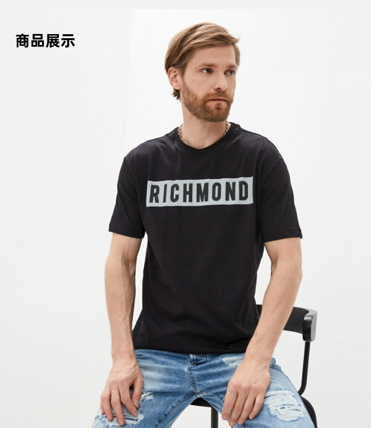RICHMOND 男士棉质铆钉字母圆领短袖T恤 黑色 RMP19057TS BLACK