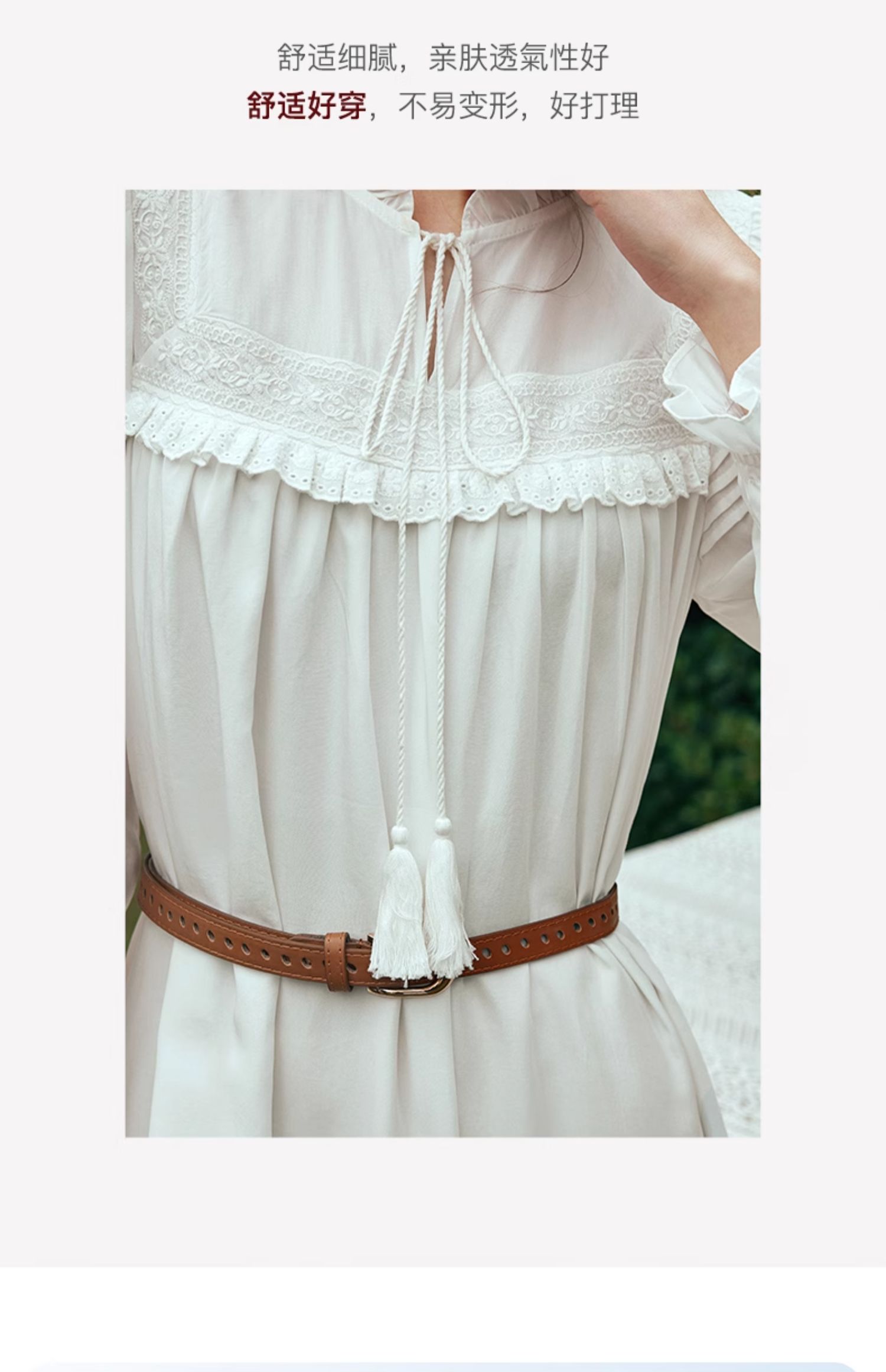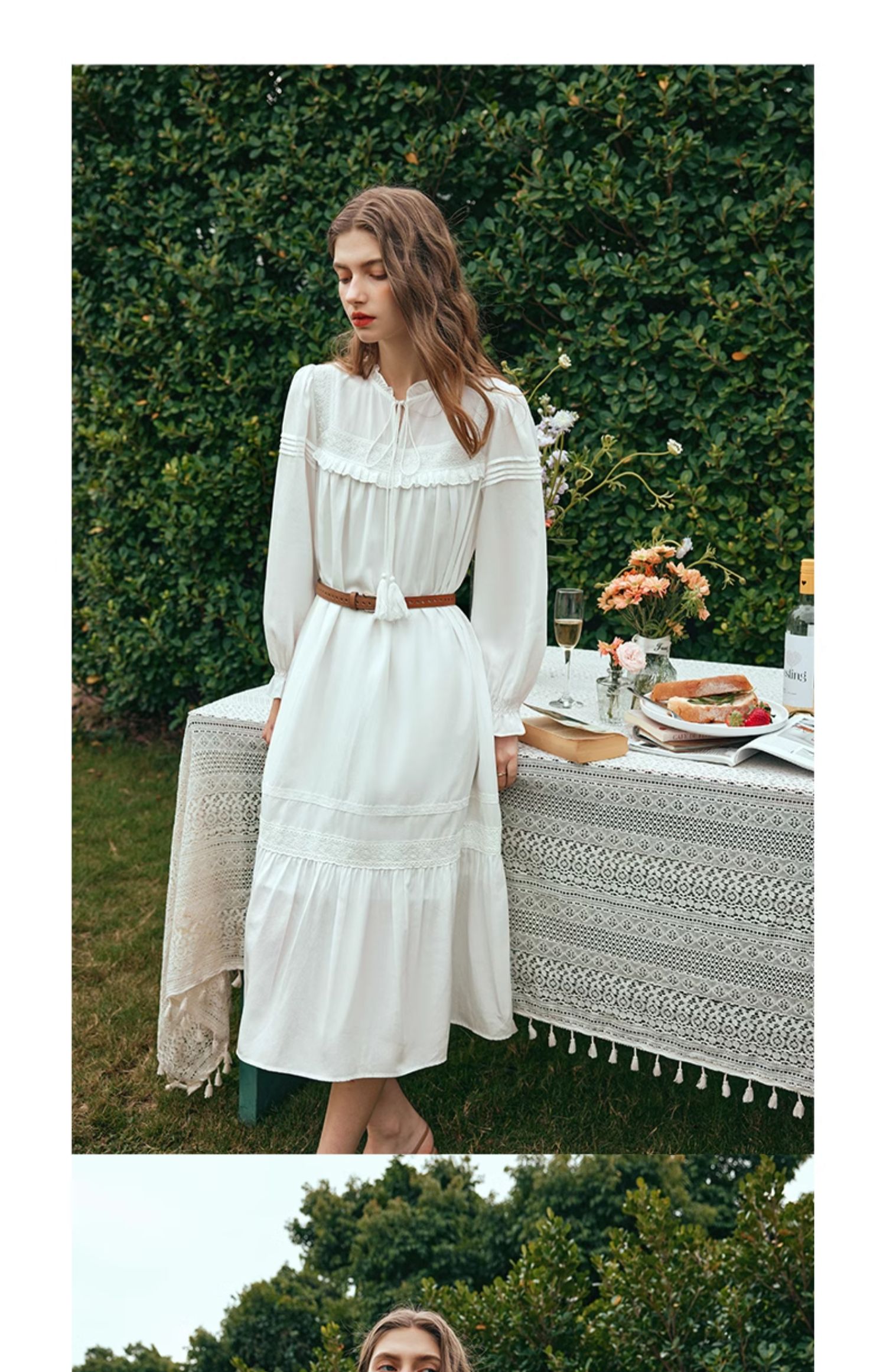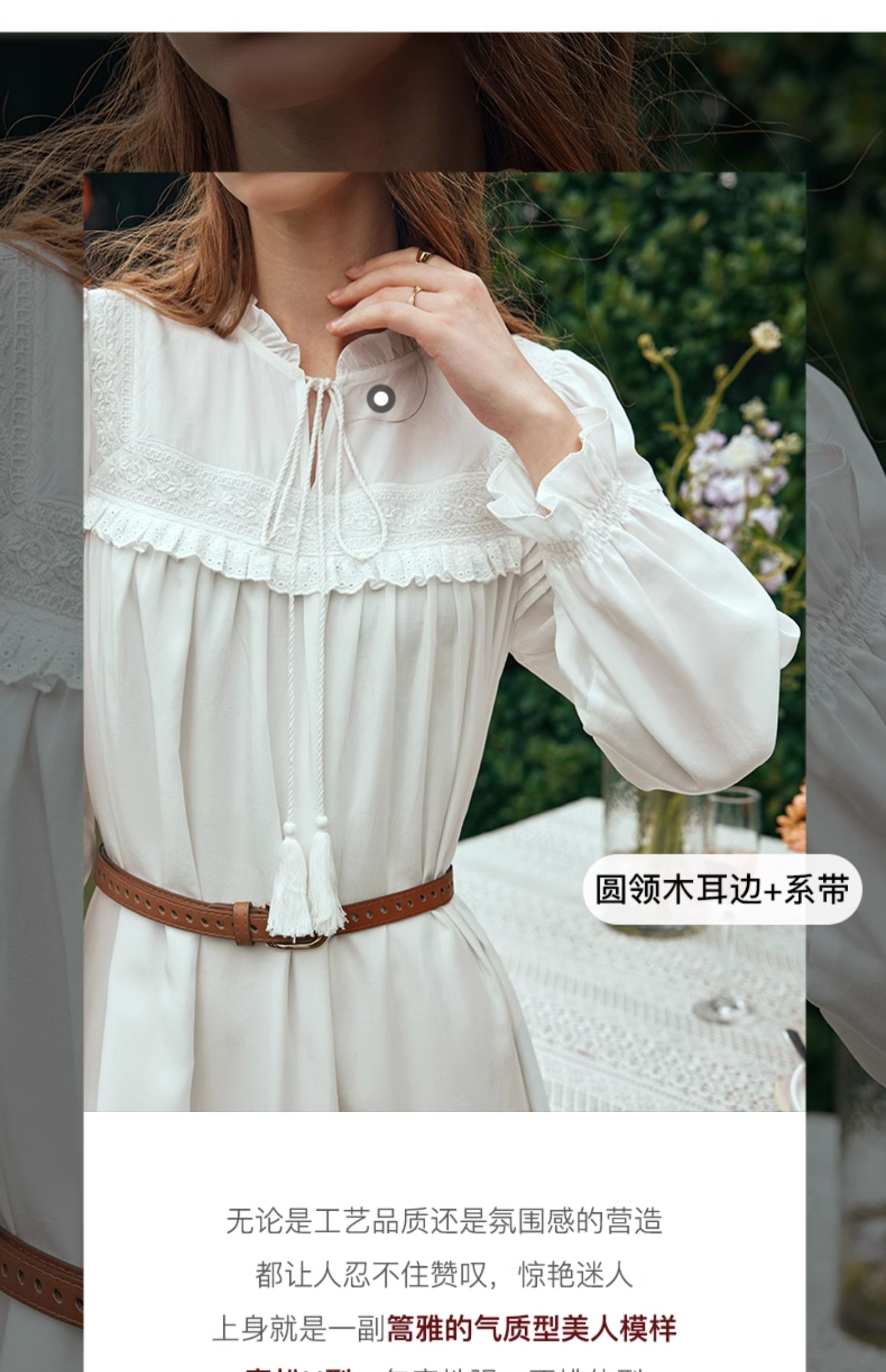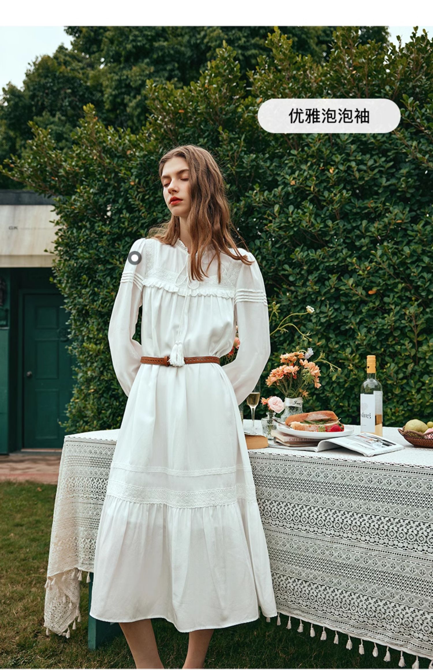 OLrain欧芮儿法式米白色连衣裙女早春2024新款气质刺绣蕾丝边长裙