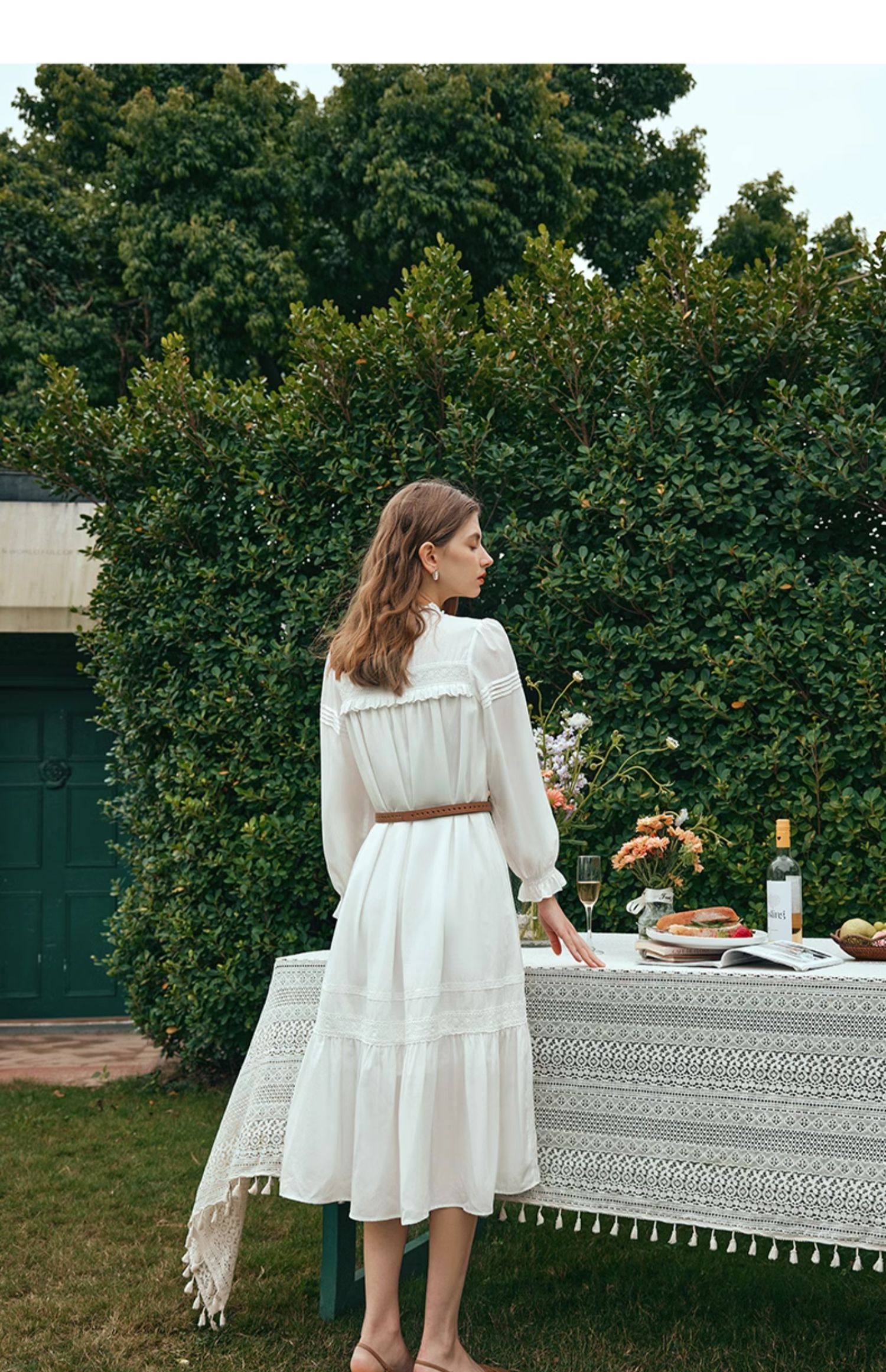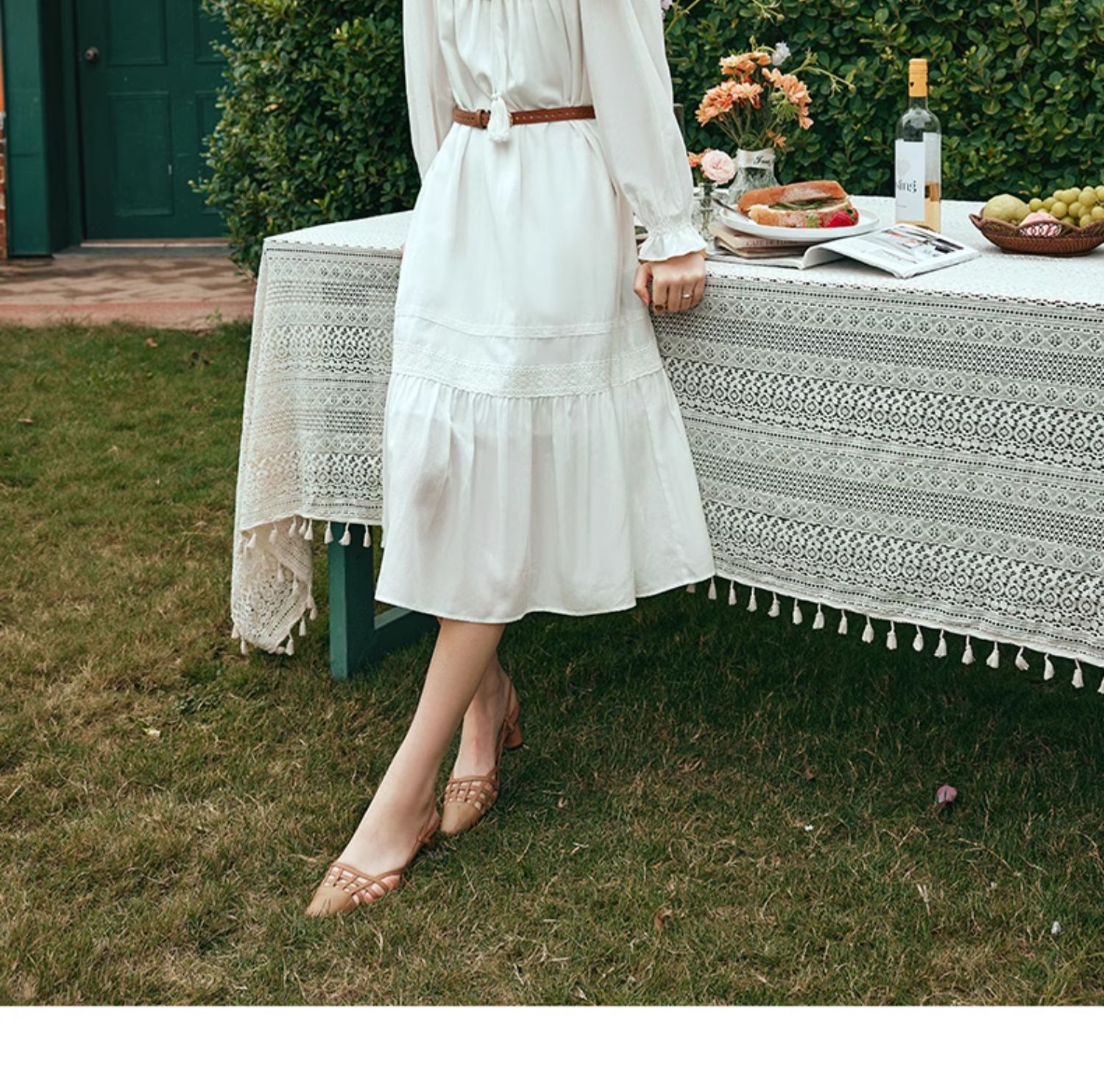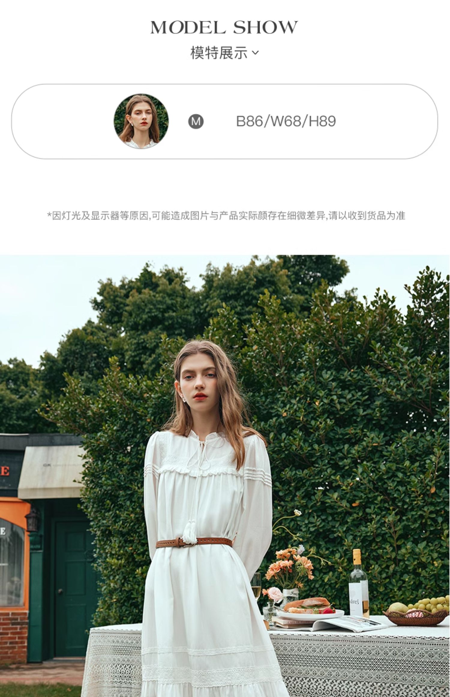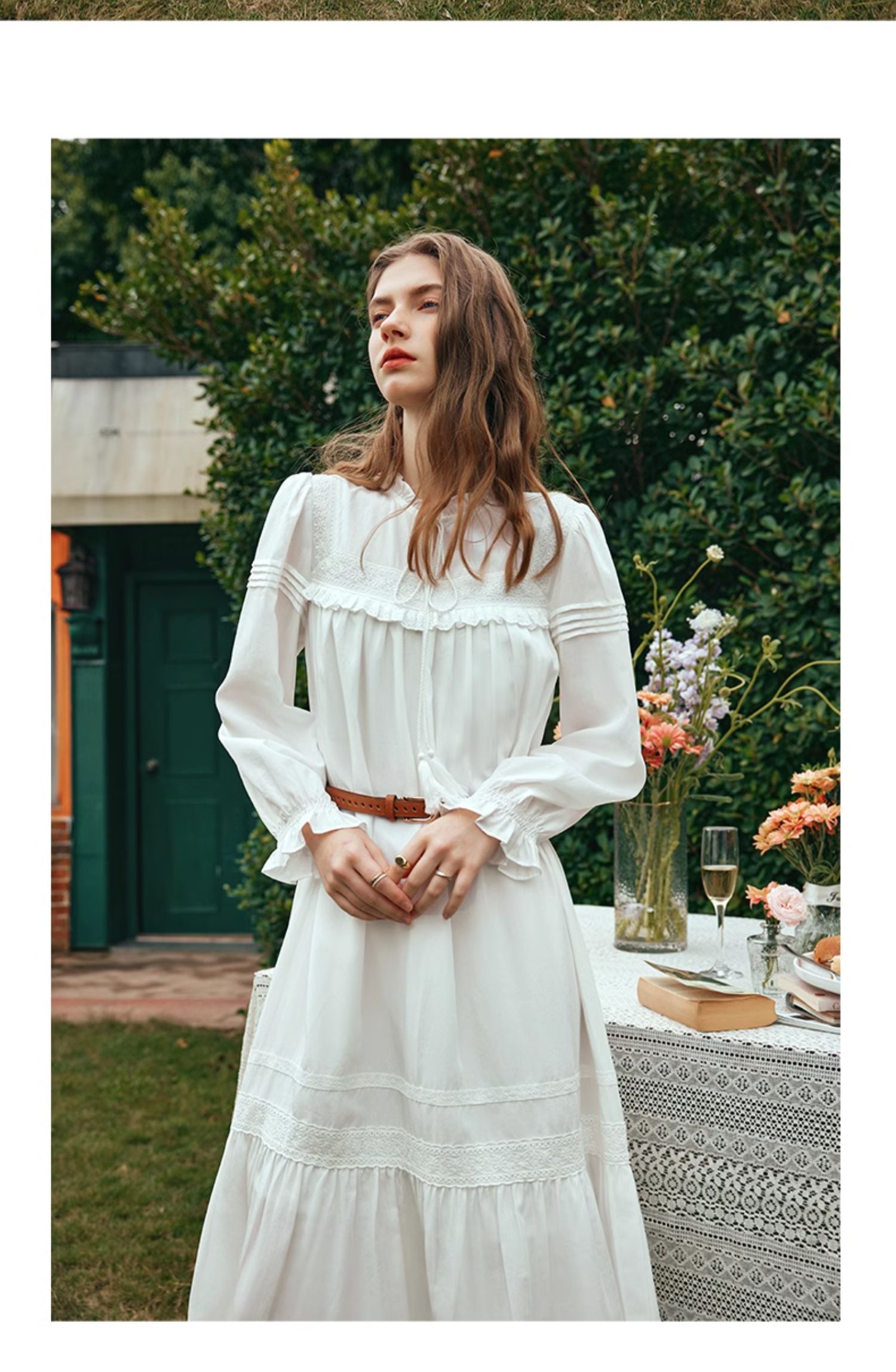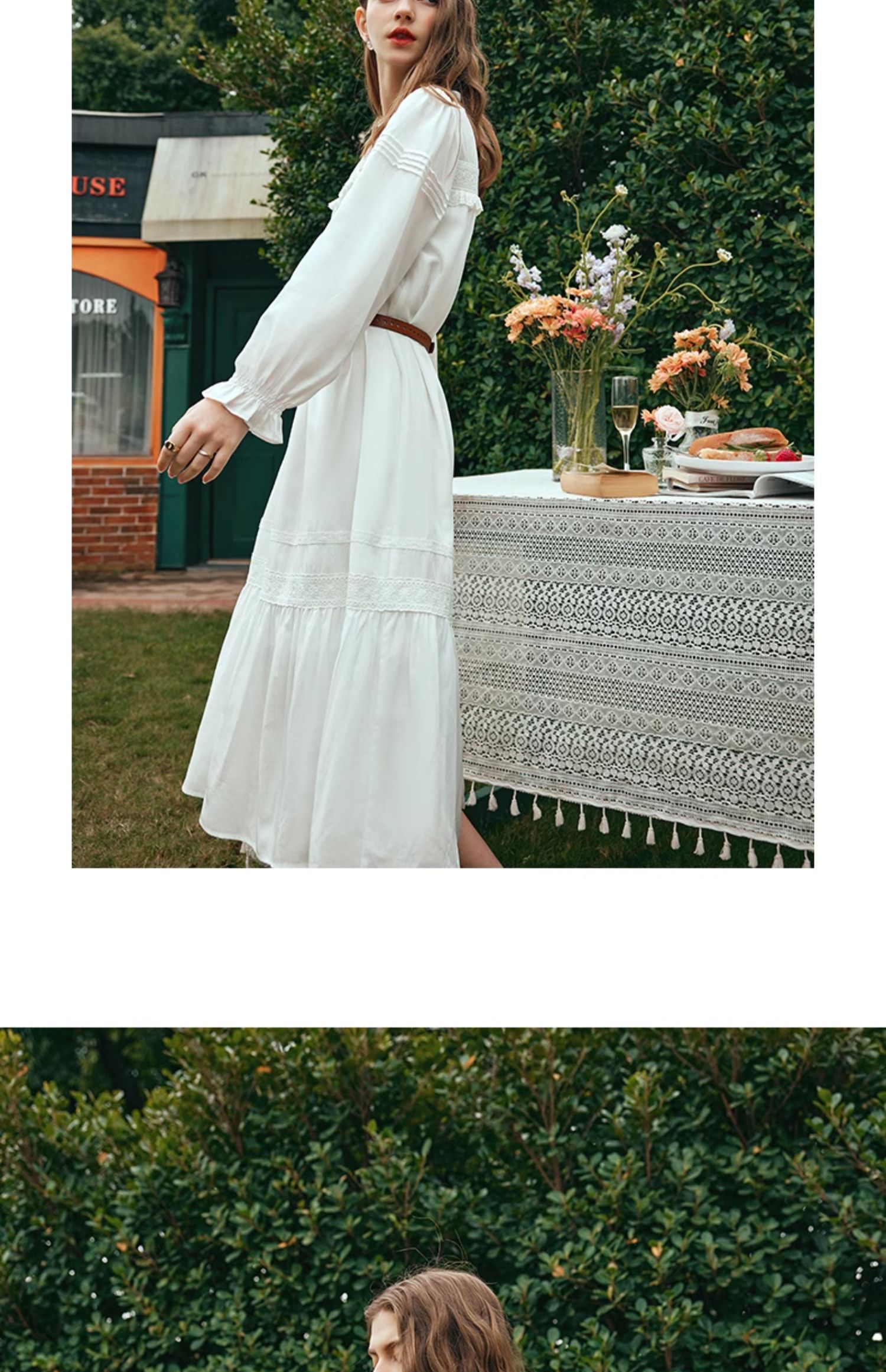 OLrain欧芮儿法式米白色连衣裙女早春2024新款气质刺绣蕾丝边长裙