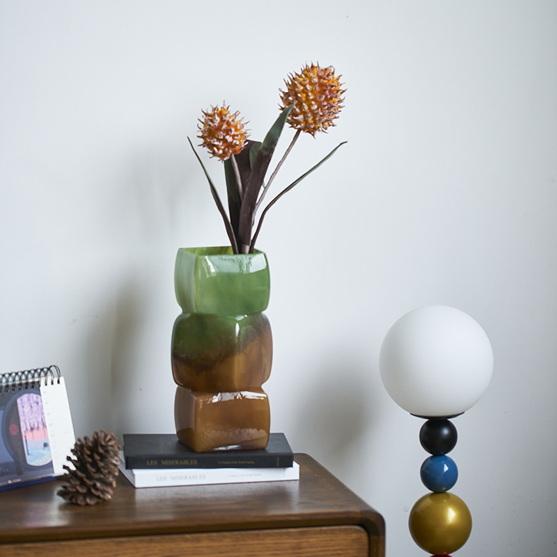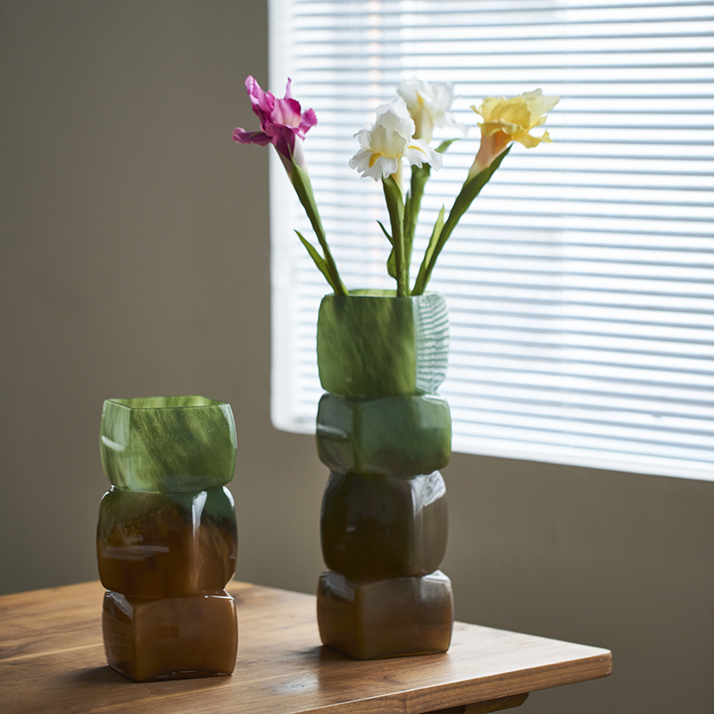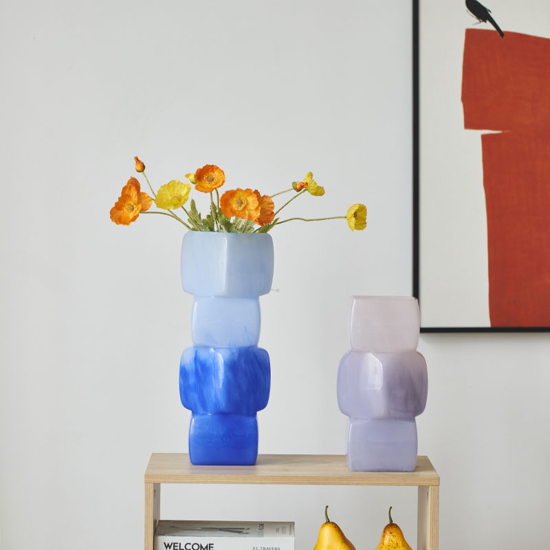 中古风渐变彩色几何方块花瓶餐桌软装酒店电视柜台面装饰玻璃摆件