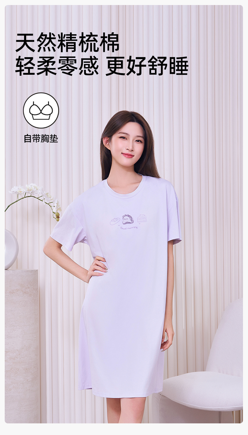 【带杯垫】熳洁儿 95棉春夏新款家居服连衣裙休闲睡裙可外穿26203209