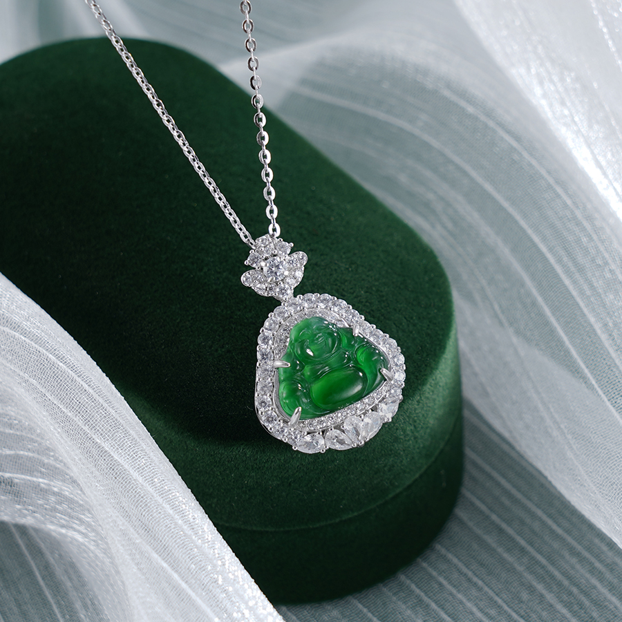 子佩集S925银【福佑弥勒】套链【YL-7096】纯银项链时尚翡翠绿佛可打开2503