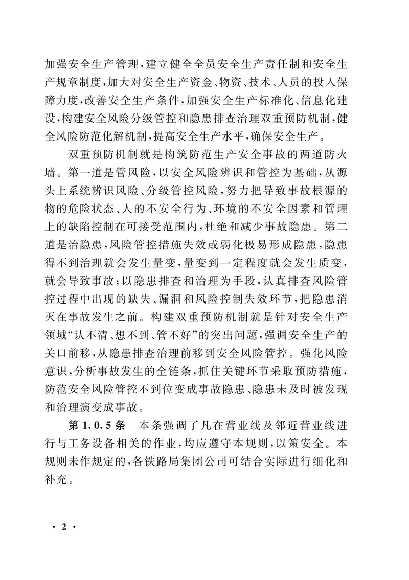 《普速铁路工务安全规则》(铁总运〔2014〕272号)颁布实施以来,为保障工务安全生产发挥了重要作用。为适应新的形势,满足工务安全管理需要,国铁集团工电部在总结普速铁路工务安全生产管理经验的基础上,组织修订了本规则,2023版《普速铁路工务安全规则》。
