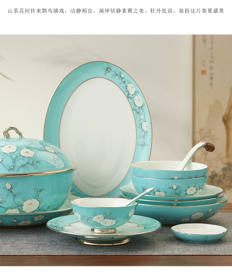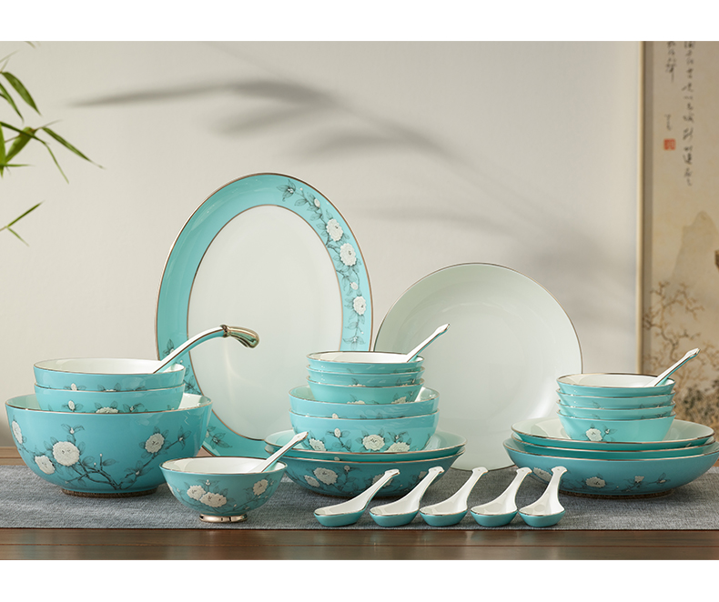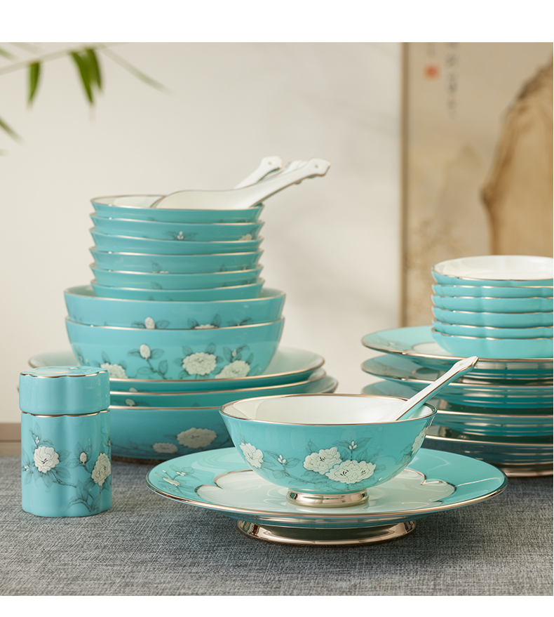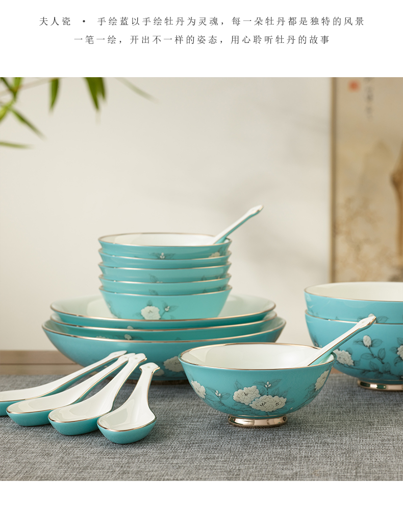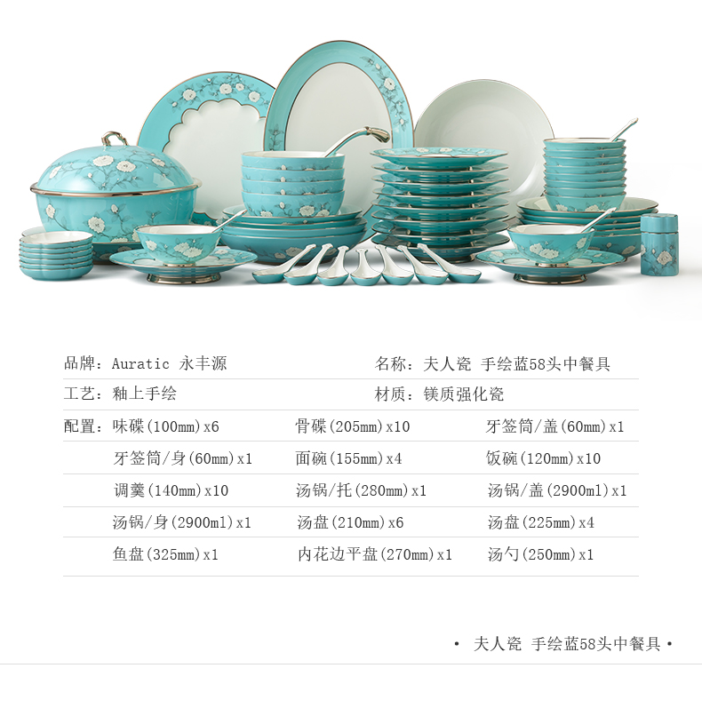 【国瓷·永丰源】手绘蓝22/29/58头餐具套装 碗盘碟餐具 轻奢【新品】