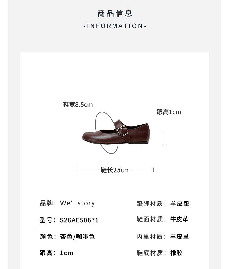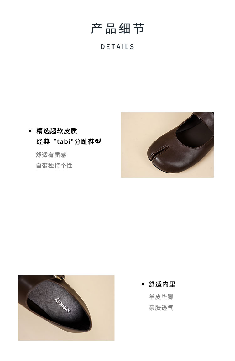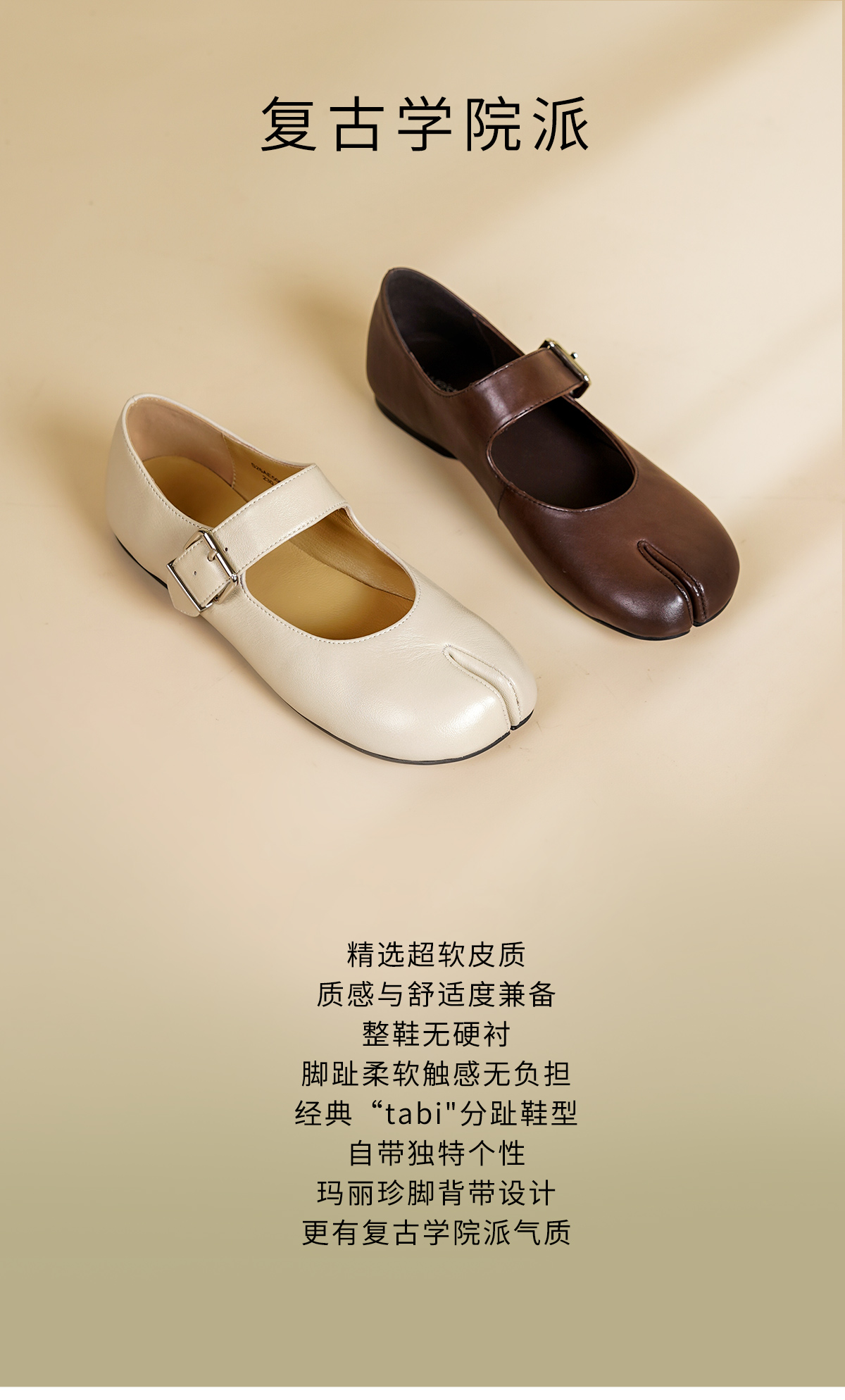 Westory2026年春季牛皮分趾学院风玛丽珍鞋休闲平底浅口单鞋S26AE50671