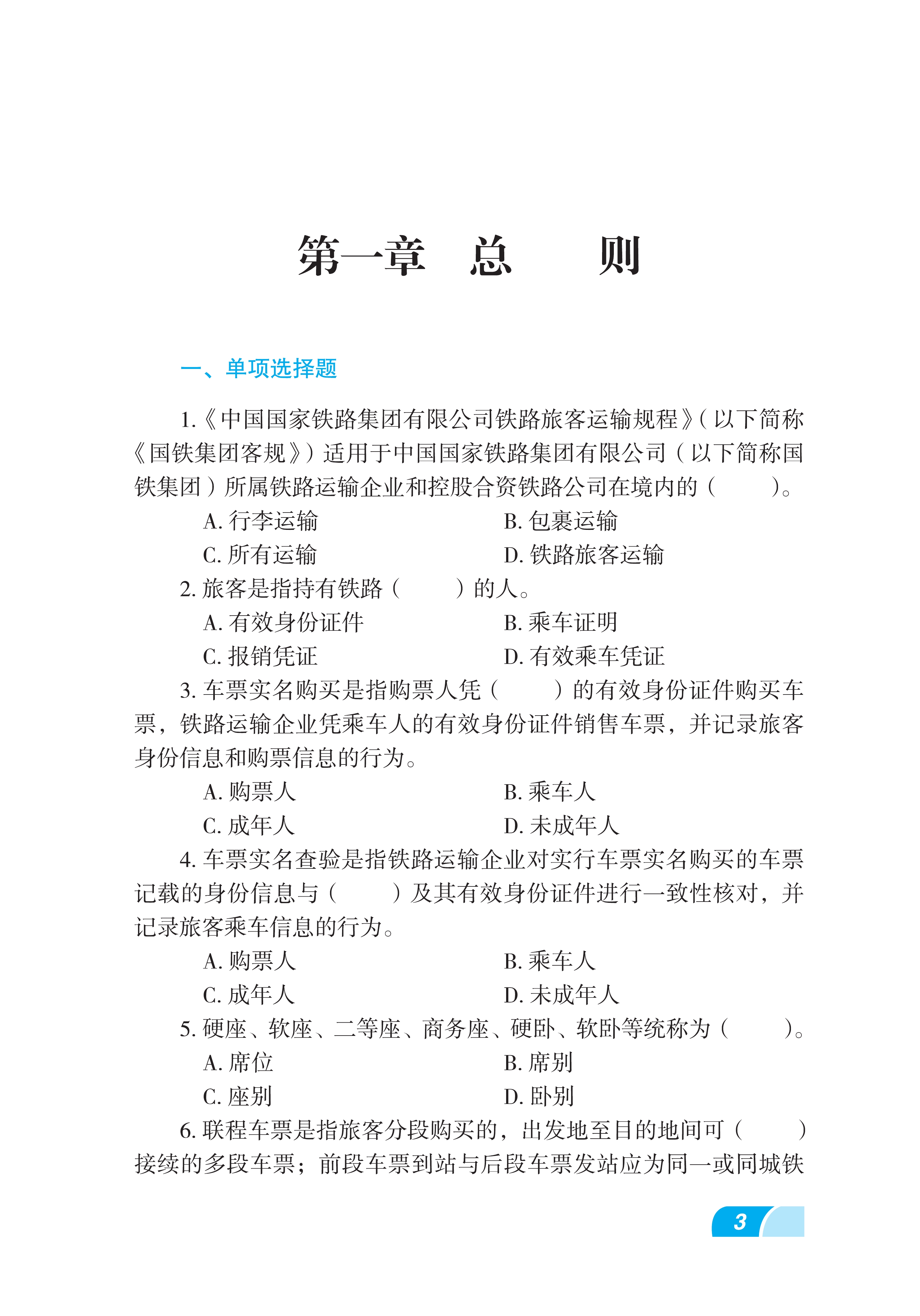 30071-5 《中国国家铁路集团有限公司铁路旅客运输规程》习题与解答