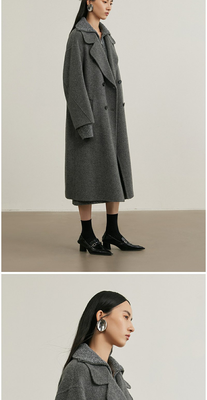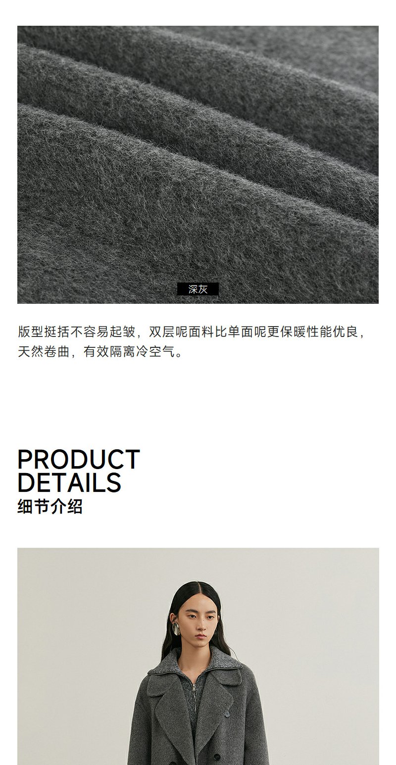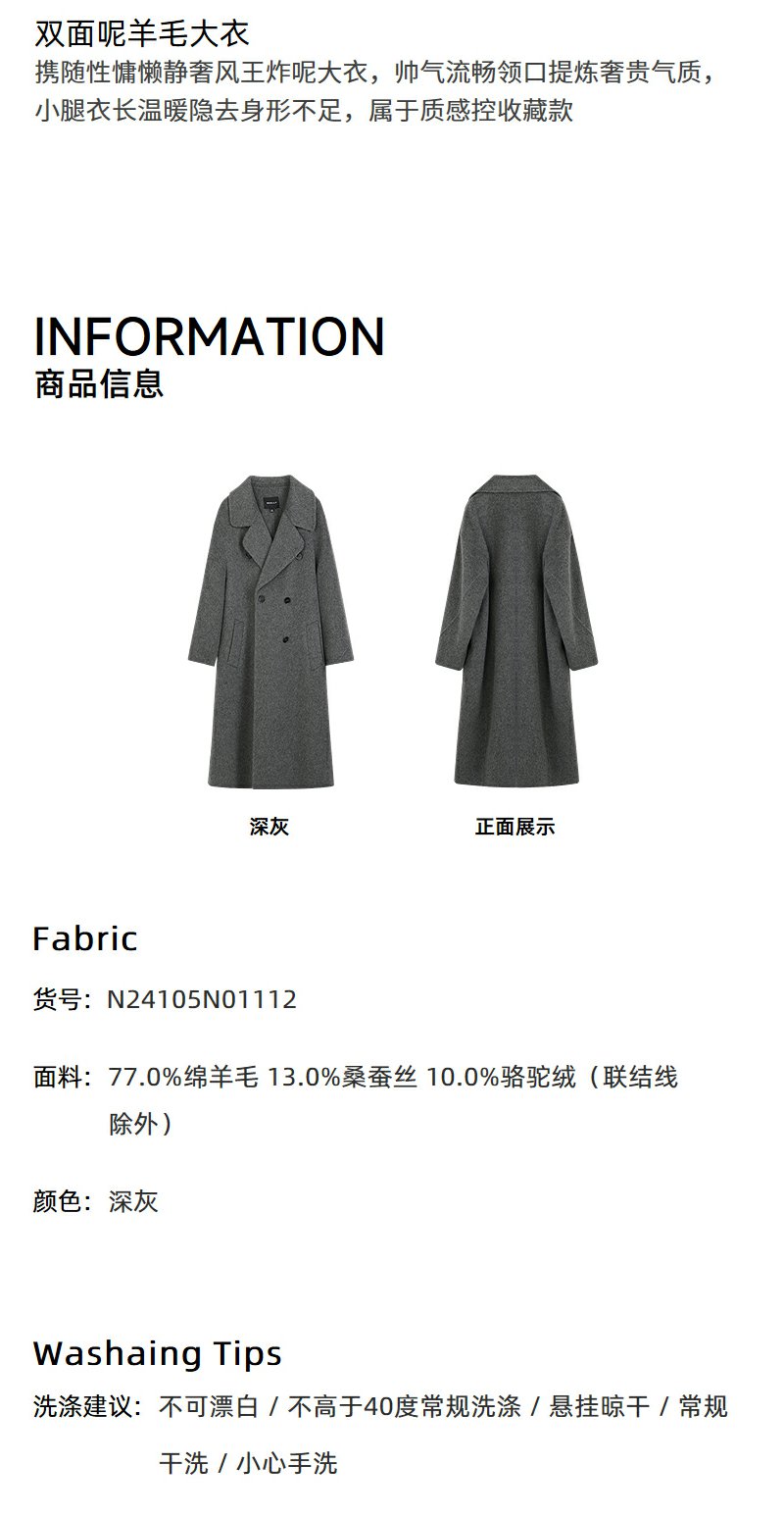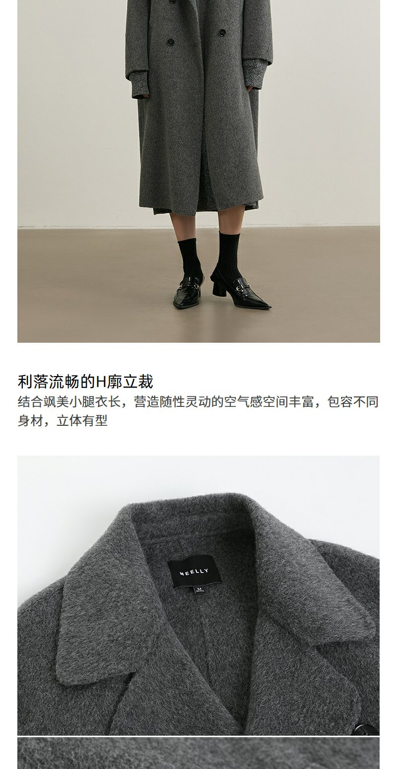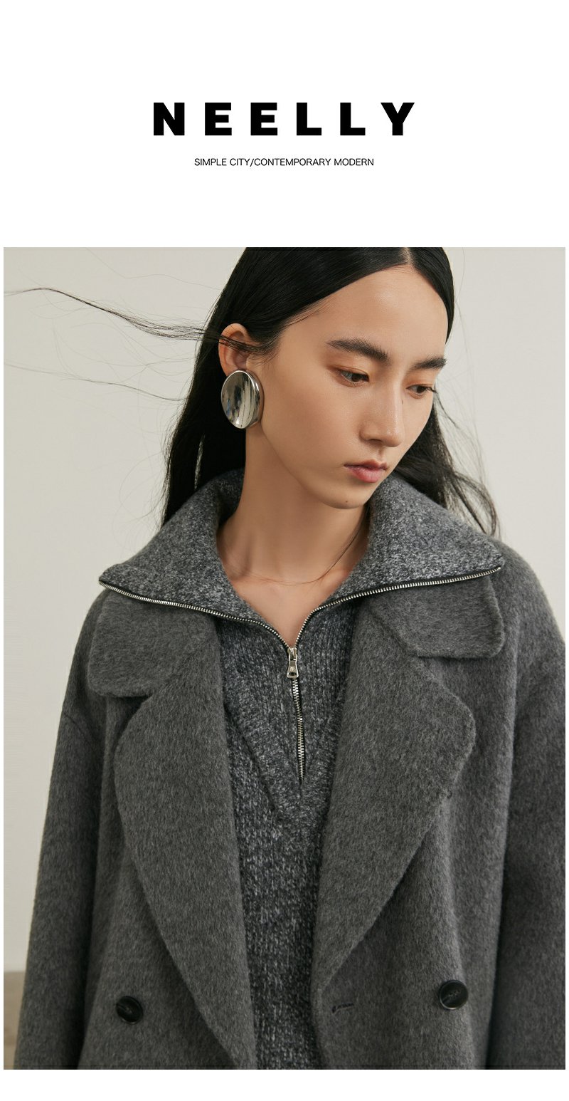 NEELLY纳俪商场同款冬季新款气质版型双层羊毛呢大衣女翻领长外套N24105N01112