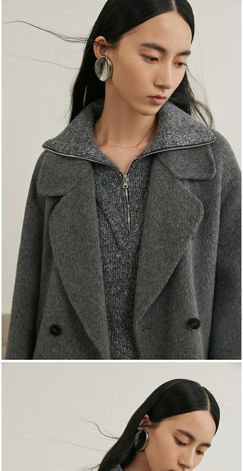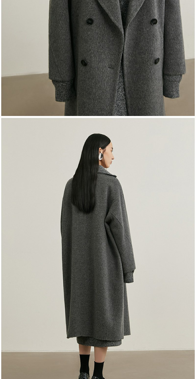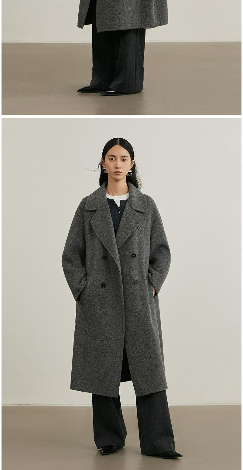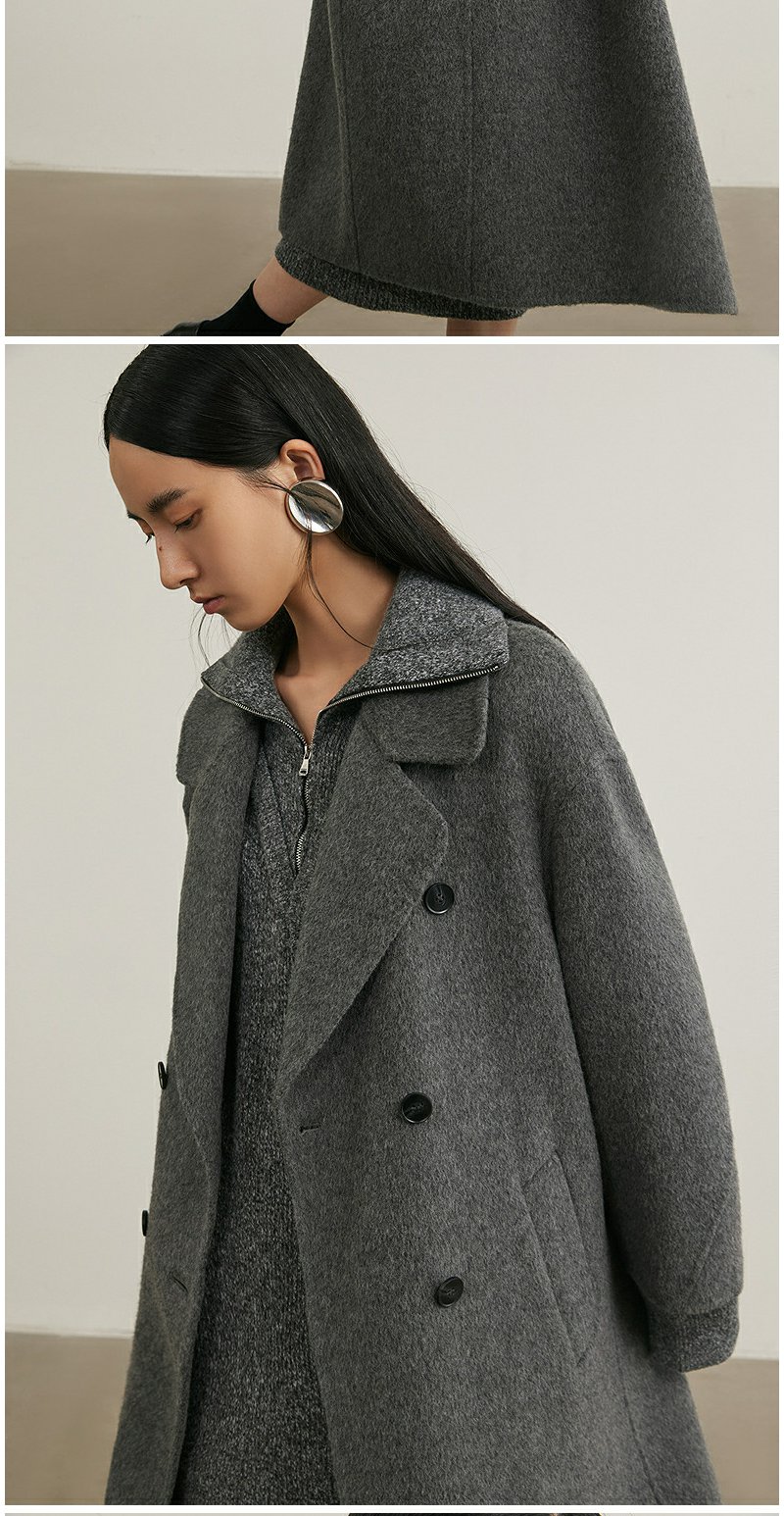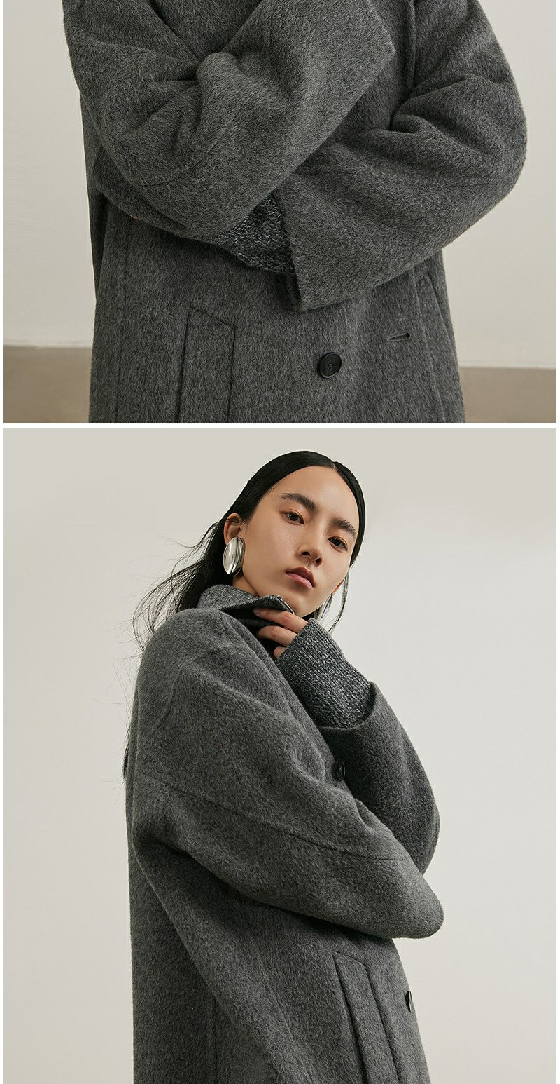 NEELLY纳俪商场同款冬季新款气质版型双层羊毛呢大衣女翻领长外套N24105N01112