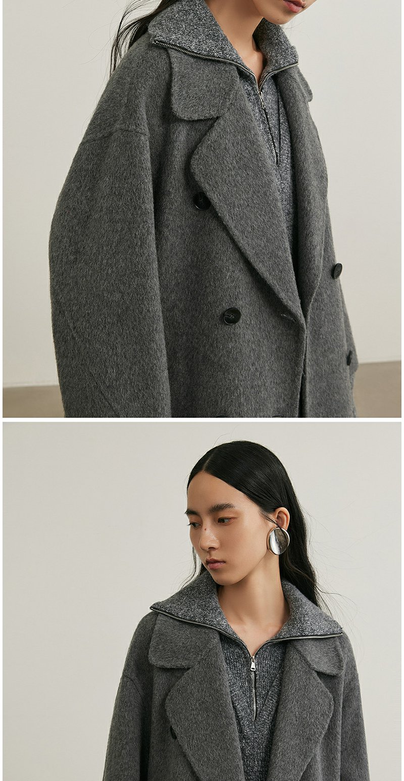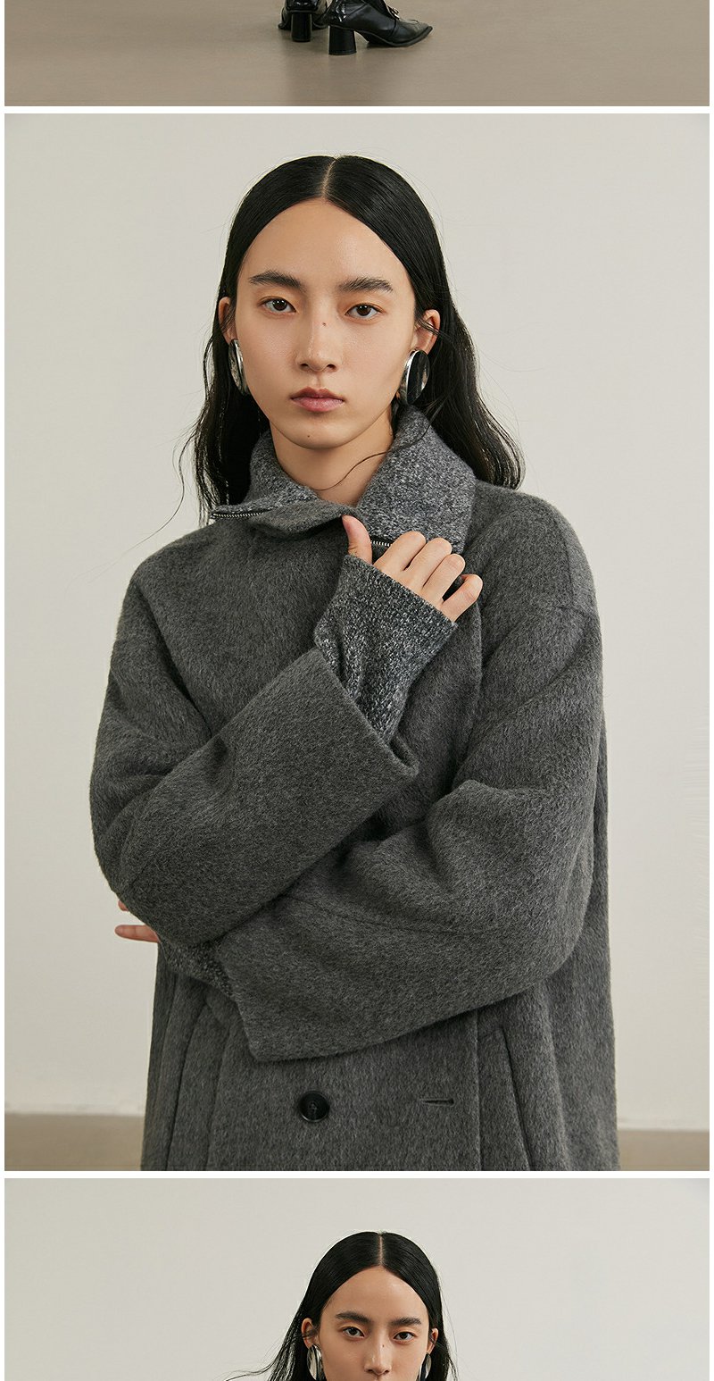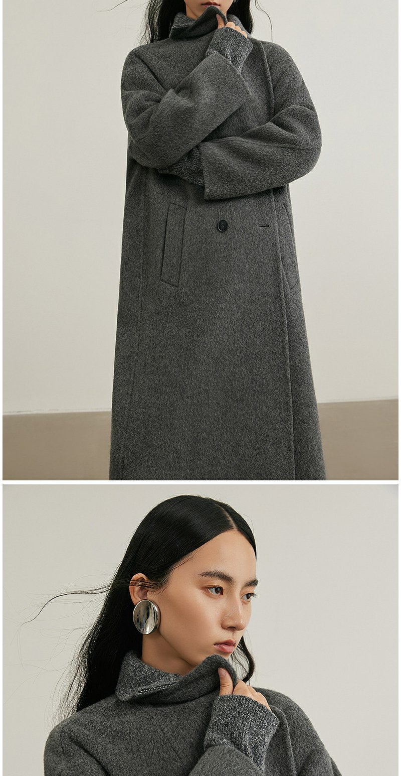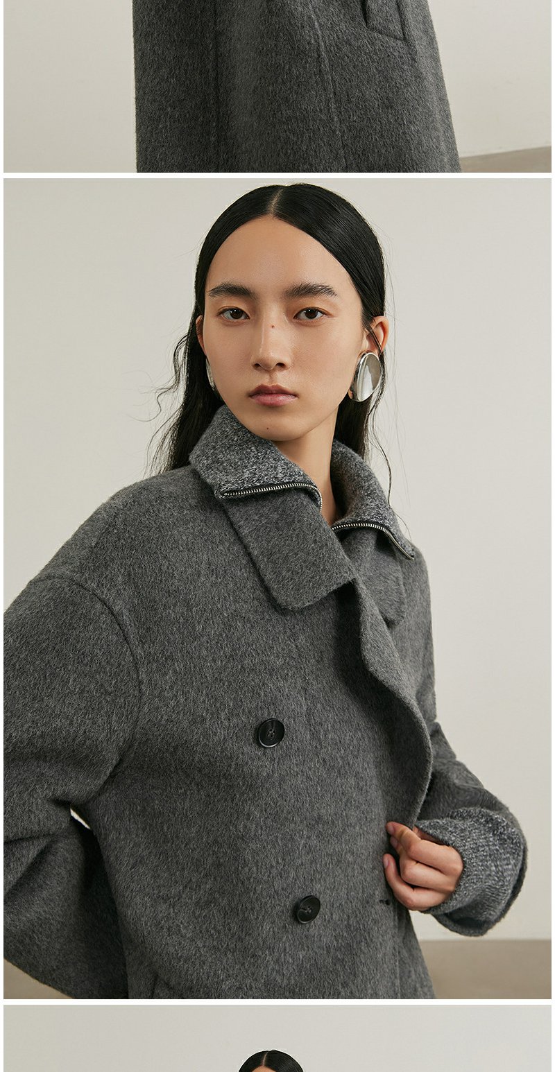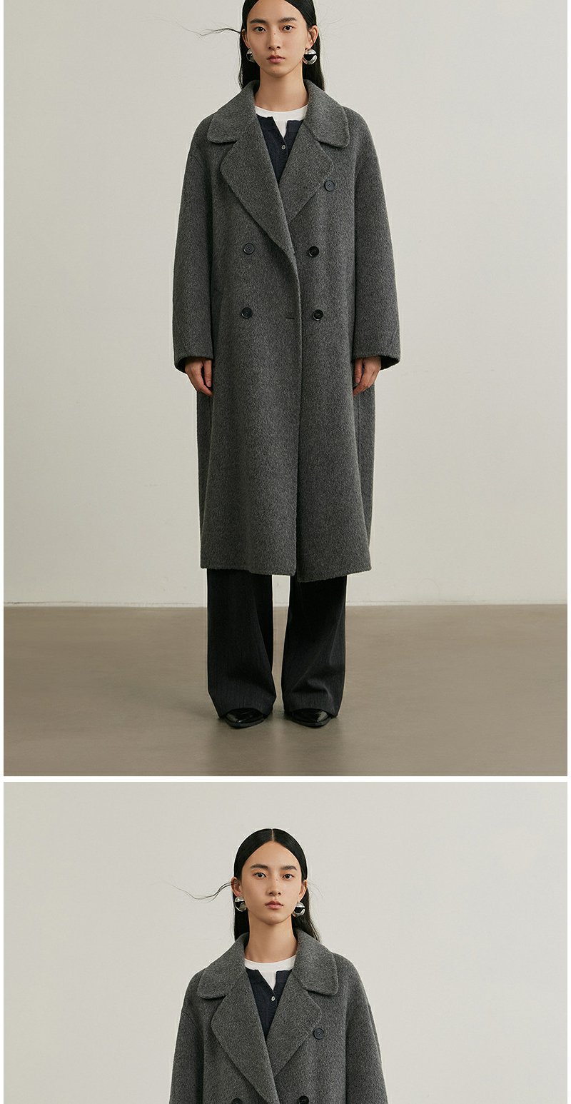 NEELLY纳俪商场同款冬季新款气质版型双层羊毛呢大衣女翻领长外套N24105N01112
