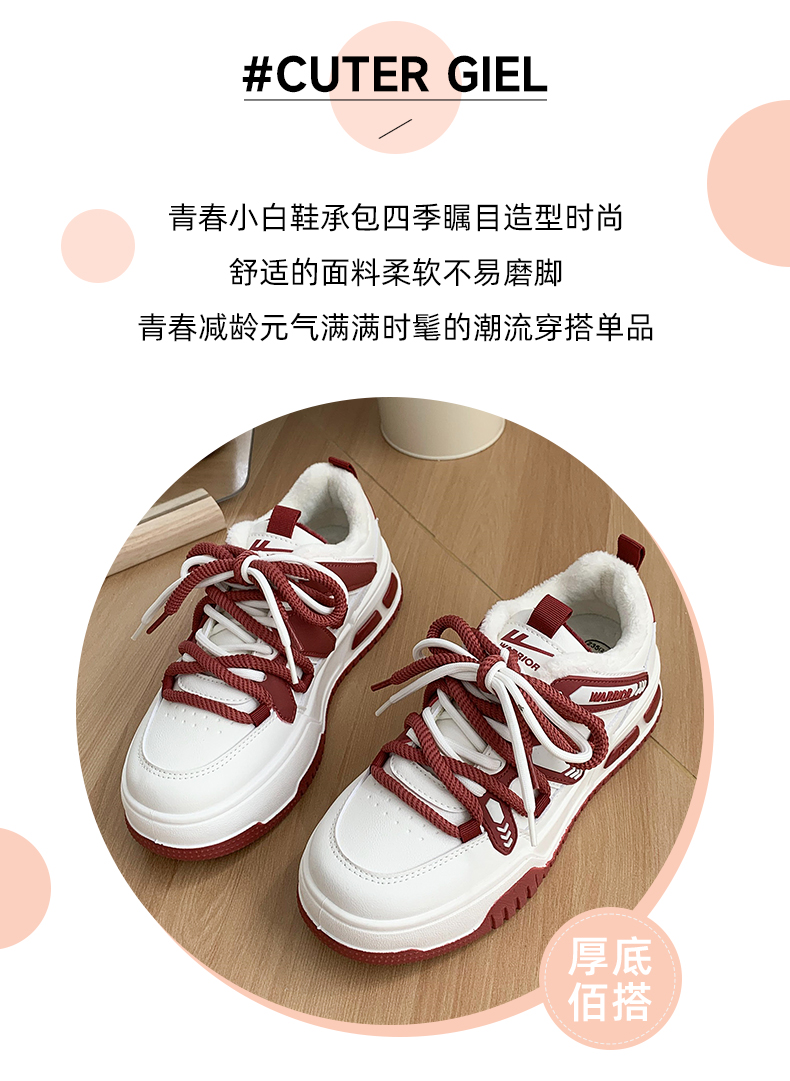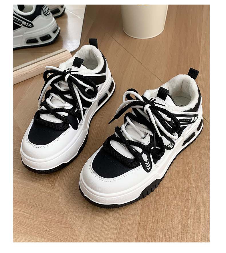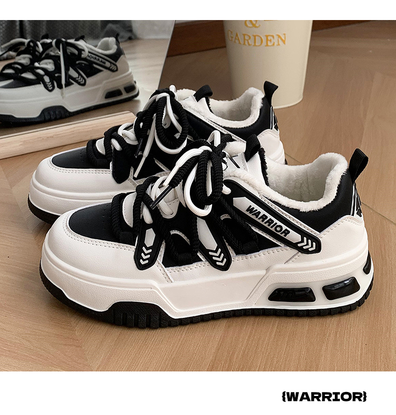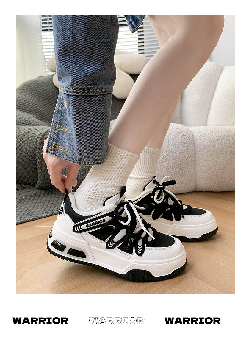 回力女鞋加绒大头运动鞋2024春夏新款熊猫色保暖休闲鞋子女款板鞋