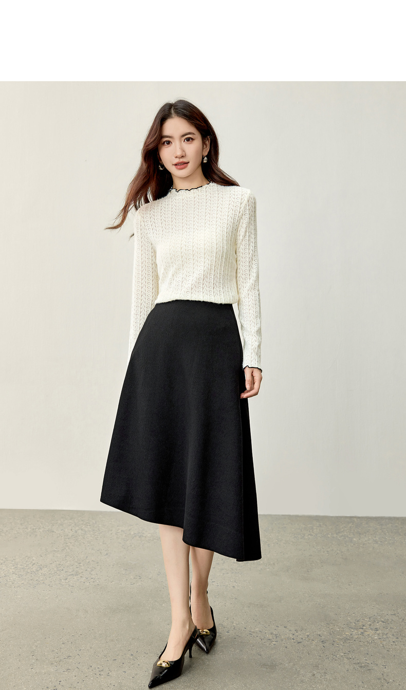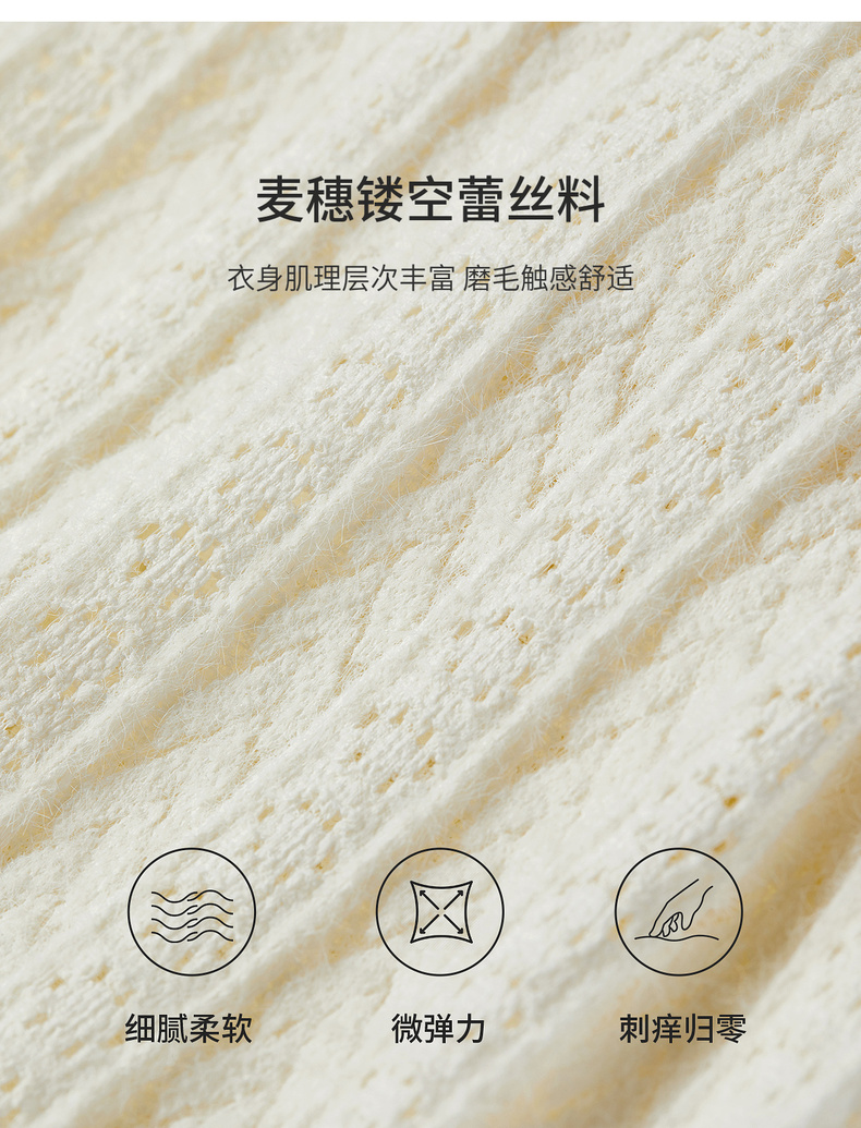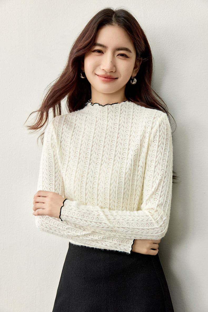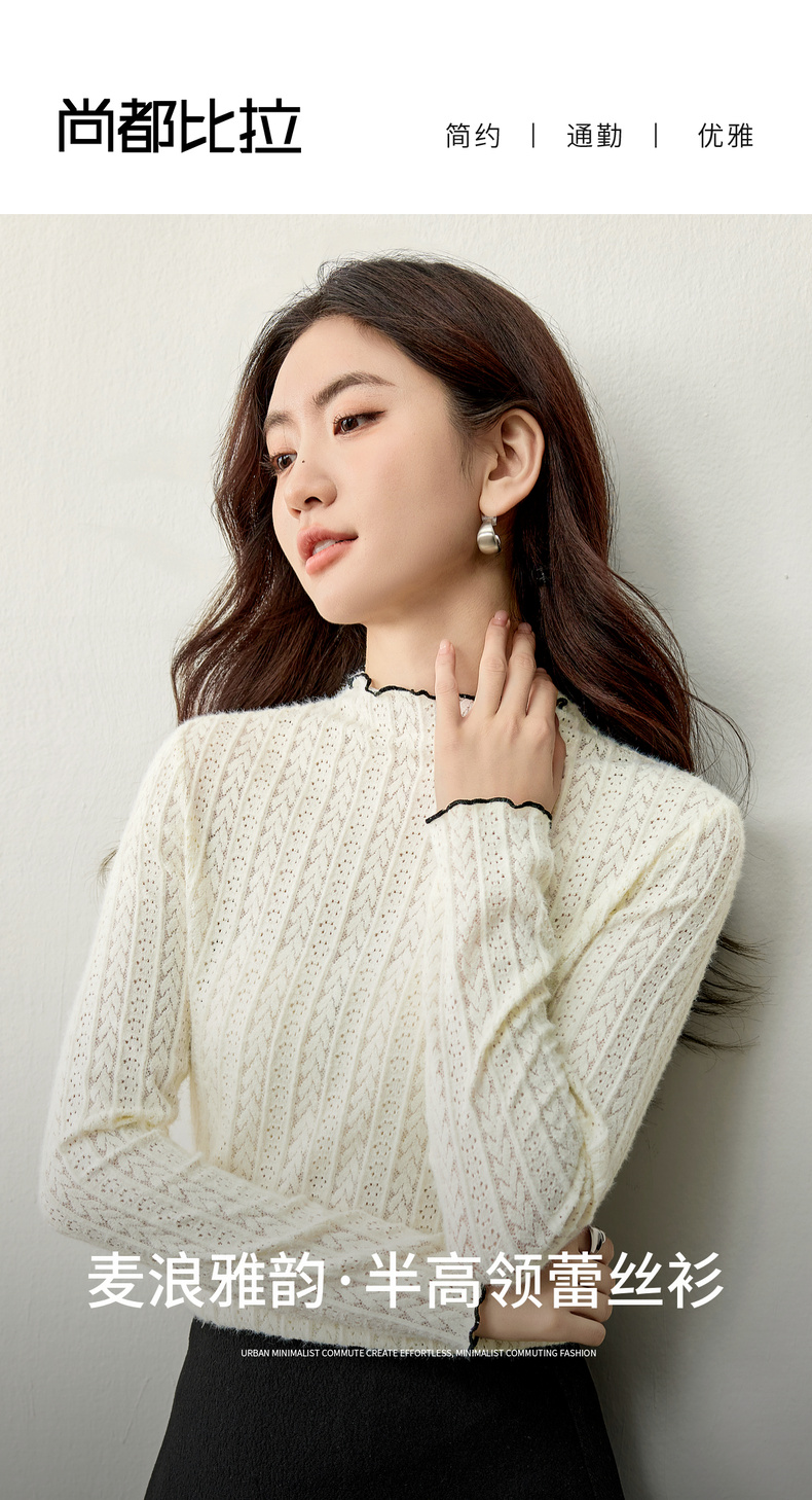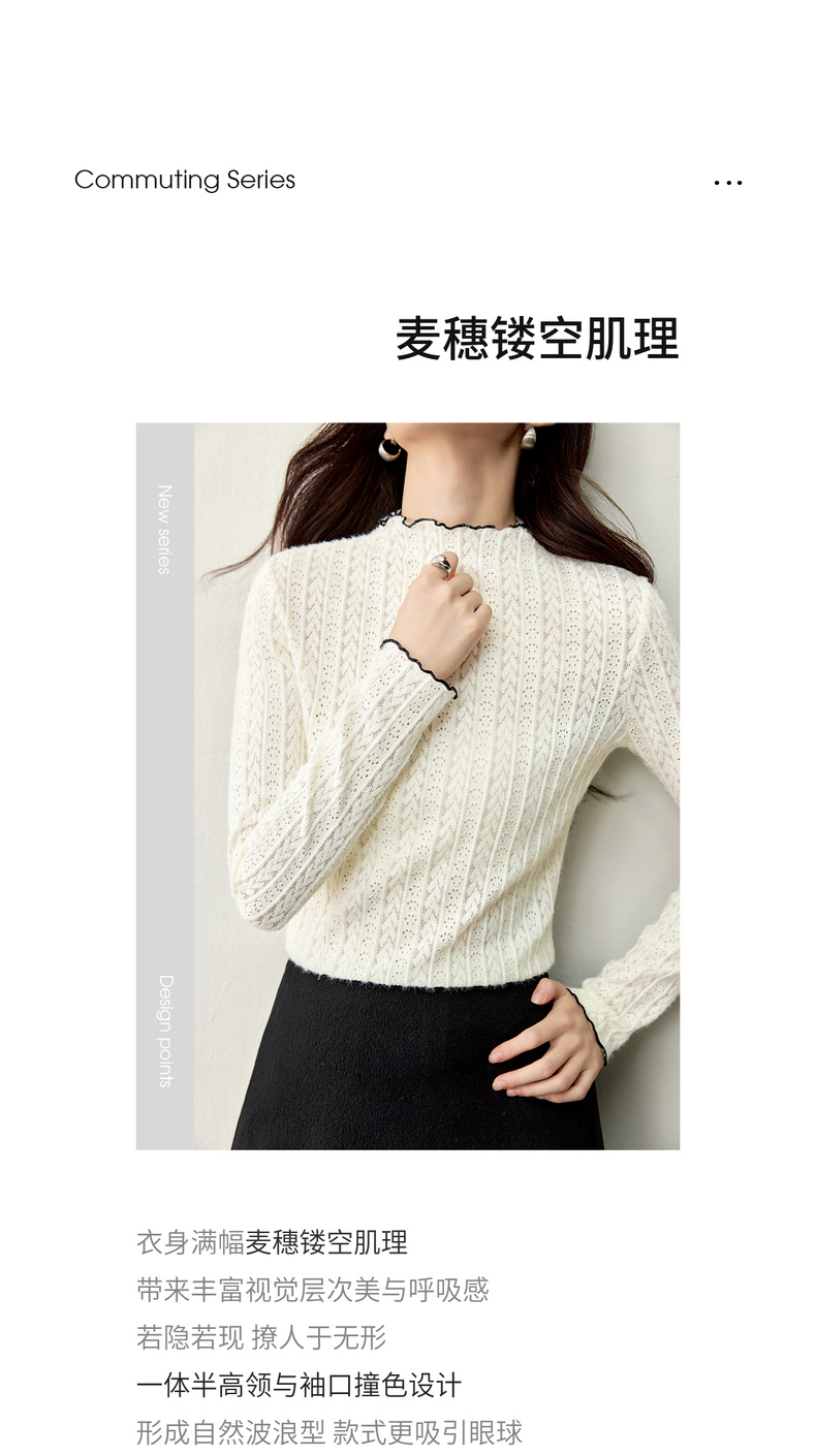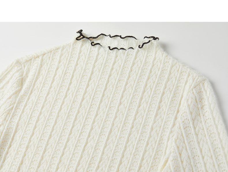【内购】【外穿内搭】优雅通勤一体半高领撞色边麦穗镂空肌理磨毛感蕾丝衫-153SA2696