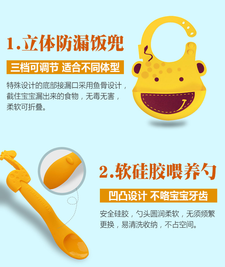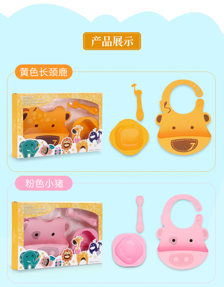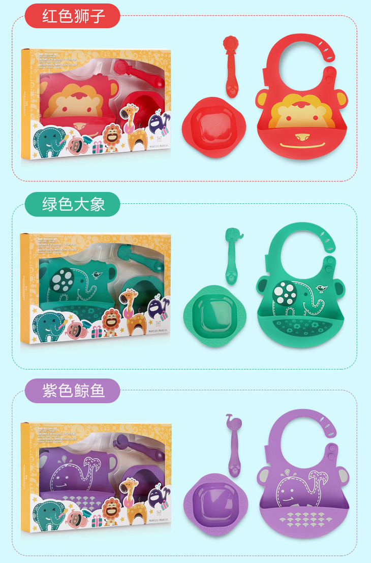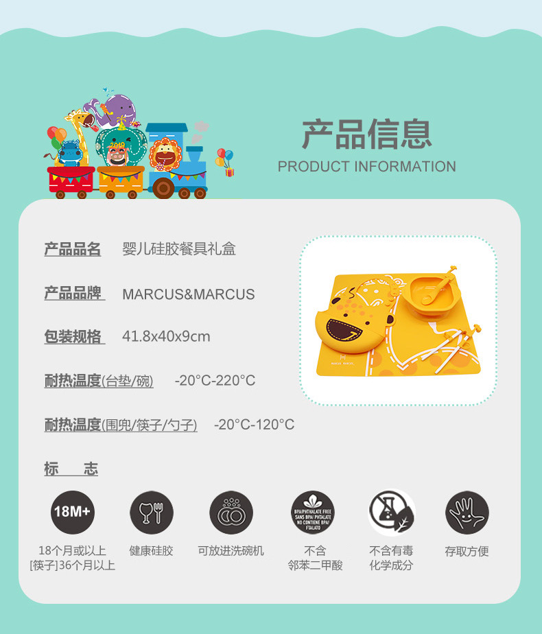 【双十一特价】加拿大MARCUS&MARCUS硅胶餐具三件套/5件套礼盒套装【马库狮】